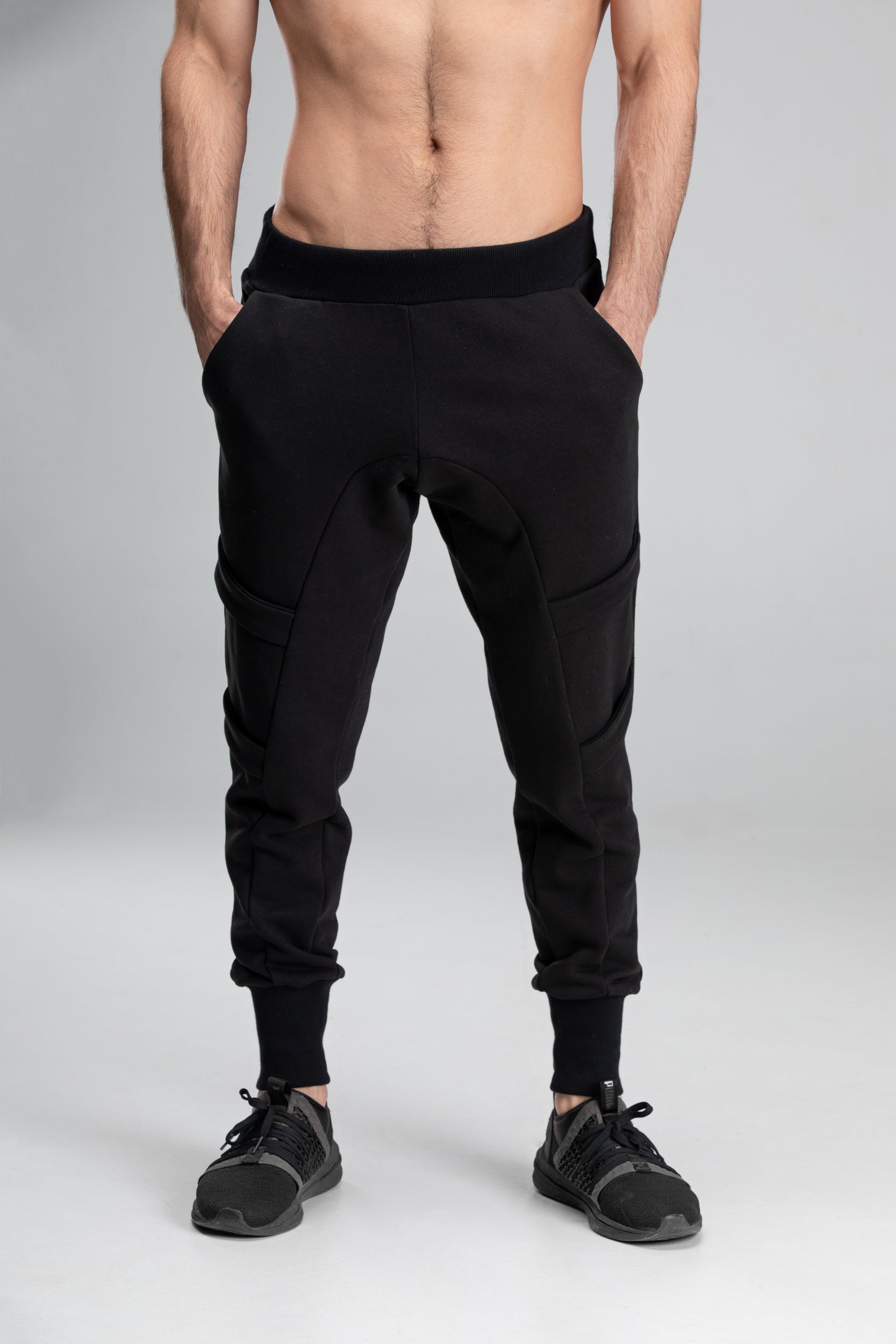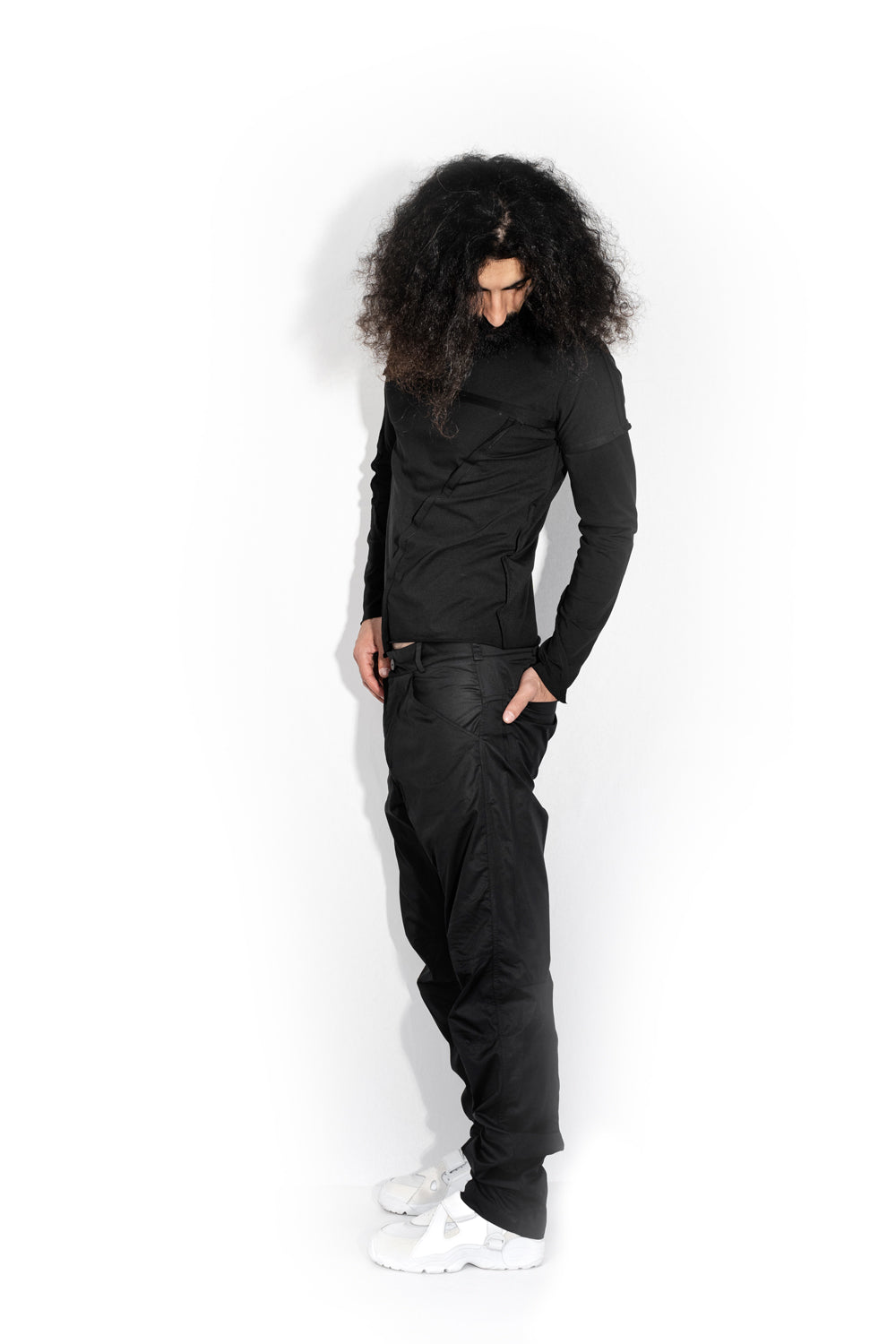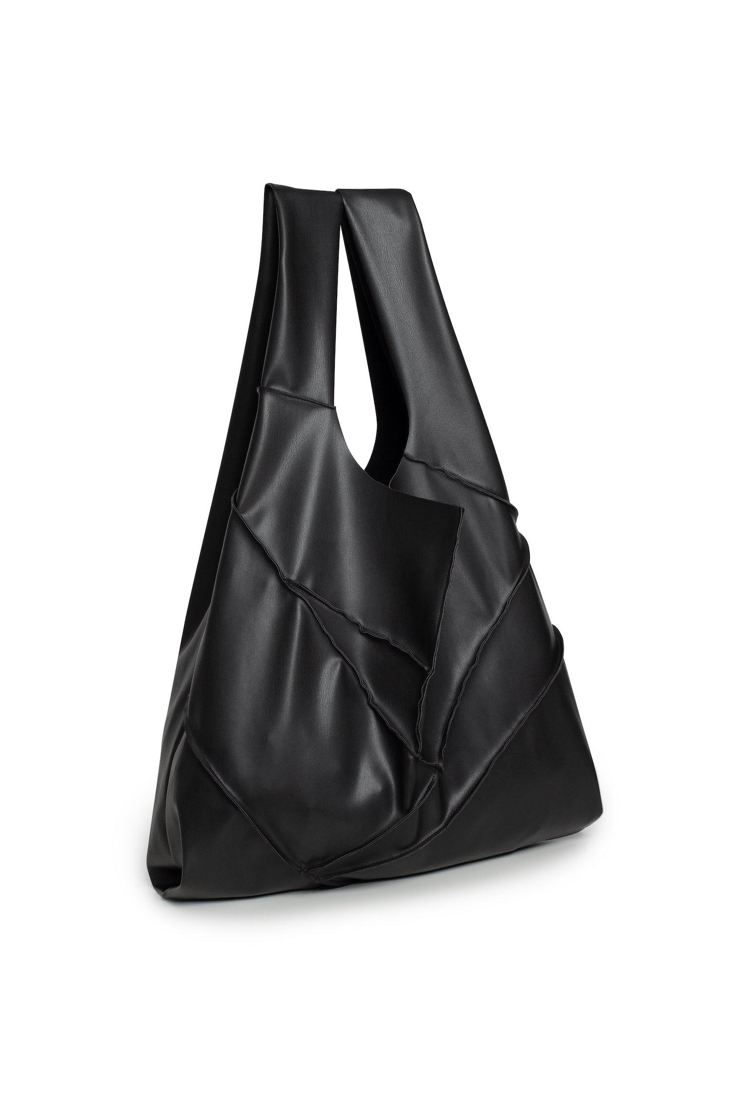 Black T-shirt with a geometric seam