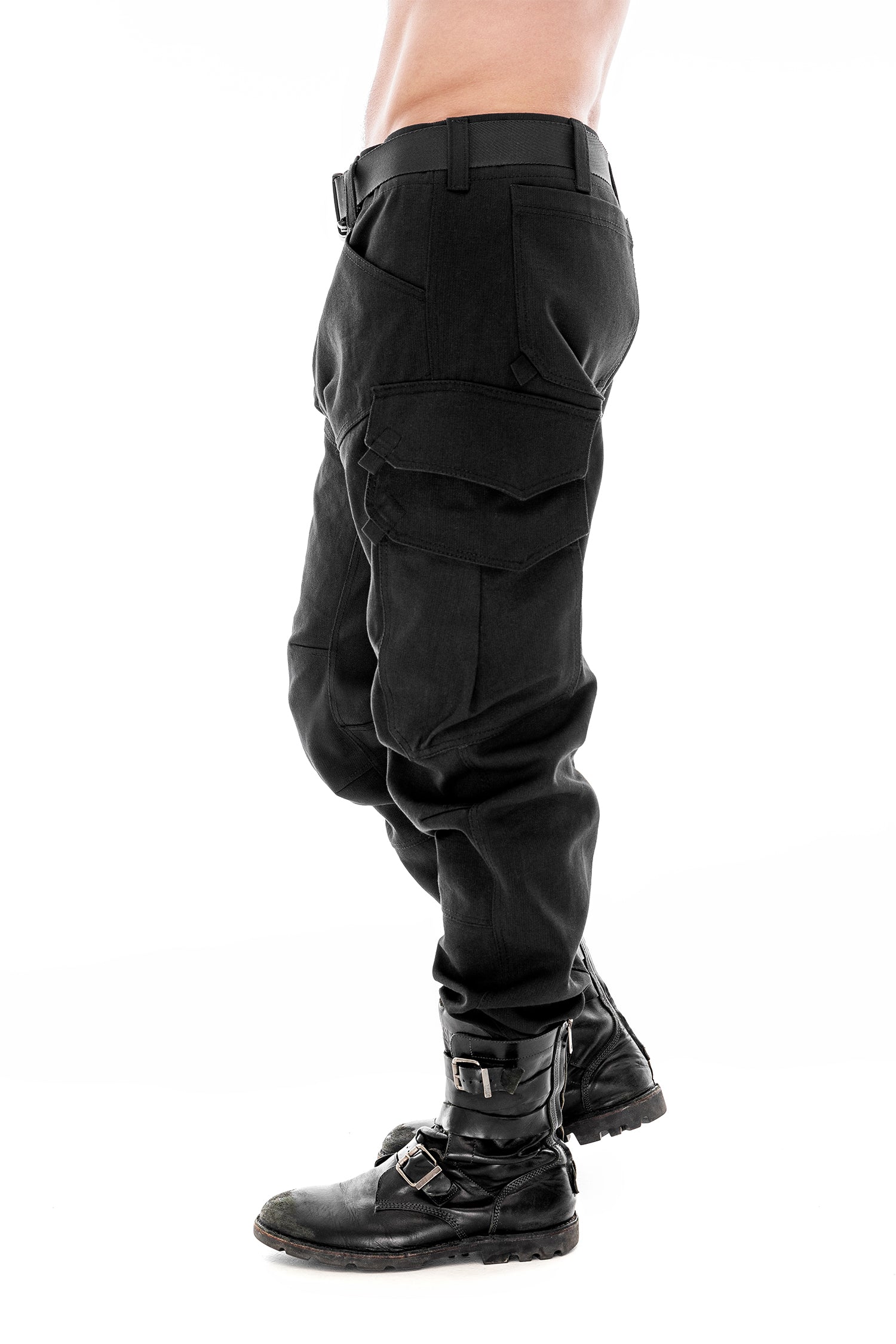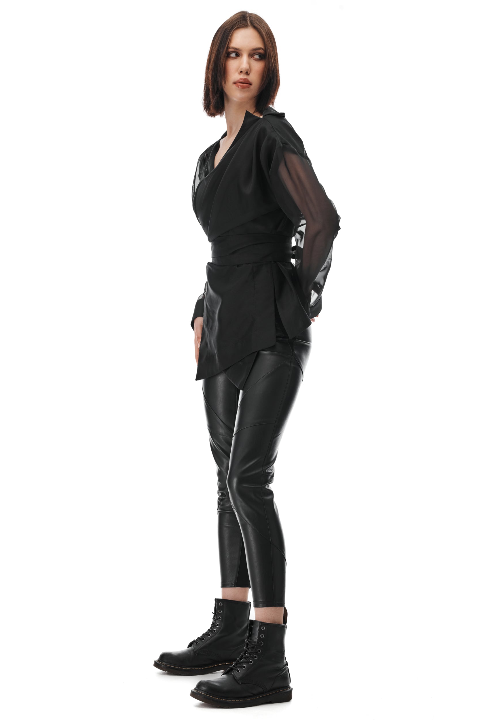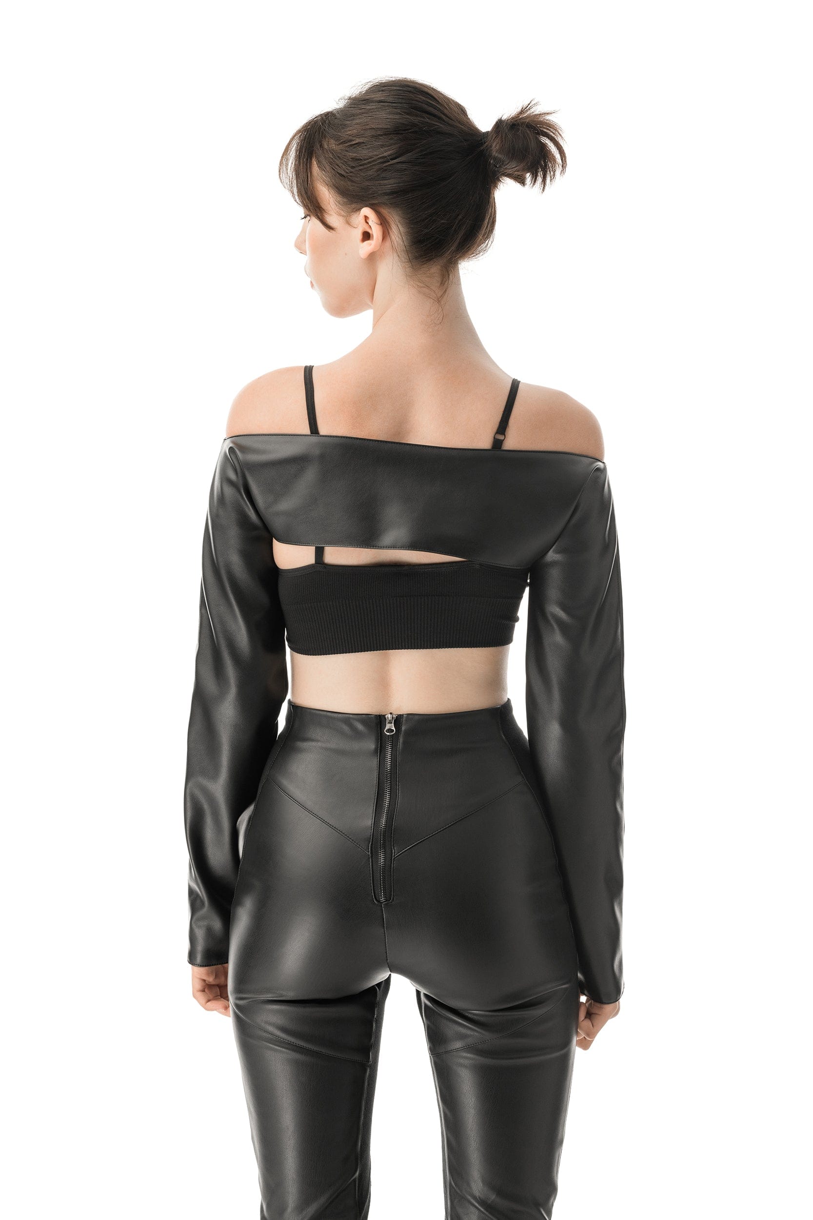 Black leather body harness