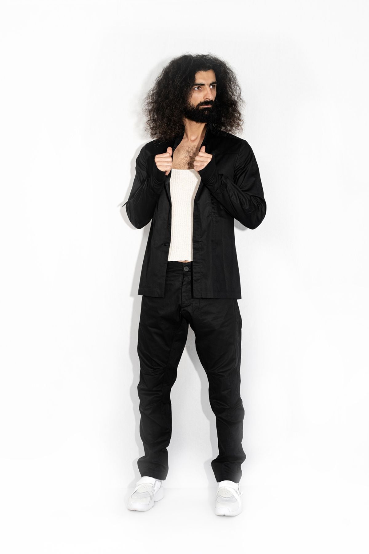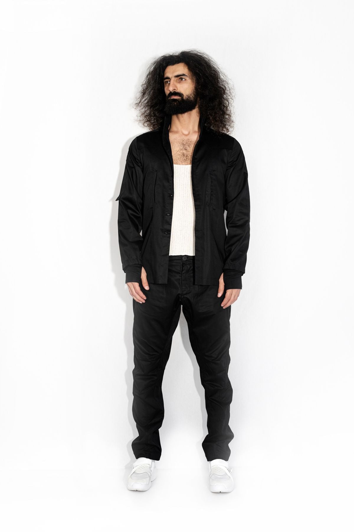 An understated basic pant that symbolizes a versatile wardrobe staple, Akinak is made to pair easily with both casual and more experimental looks. The pant sits firmly at the waist and then goes down to follow the silhouette in a more loose way before falling below the knee to taper at the cuffs, delivering a nice grip. Showing immaculate tailoring skills at work, this cotton-blend pant is traced with decorative seams to give off a cool, downtown effect. Dressed in black for a multifaceted take on everyday wear and incorporates utilitarian details in the form of outlined patch pockets on the backside and a pair of side pockets on the front. Please note that the belt you see in the photos is shown for styling purposes. It's not part of the pants. Made in Europe