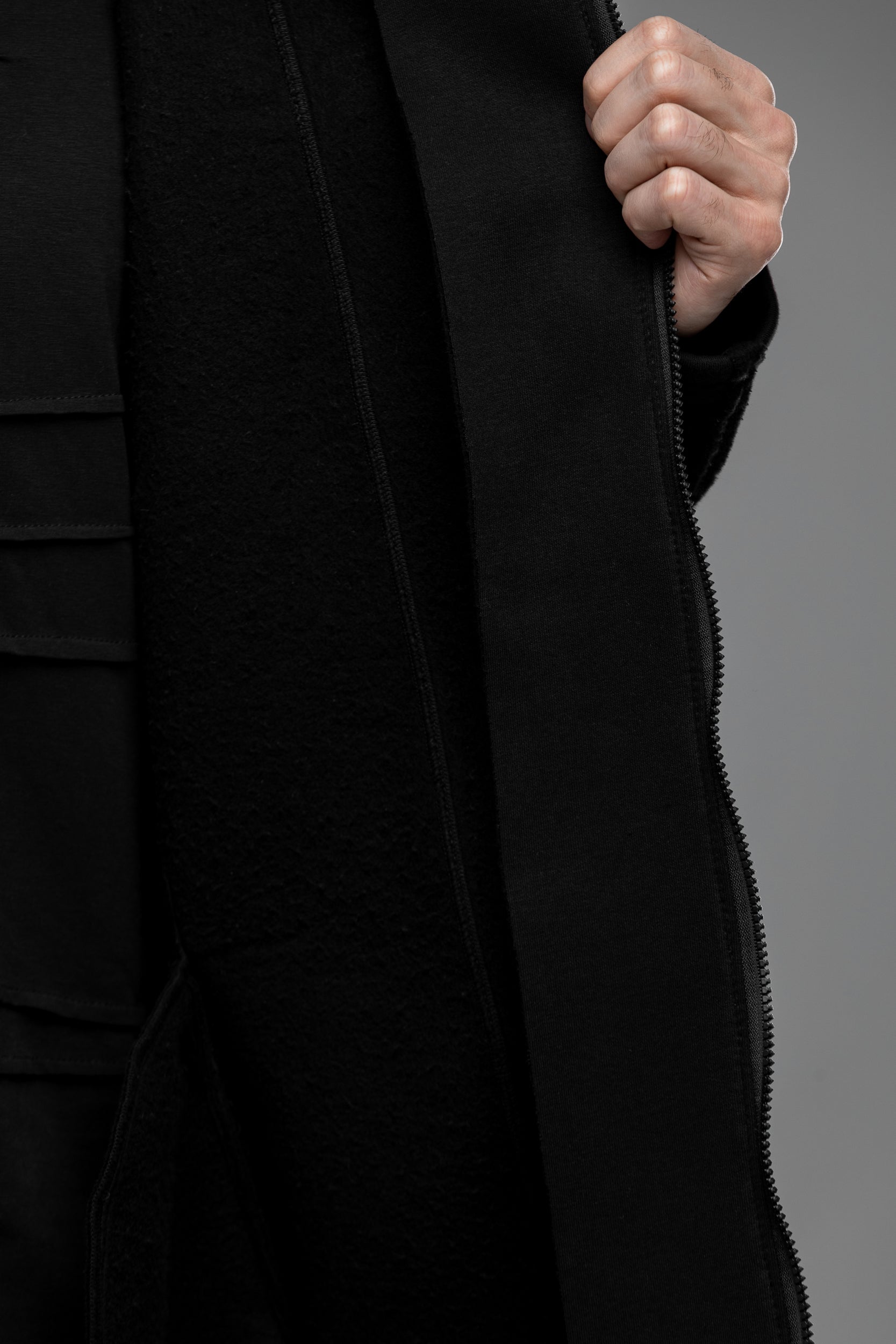 This cardigan is perfect for those tired of mass-marketed clothes. Wearing it for the first time, you will be unique; the next time, you will create a trend for a certain circle of people. Made of warm jersey fabric, it is ideal for any weather. Remember, a mind-blowing look hides behind unusual shapes and an asymmetric design.