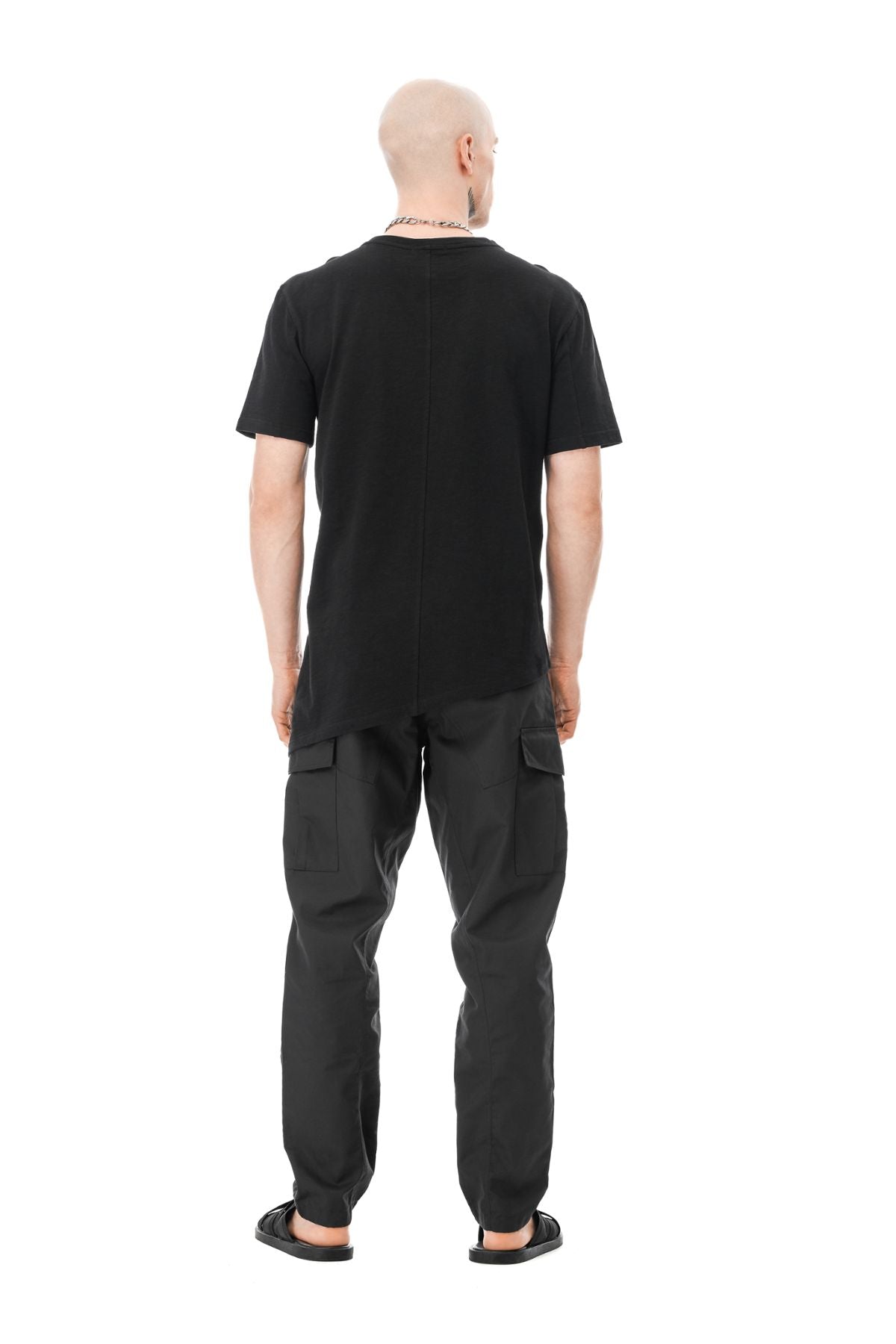 This asymmetric T-shirt is the ideal starting point or finishing touch for any outfit. Available in black and white, it is crafted from lightweight and comfortable cotton fabric, making it perfect for everyday wear. Featuring an extended neckline, dropped shoulder, and signature asymmetric hem, it provides the style, function, and feel you need for any occasion.
