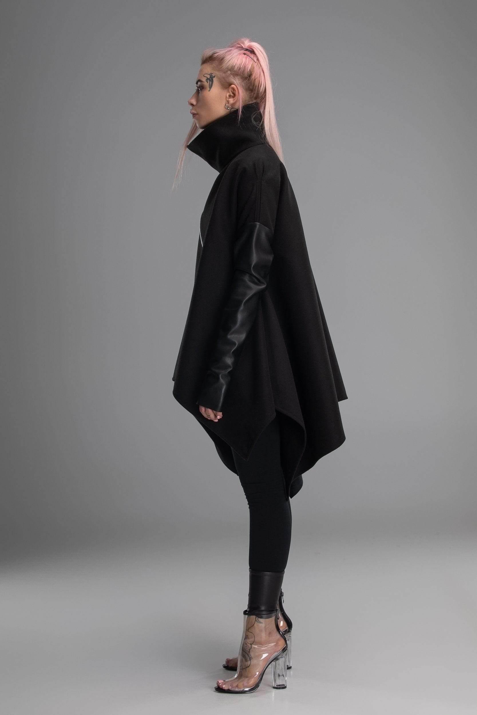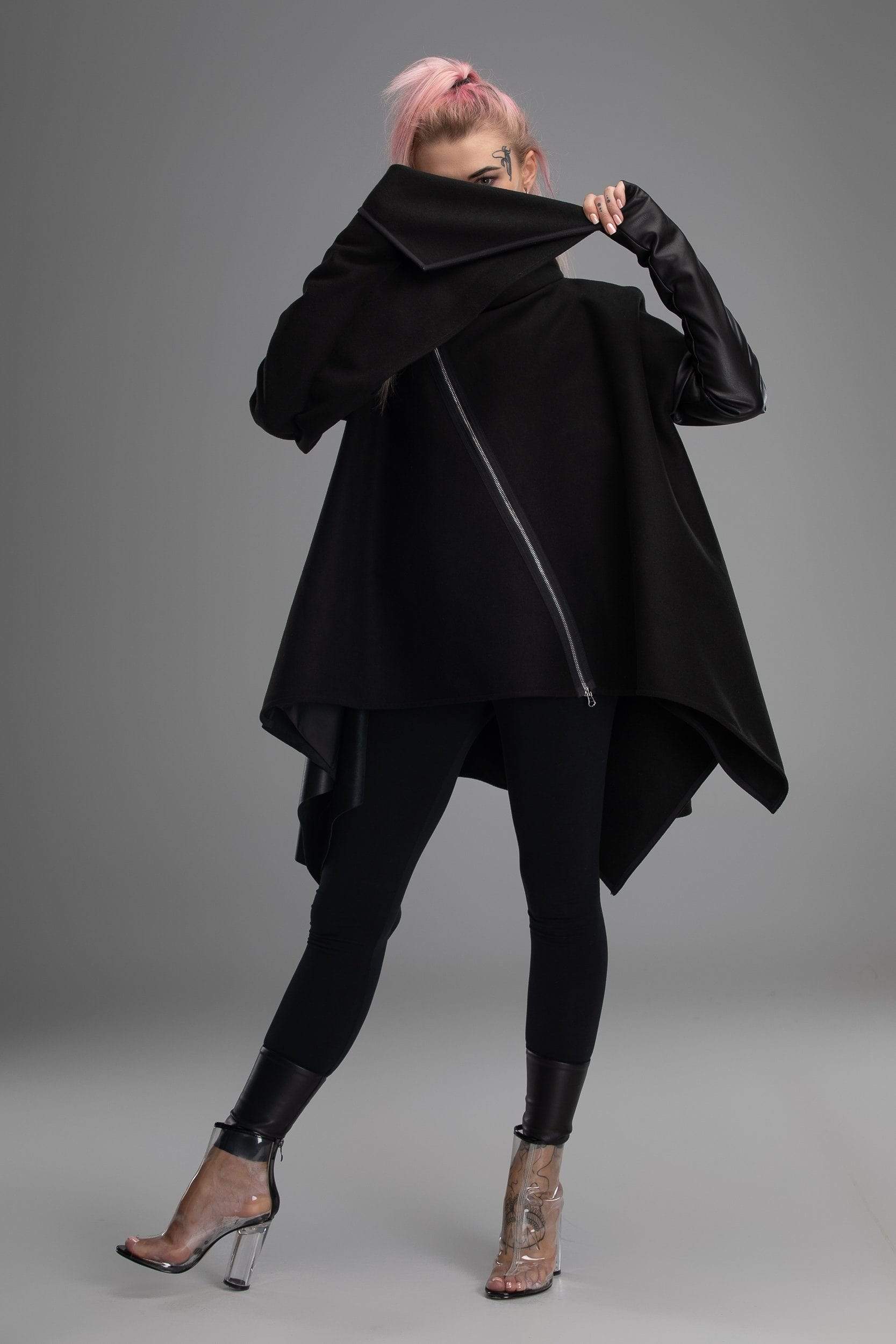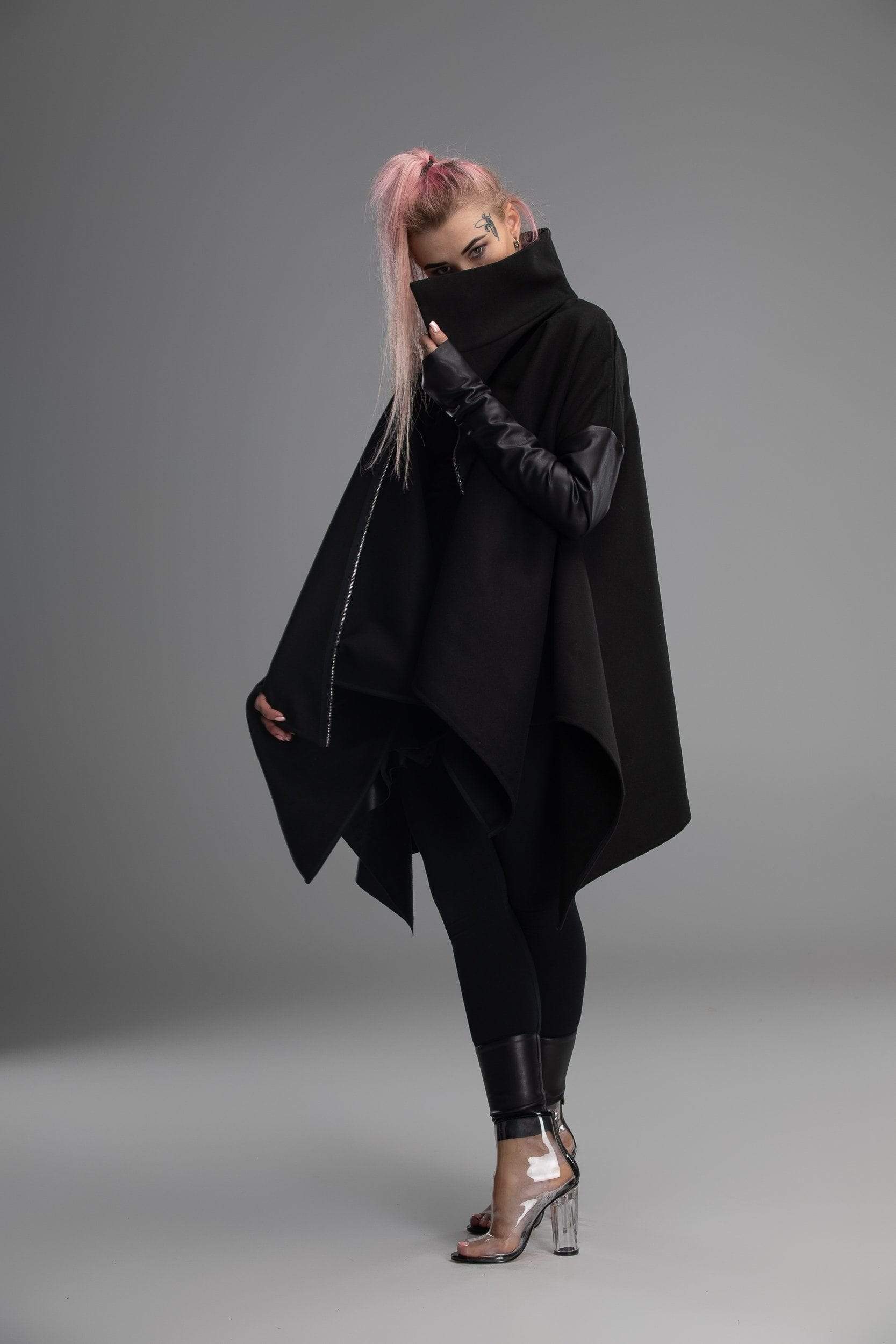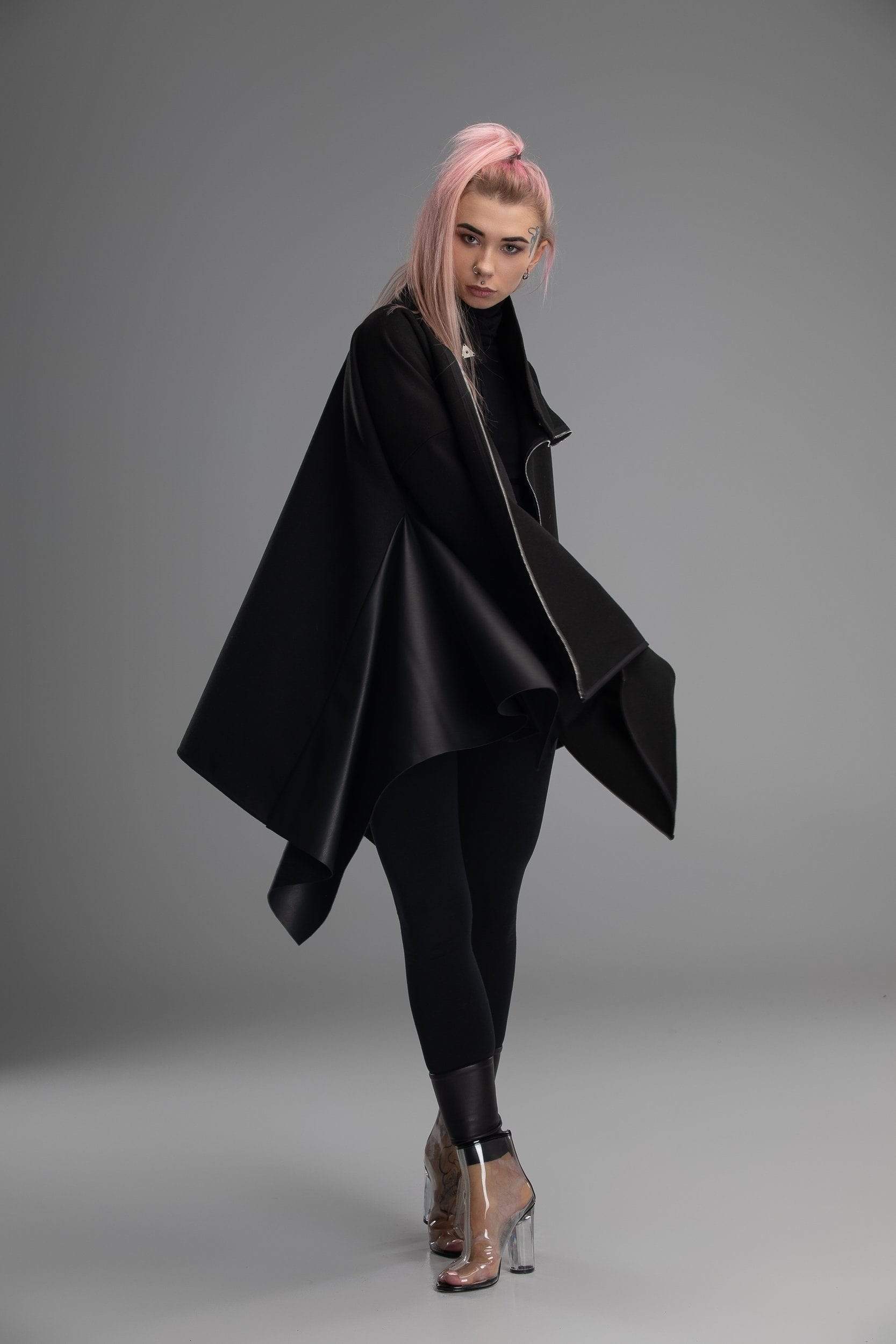 Your day to day look is not just a selection of clothes you chose, it’s a way of expressing yourself. This however doesn’t mean that clothes you choose doesn’t matter! It can be a real challenge to create a unique personal look with just the boring standard clothes you would find in any regular shop. Well, this is not a regular shop – here you will find all kinds of clothes with unique design, like this coat! Unusual shape, asymmetrical design, sleeves made from different materials and in different shapes, diagonal zipper – this poncho doesn’t even really look like an usual coat, more like a futuristic cloak. If you are looking for a way to make your look truly stand out – you found it!