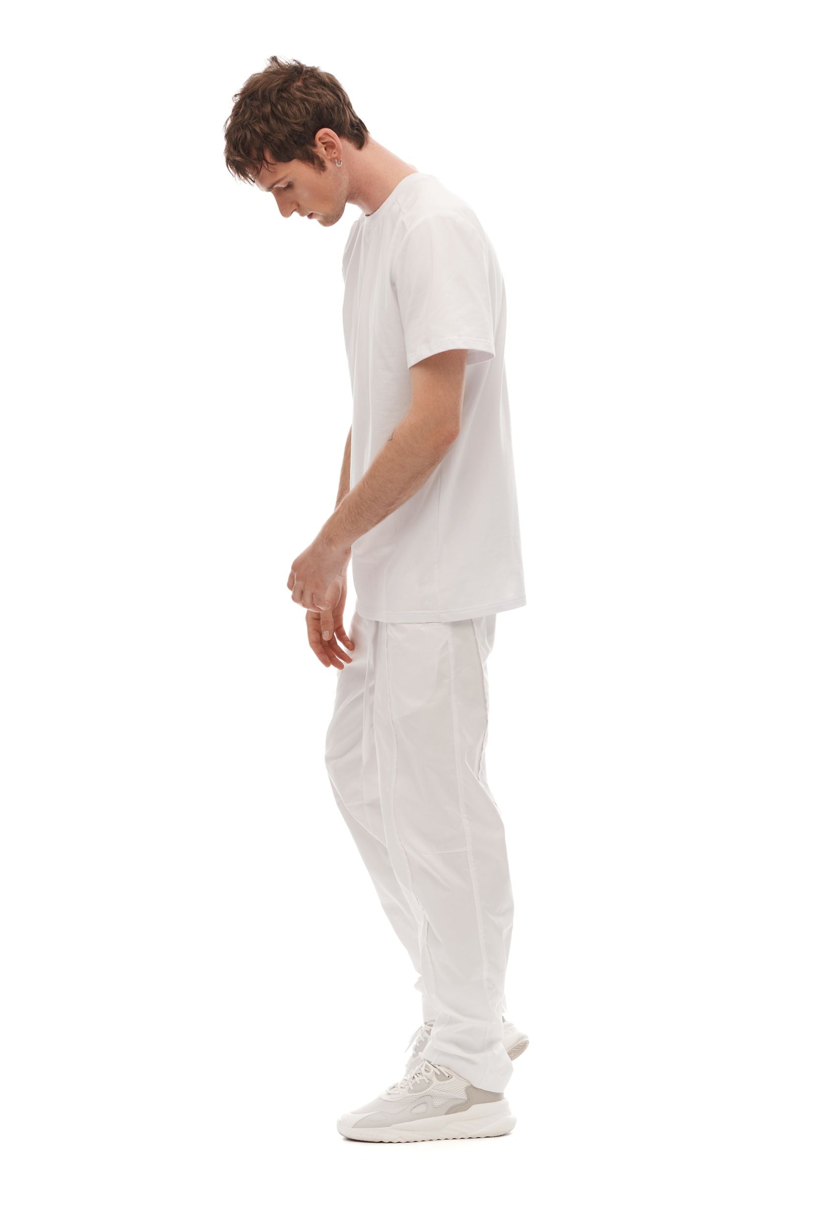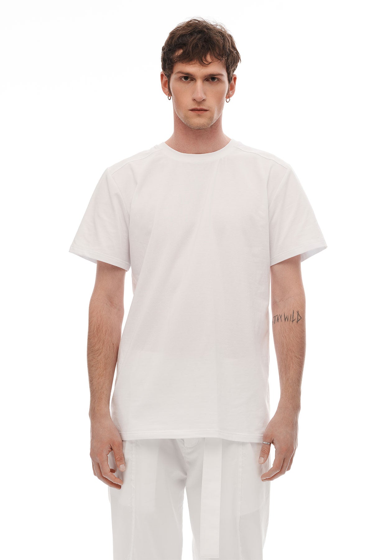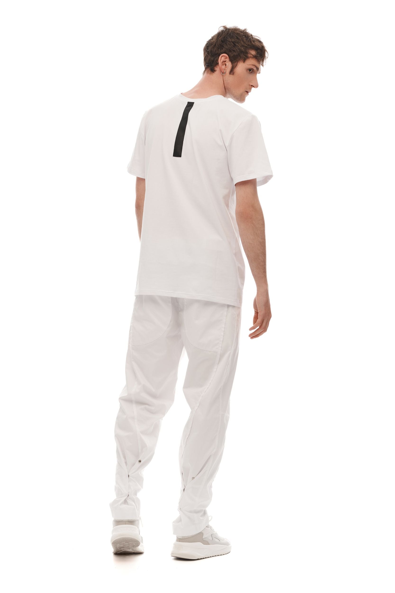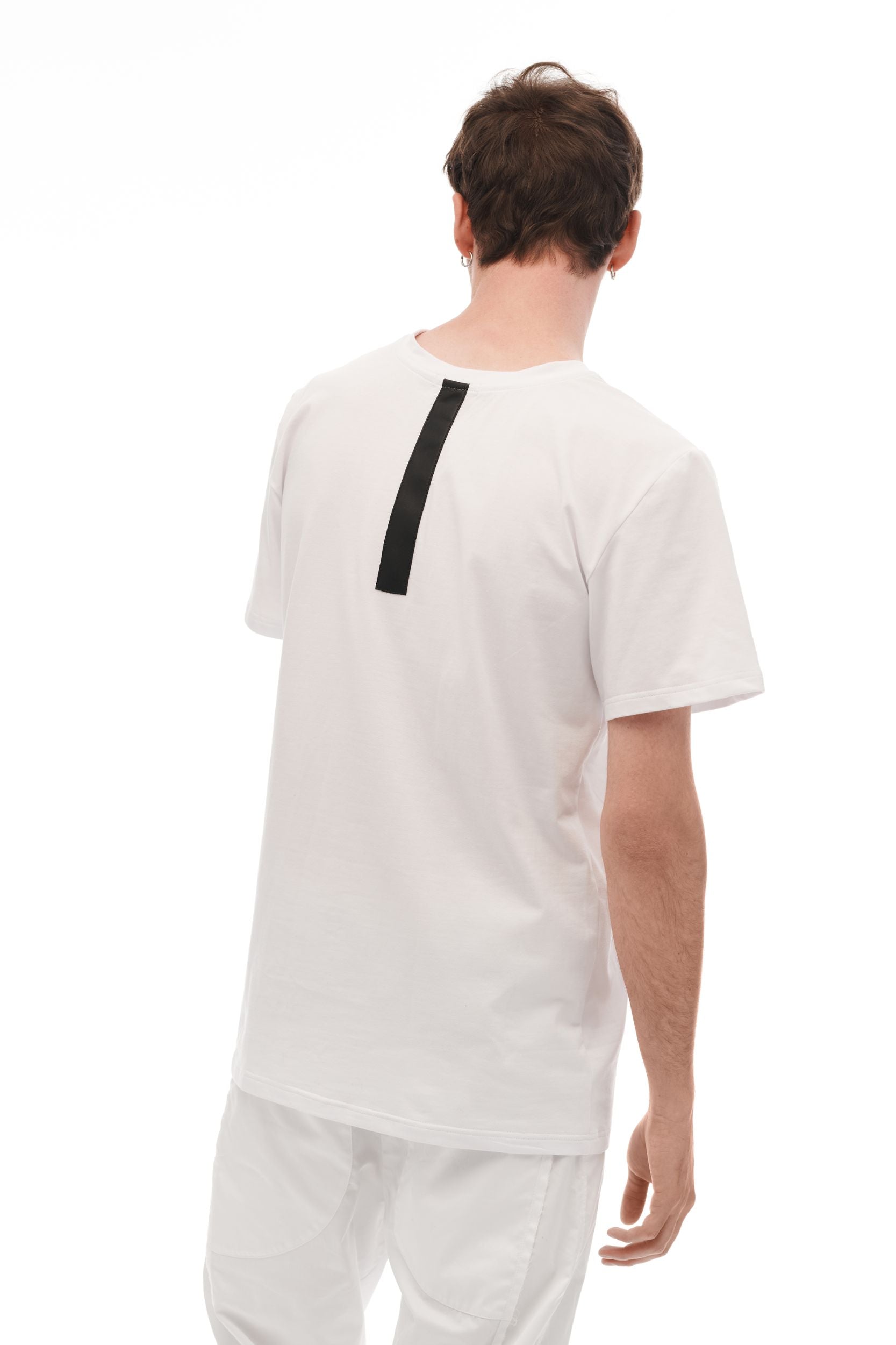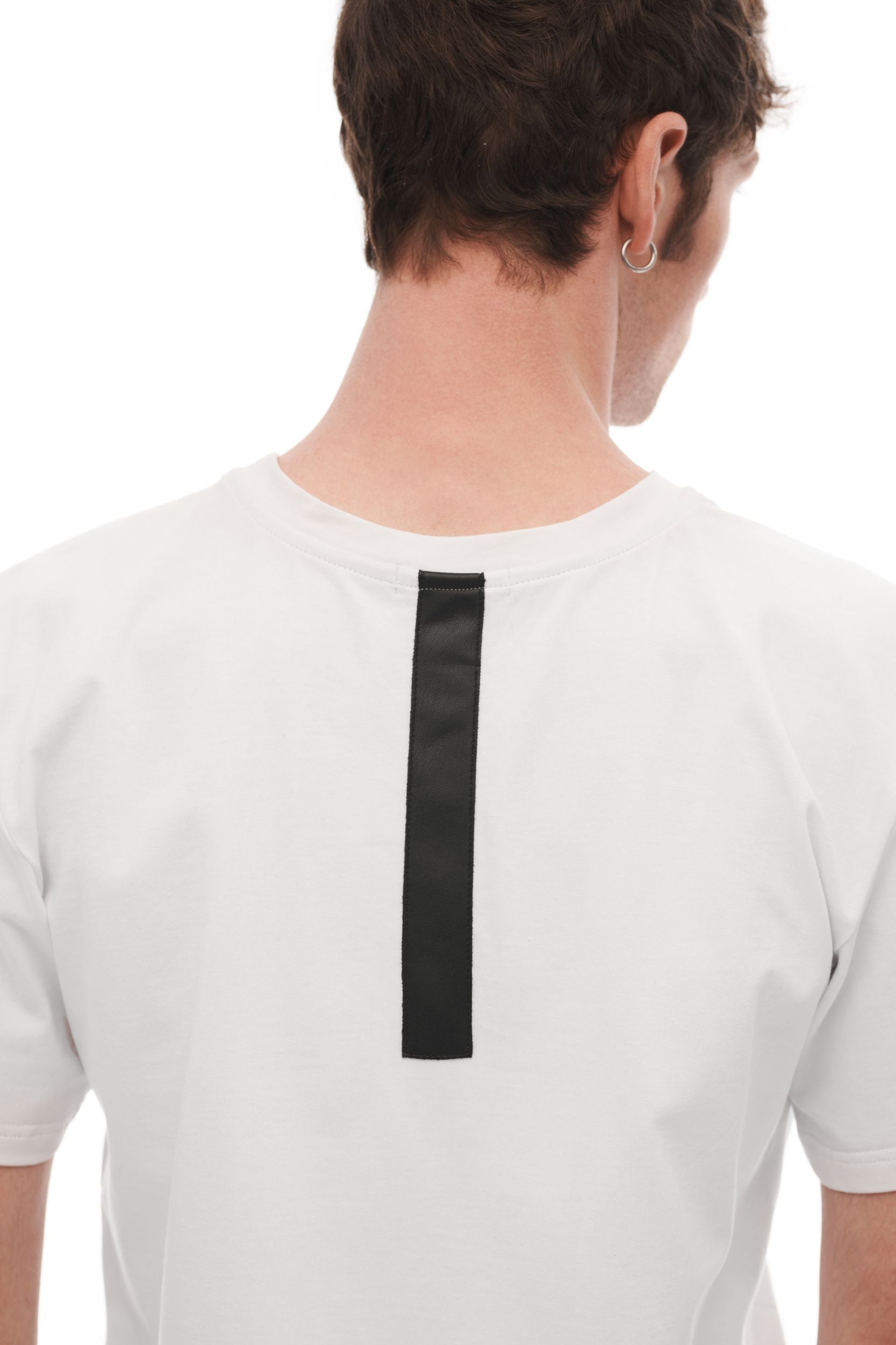This timeless black T-shirt is a closet staple you'll reach for again and again. Cut in a neat straight silhouette with a classic crew neckline, it's designed with slightly wider short sleeves for an effortless feel. Enhancing an otherwise regular T-shirt model, it's hallmarked at the back with an eco-leather stripe for a touch of attitude. Crafted from airy cotton for a breathable fit, it has a hint of stretch for a comfortable feel. Team this versatile piece with everything from relaxed trousers to bolder bottoms for a stylish look you can enjoy day in, day out.