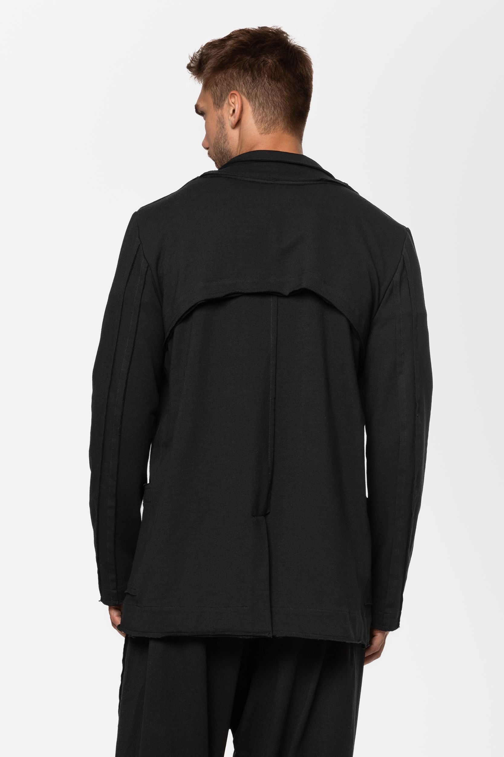 We have done the trick in this item by deconstructing a traditional jacket and replacing its fabric with a softer and more casual material. The raw edges and the external seams have been added to dramatize the informal look and feel. Additionally, we have included both a hidden pocket and a patch one. Embrace a sophisticated style with ease daily.