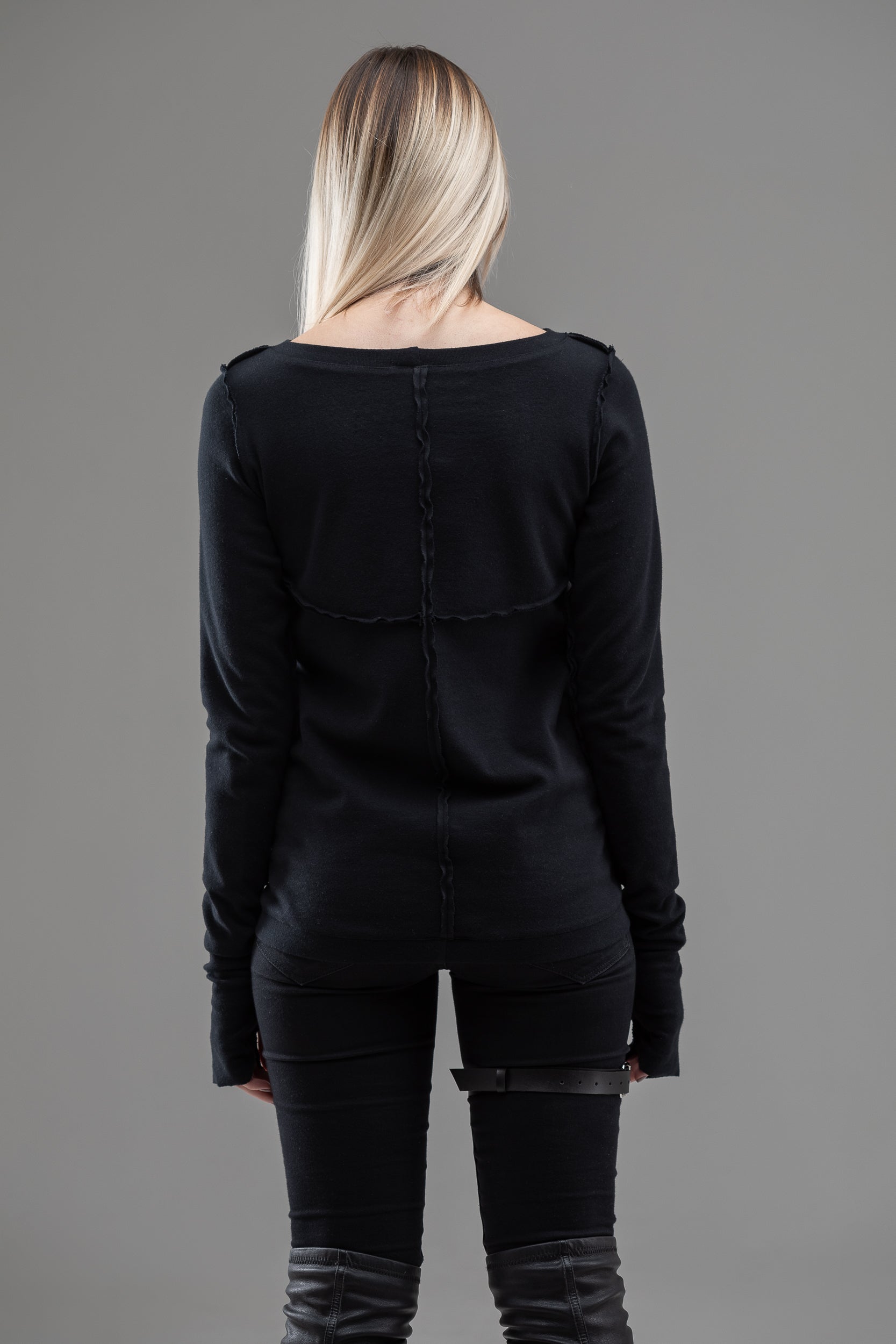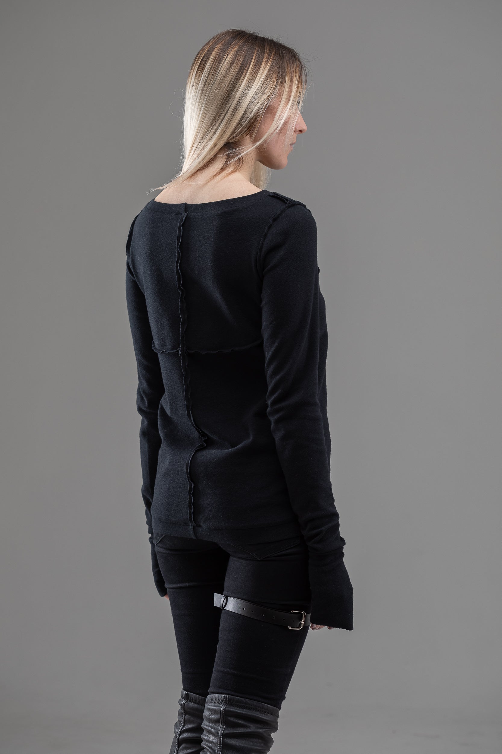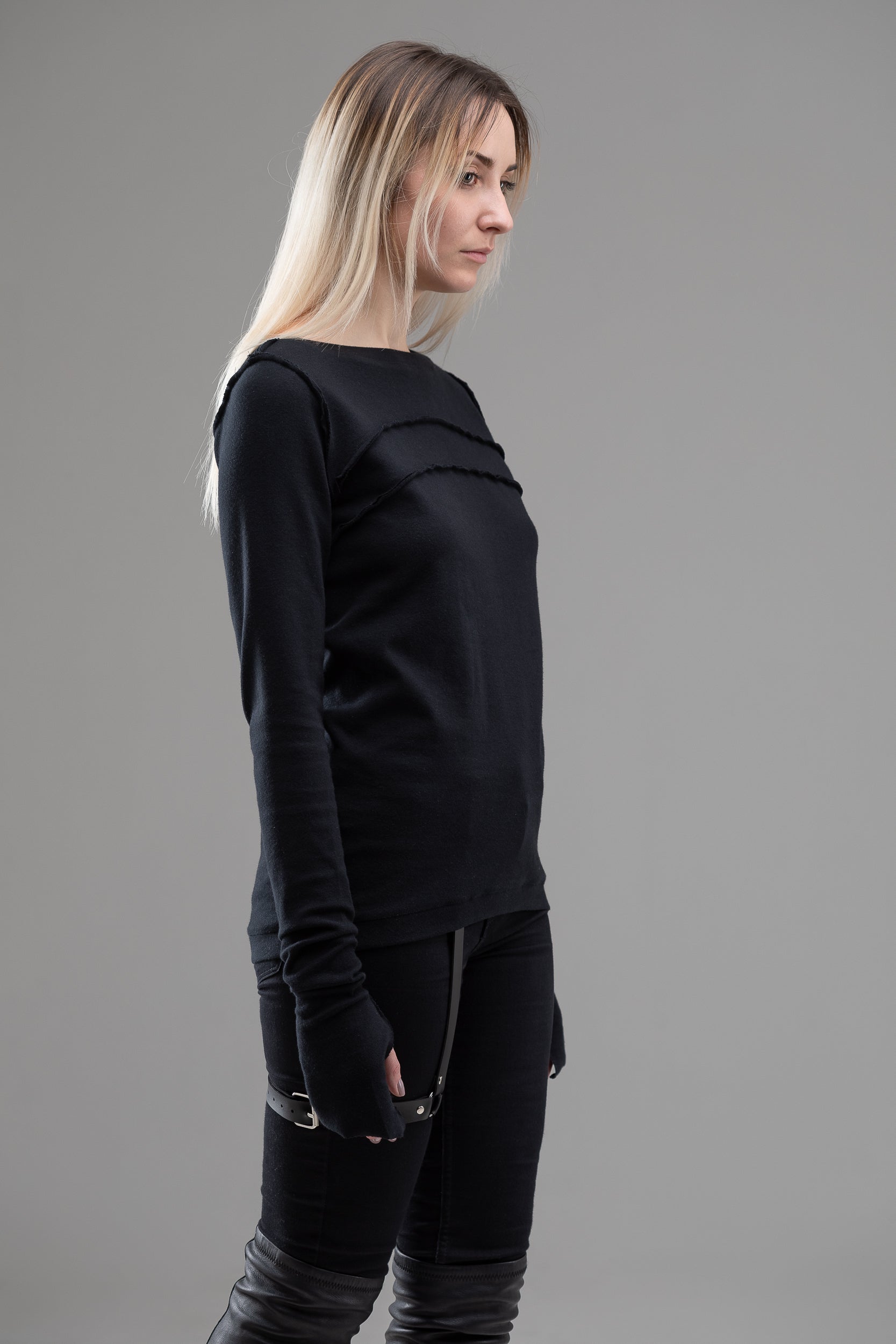 Usually it’s only a few small details that make the difference between a plain, boring piece of clothing and a unique, sleek-looking one. As is the case with this sweatshirt. In addition to being really comfortable and pleasant to the touch, it is a great example of small details making a big difference. It would just be another off-the-shelf sweatshirt if it weren’t for some of the unique design choices and aesthetic details. Visible seams on the outer side, sleeves that transition into the fingerless gloves – and you get a truly unique garment, perfect for a stylish day-to-day look!