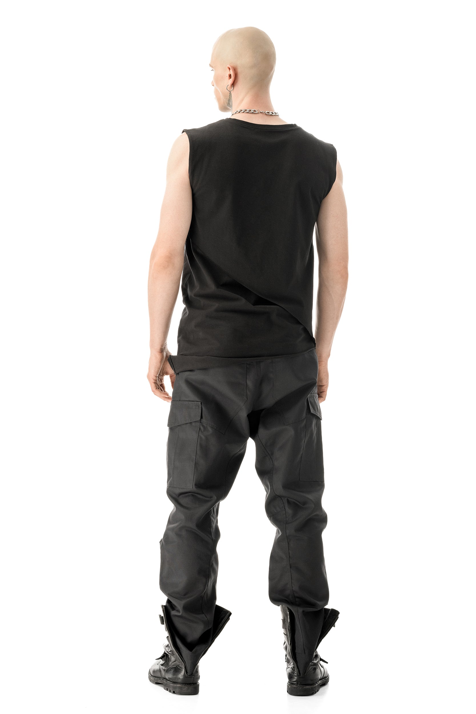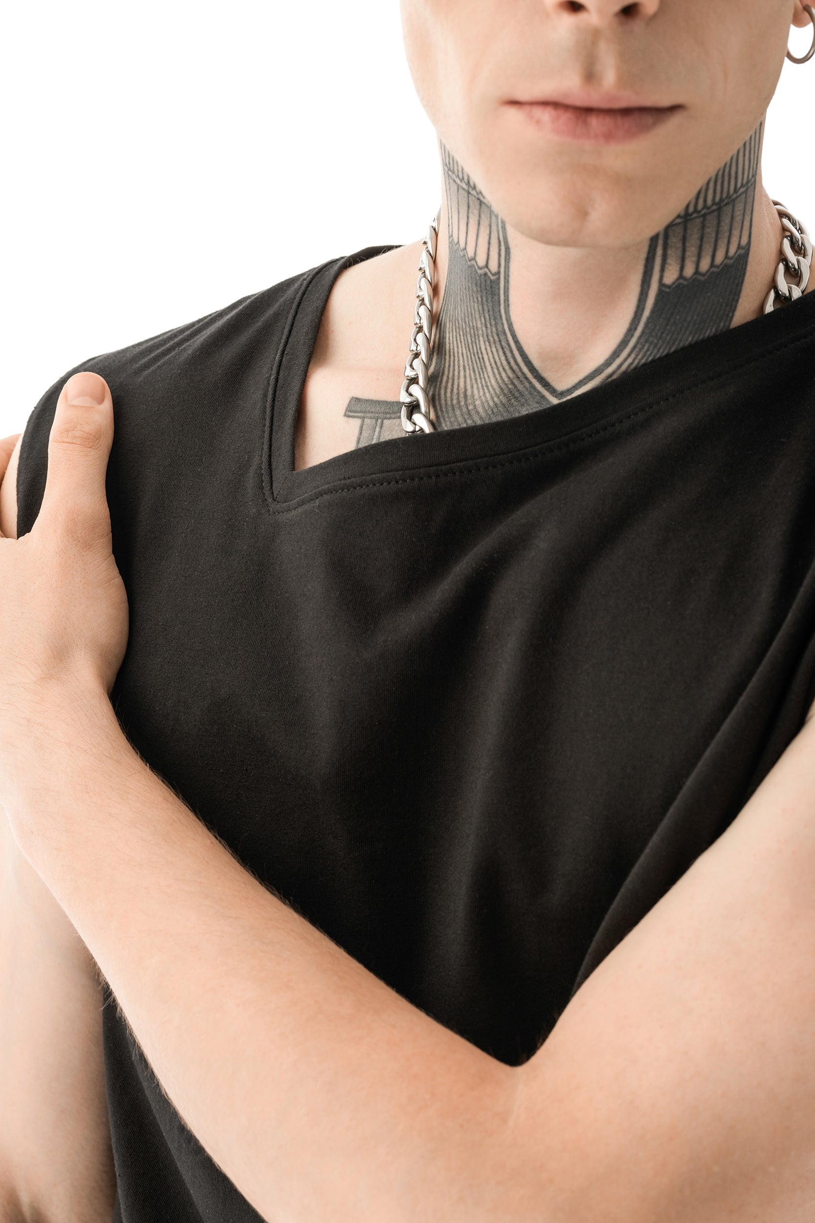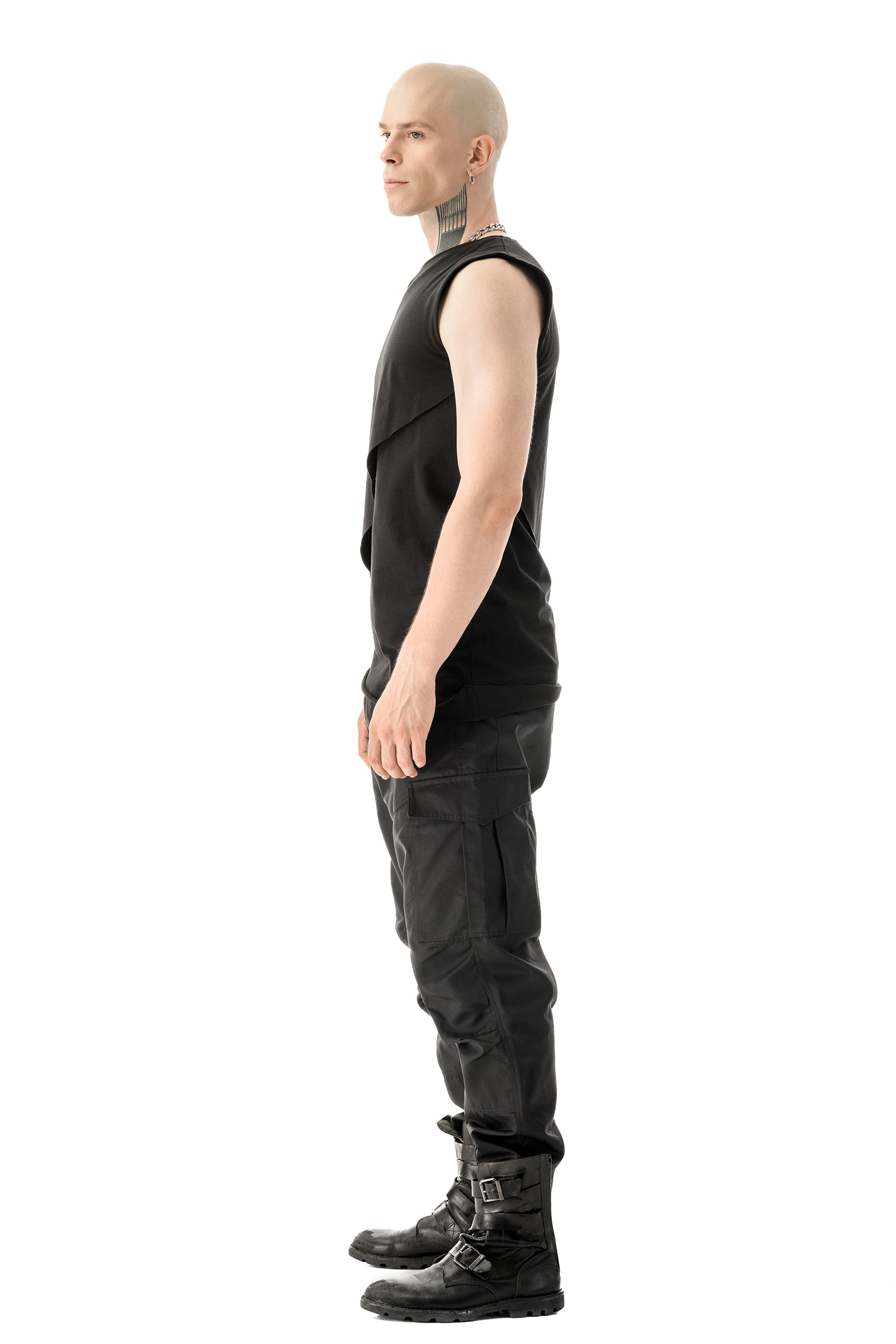 Brief is the perfect t-shirt to showcase your inner confidence, whether you're heading to a club or layering for everyday wear. This double-layered sleeveless top features an atypical neckline and geometric lines, adding an edgy touch to your look.