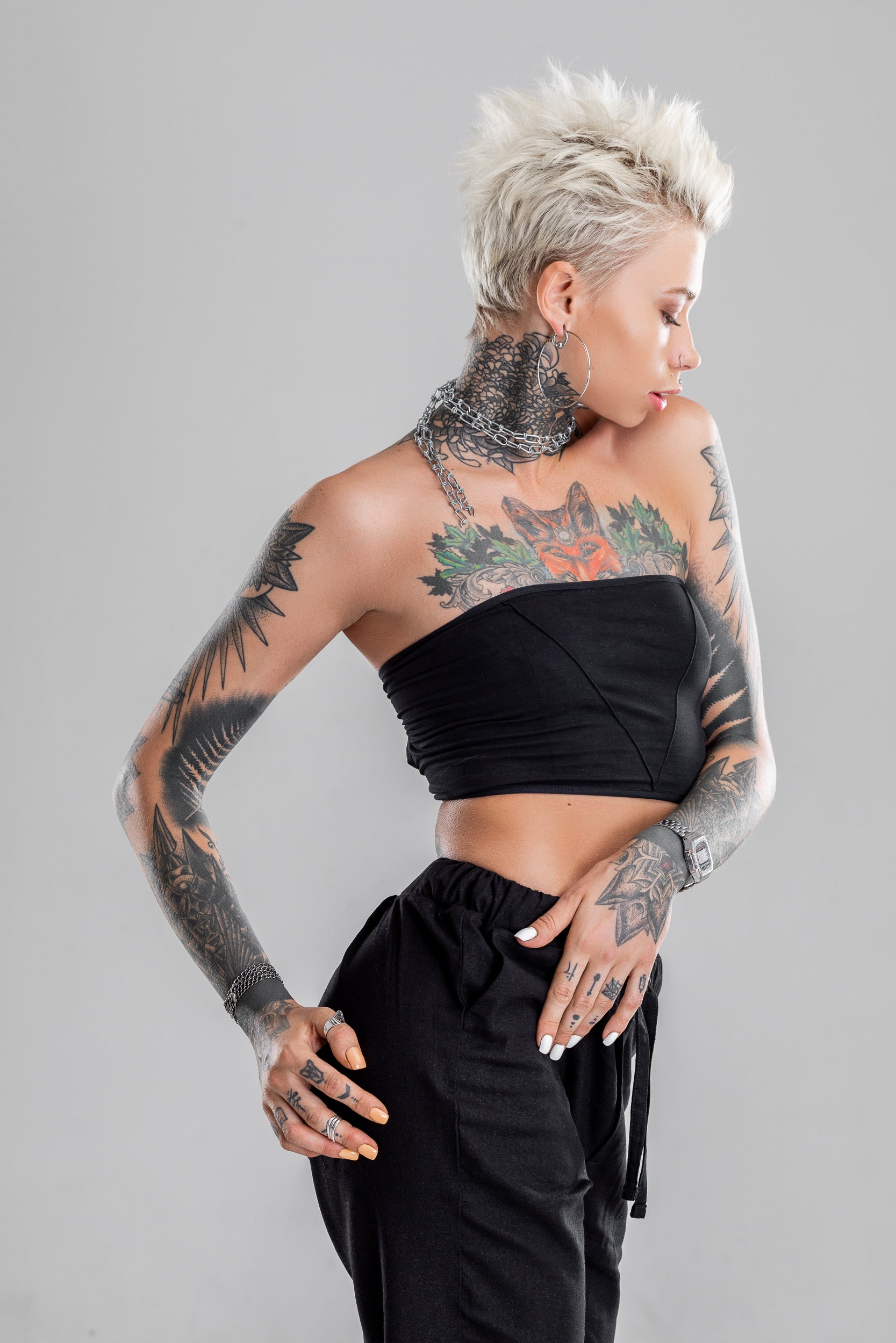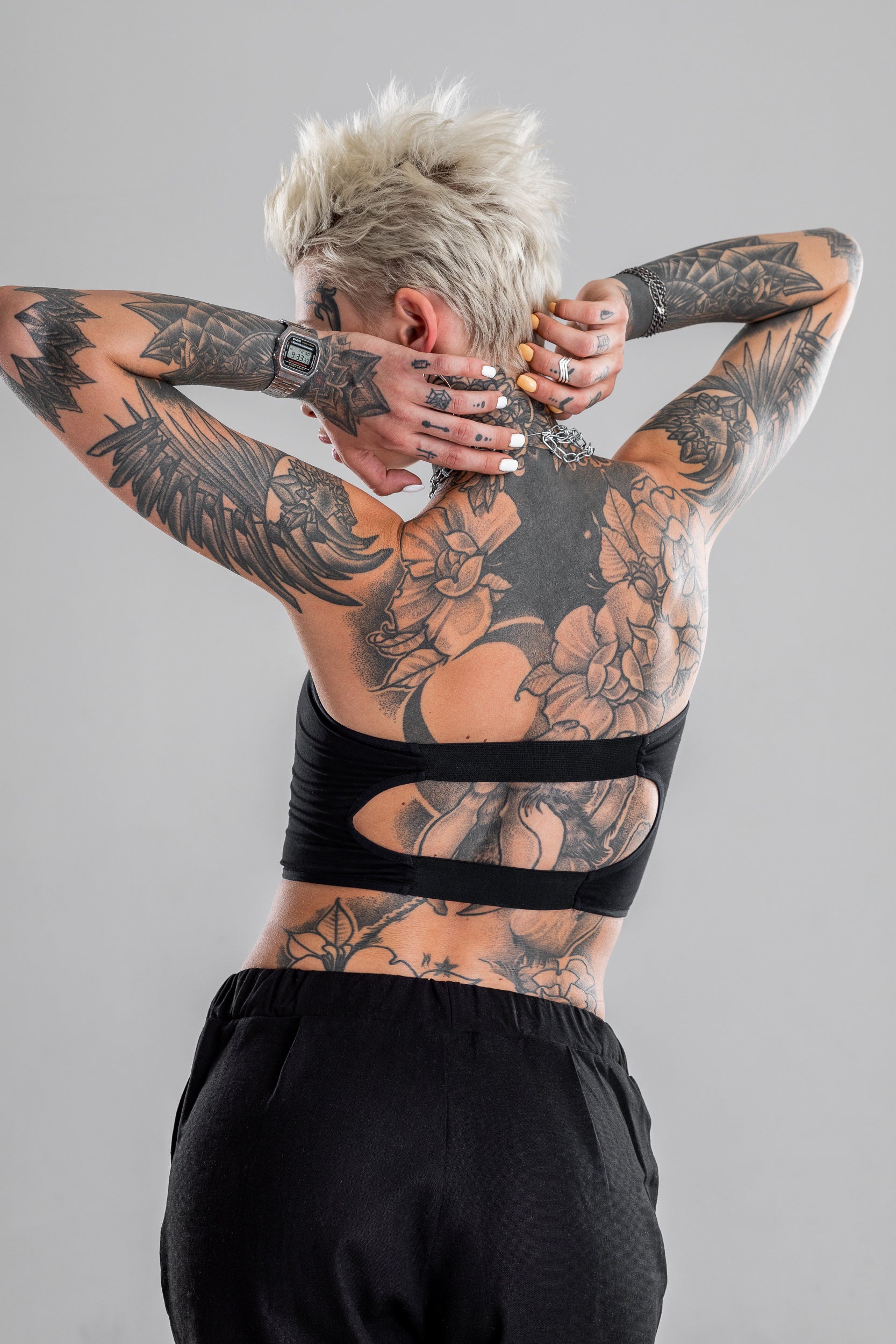 In a world of mass-produced clothes, it can be hard to find truly unique and original garments, especially the ones that don’t sacrifice comfort for looks. Well, this top is one of them! It has a rather simple design, but this is not the simplicity that can be called “boring.” It’s sleek, minimalistic, and daring. The material is double-threaded fabric with elastane. On the front, there are two tucks that form a triangle, adding to the unusual design. The back is elastic, with a stylish oval cutout. Please note: Hygiene restrictions apply; this item is non-returnable.