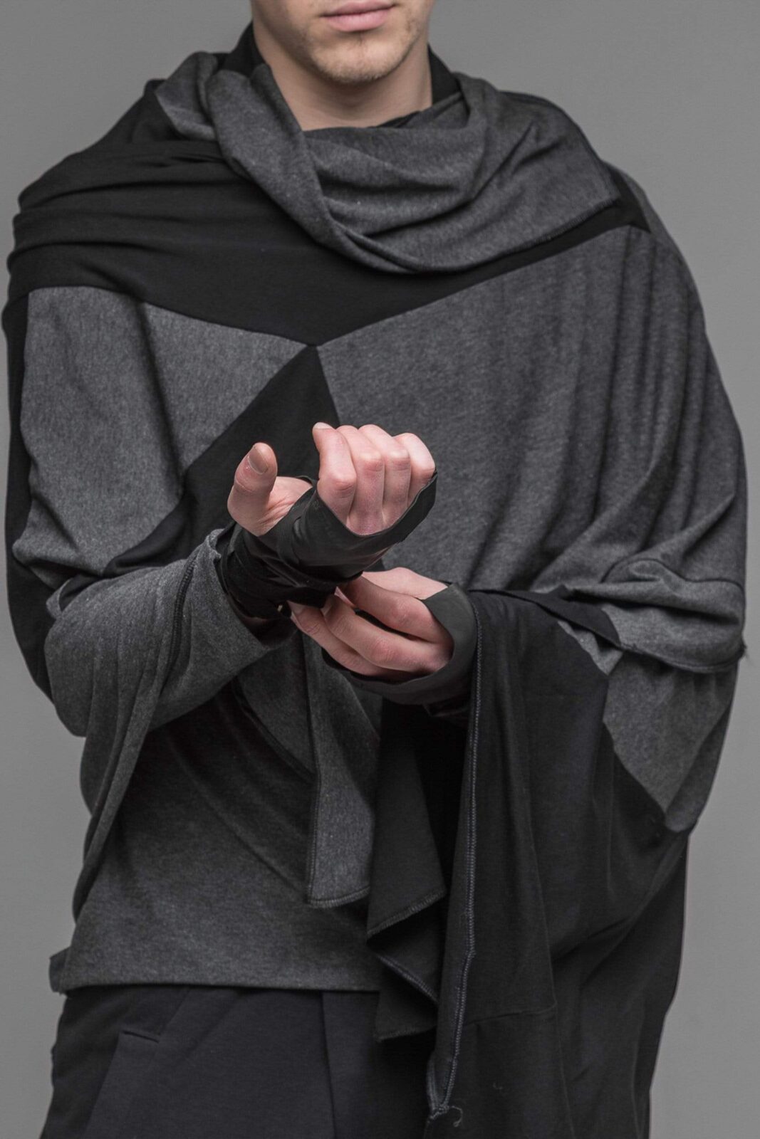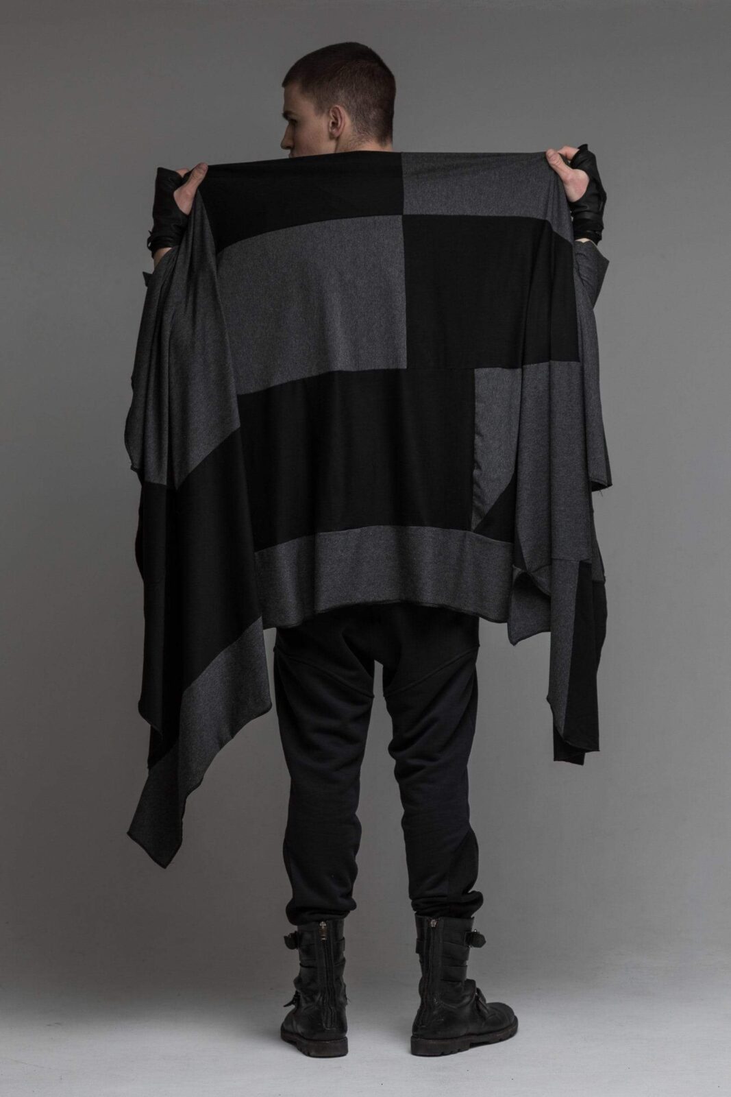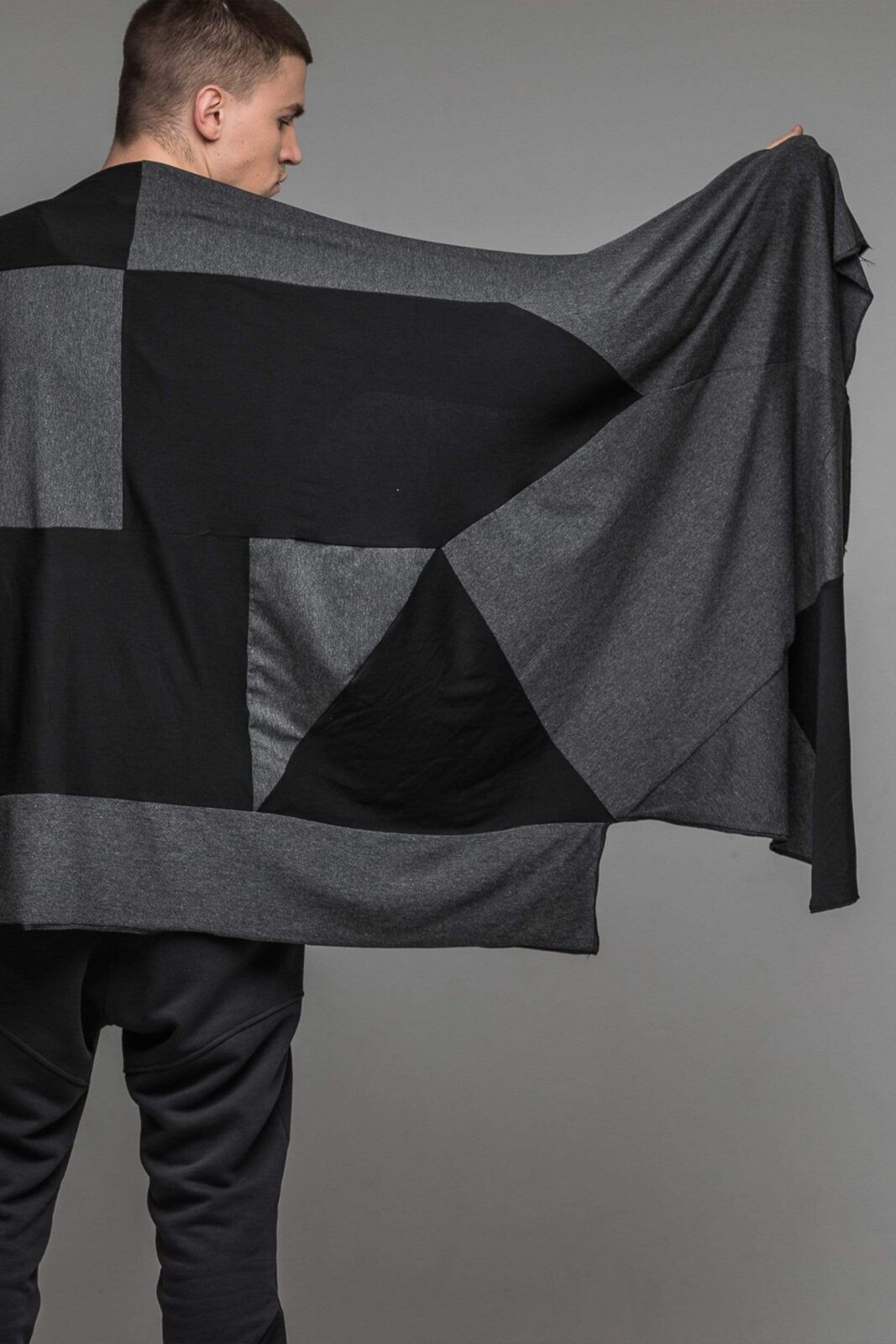 Created for wanderer spirits and deep thinkers, whose lives are driven by hyperactive imagination and lucid reality. For the ones who're indulging in arcane matters that perplex their mind and deciphering recondite questions that arise. Presenting patchwork design and overlap closing style, this scarf acquires a distinctive artistic sense to it revealing a brand new angle to boro-inspired clothes. Made to set you on another darker trip, the irregular geometric scarf checked with all black and muted grey zones of cyberspace is a key piece to completing the atmosphere for dystopian looks and apocalyptic wear. Compellingly inspirational, the all-viscose scarf is crafted as menswear, but it will look equally good on women.