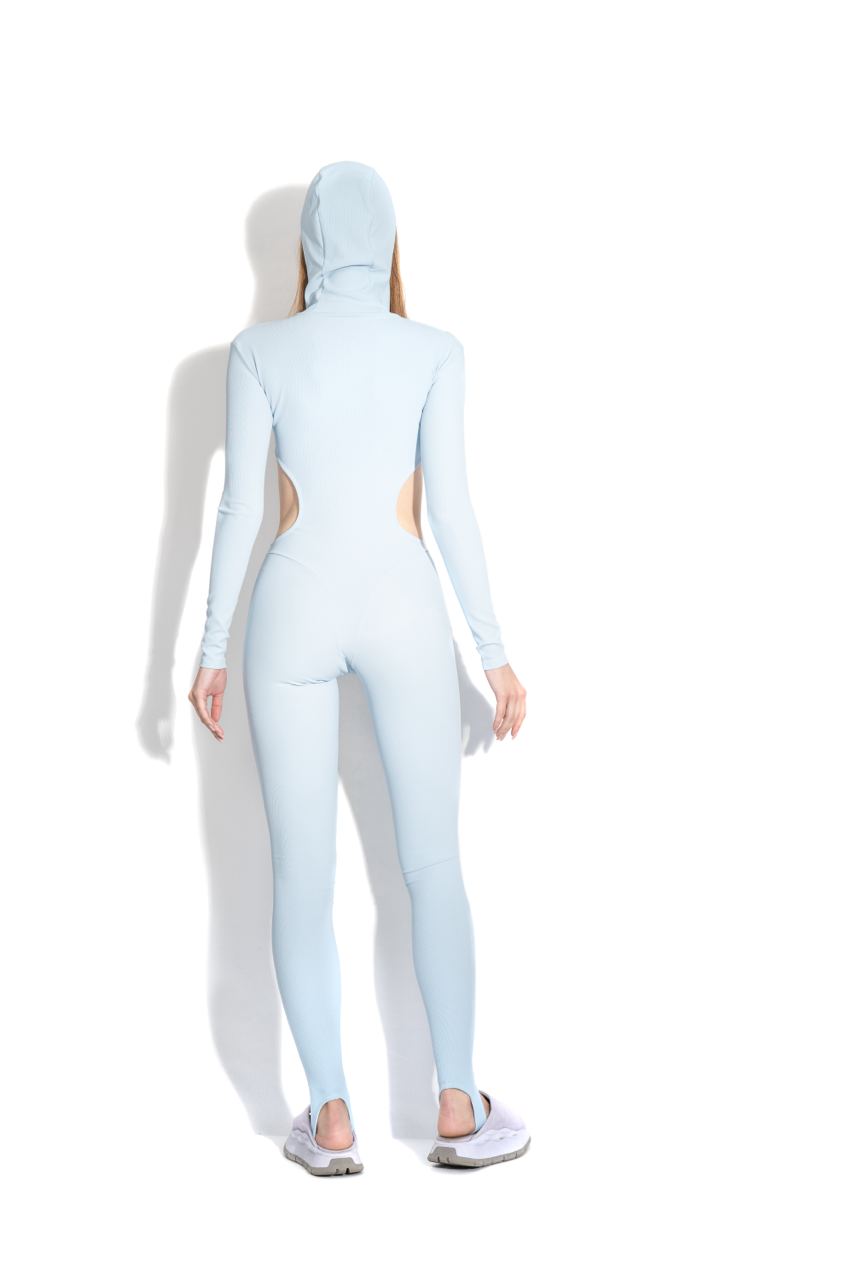Blue cutout hooded bodysuit