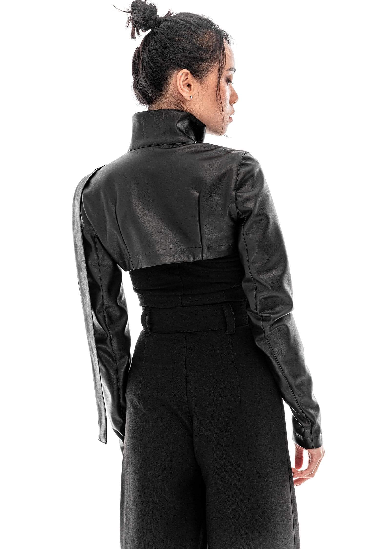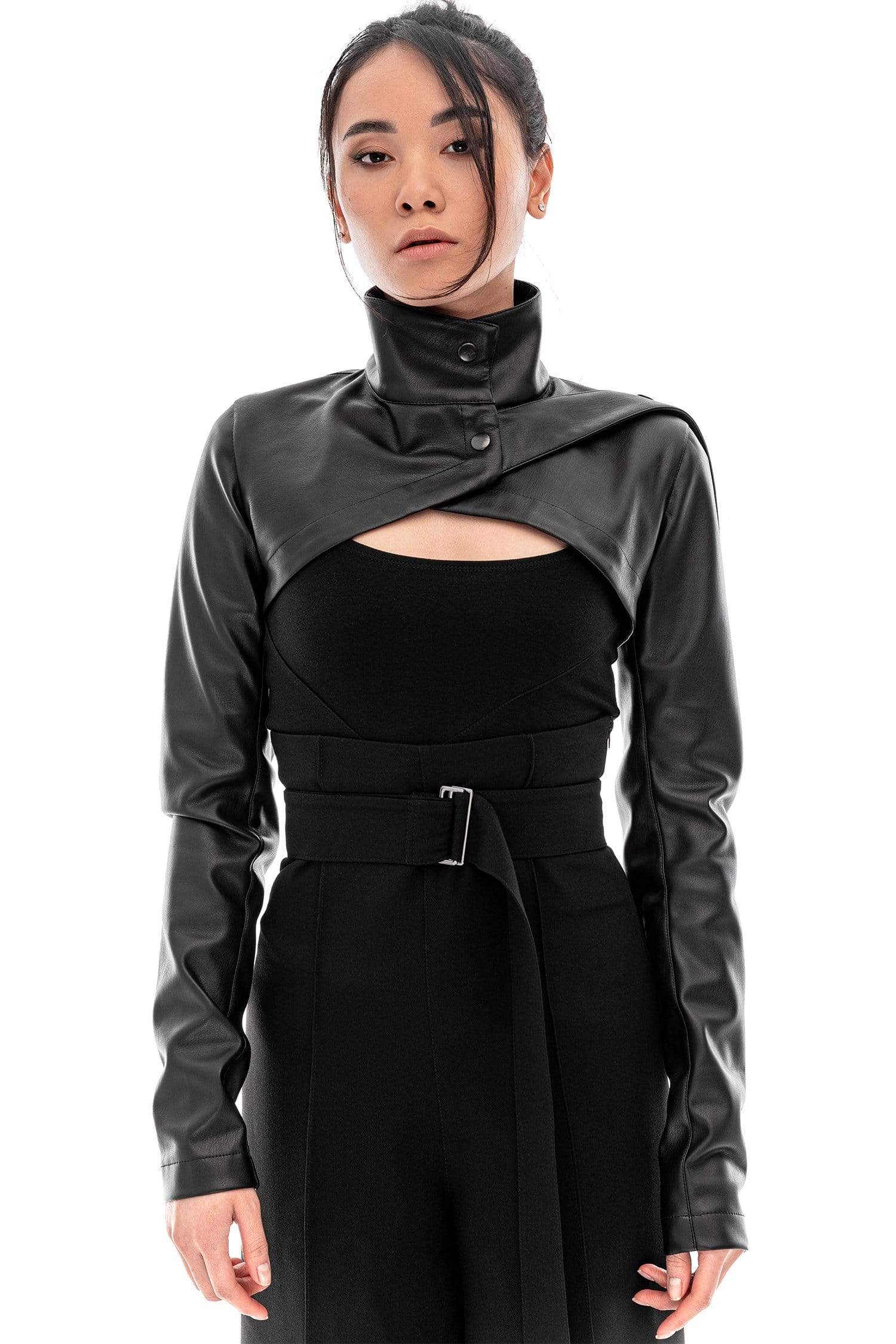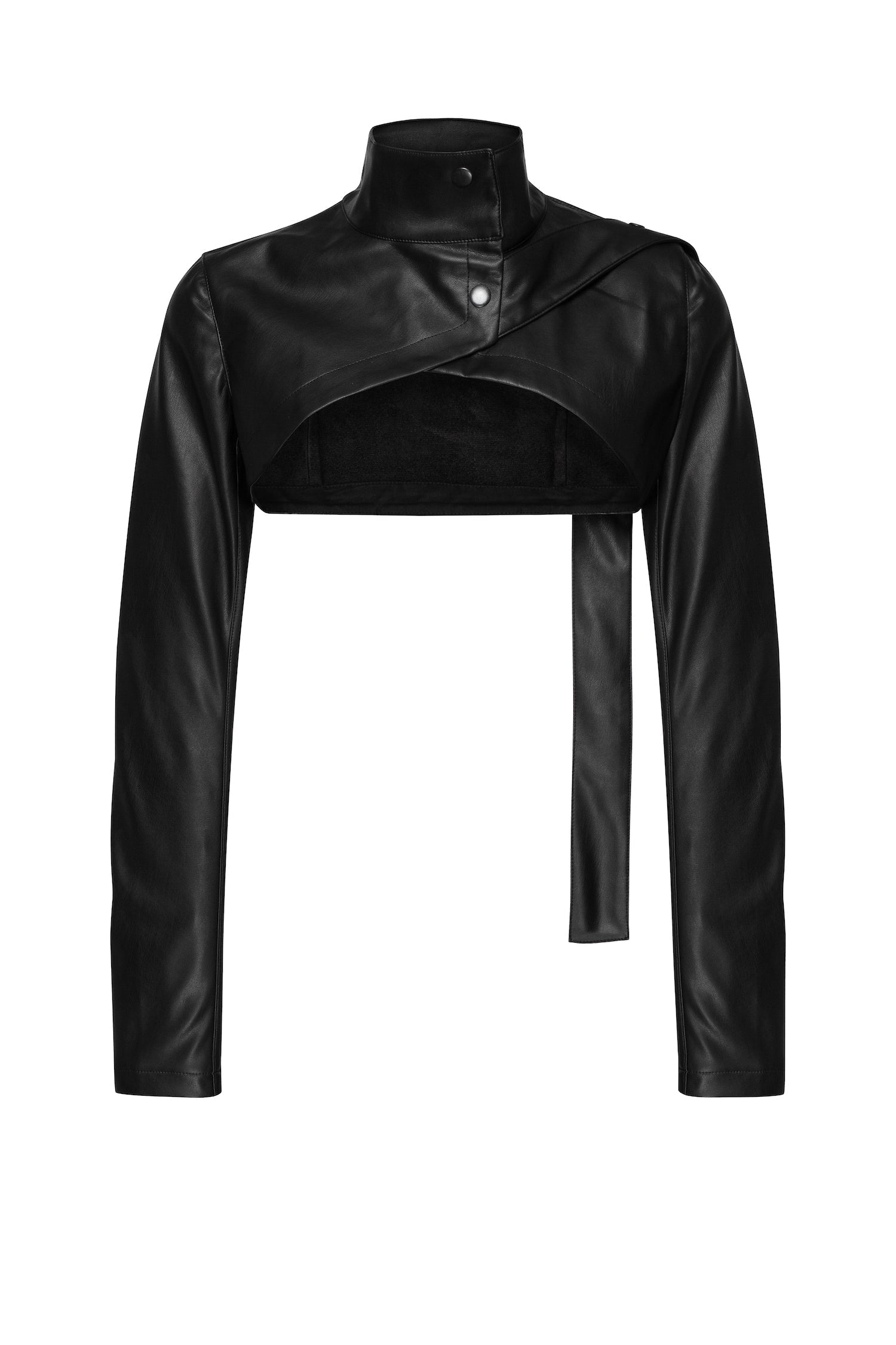 This shrug has long sleeves and convex construction cuts at the front, displaying a playful collar to leave a maximum impression.