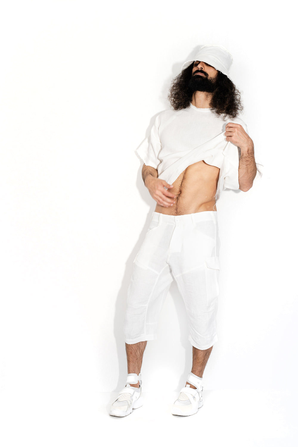 With a below-the-knee length and tapered legs, these shorts boast multiple pockets. They include two edgy patch pockets on the back, side pockets, and oversized flapped pockets.