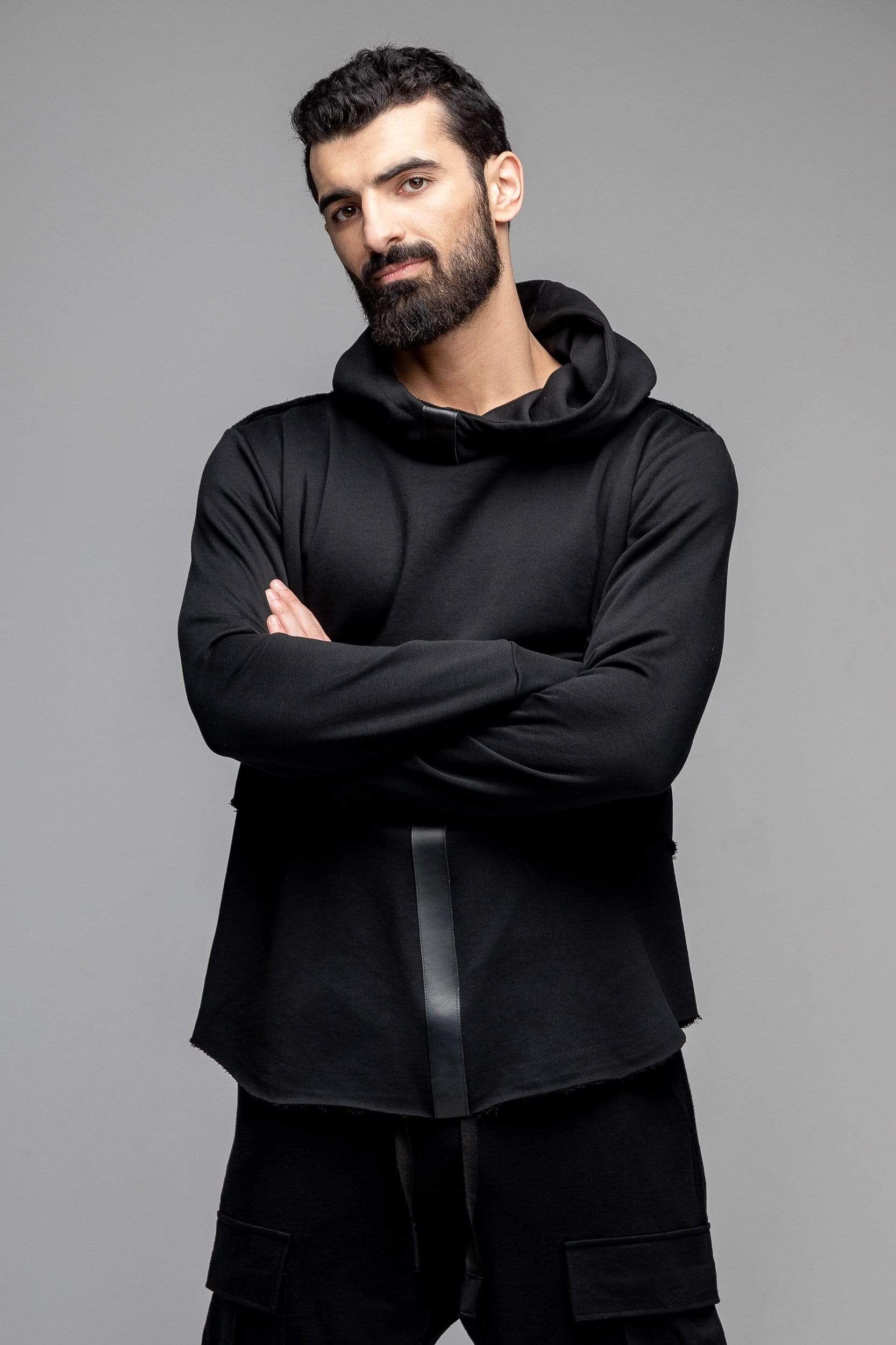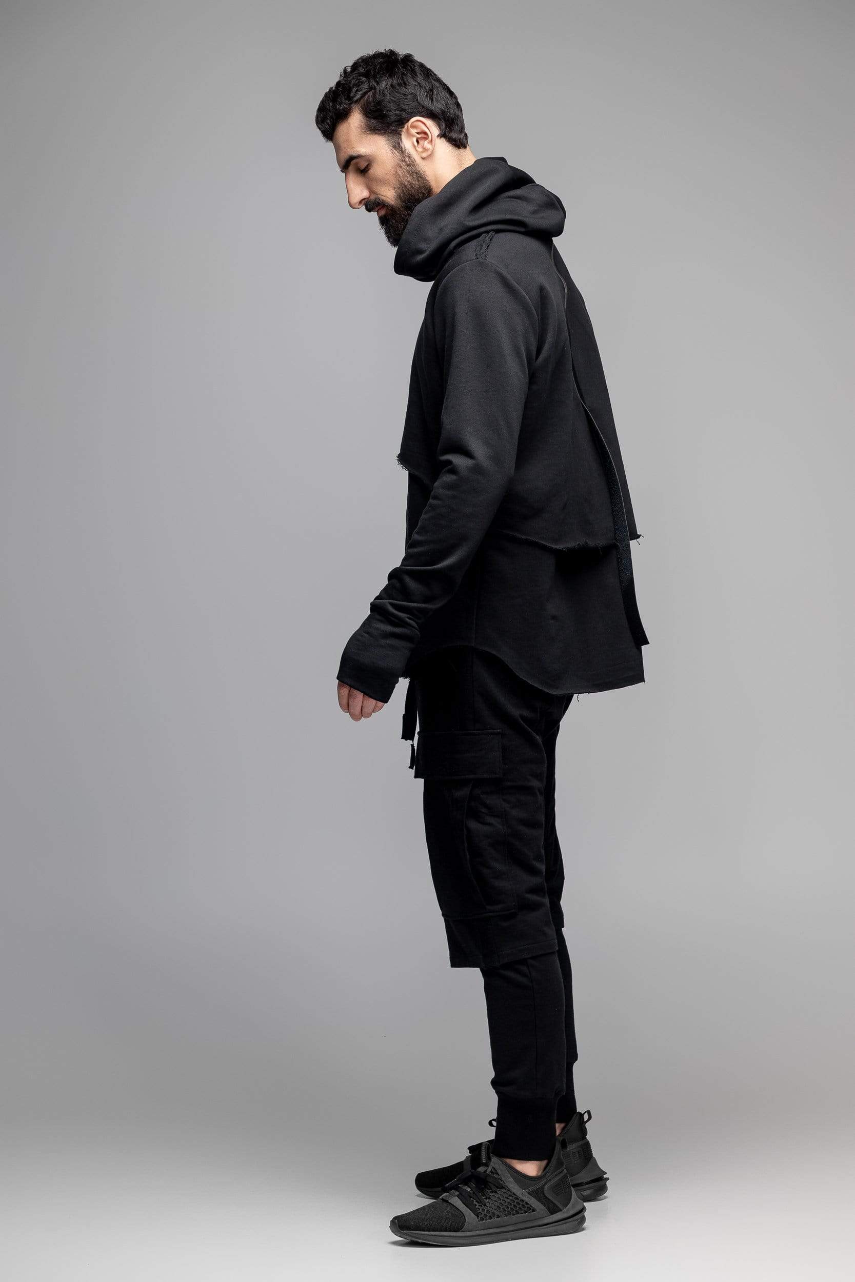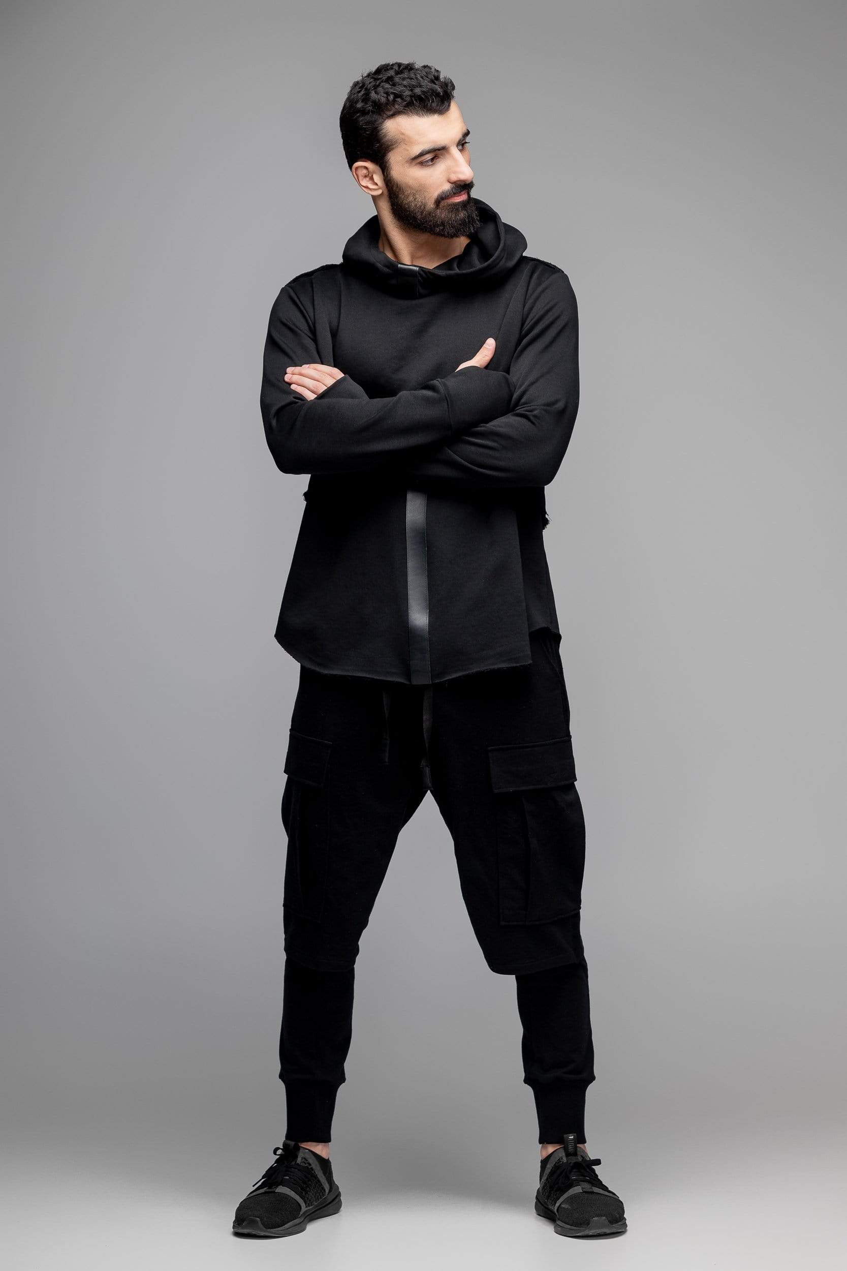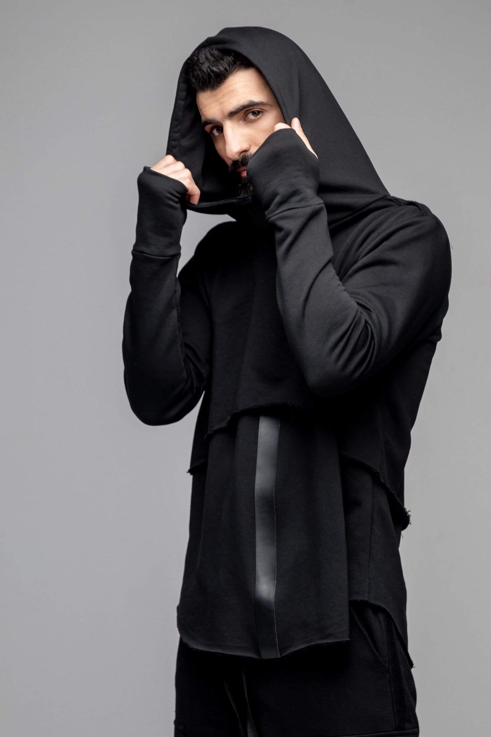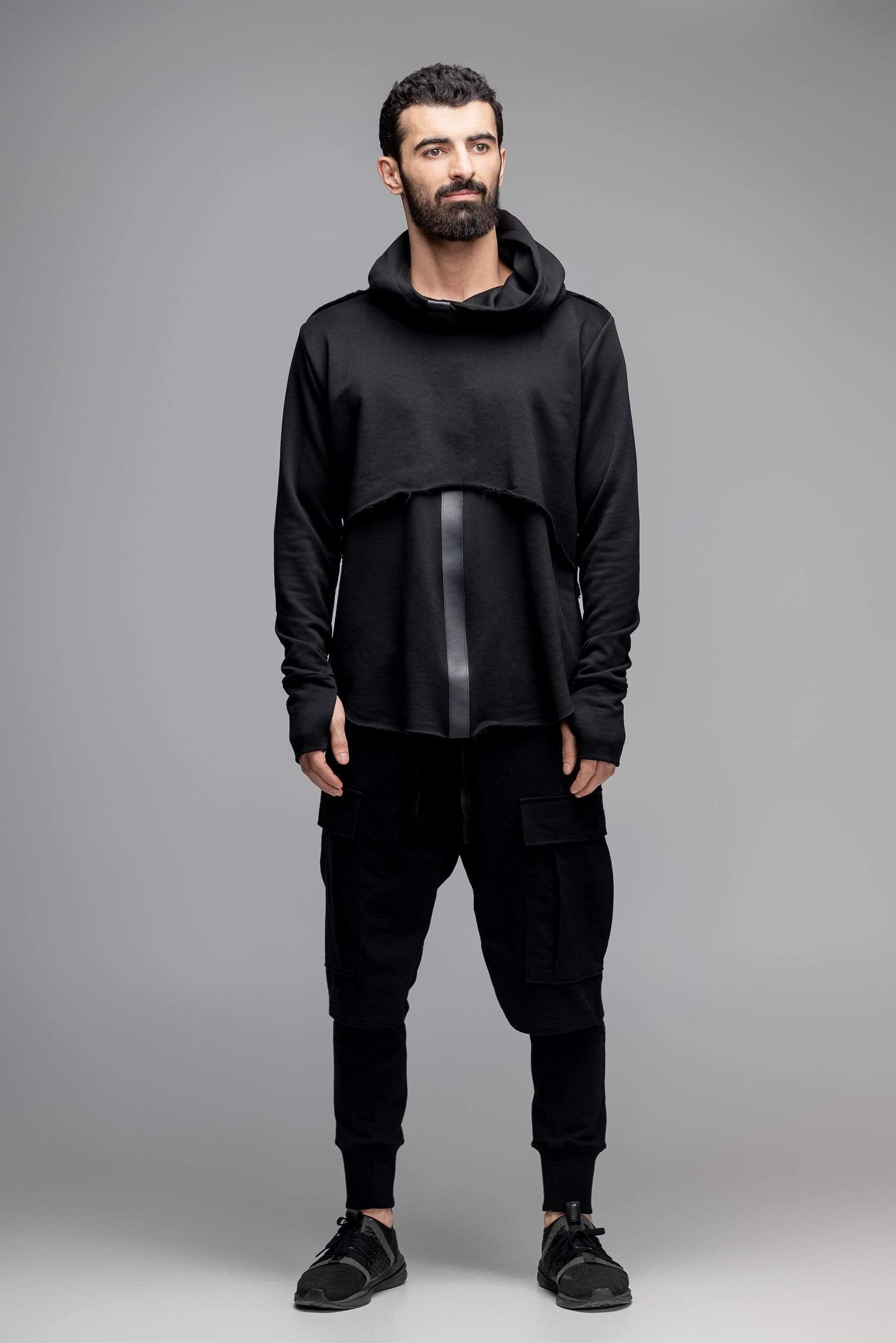 Our stylish shop specializes in unconventional clothes that make you stand out, such as this hoodie. The unusual shape, interesting design, and comfortable fit make this a great item of casual clothing for any occasion. The dark color of the hoodie contrasts the usually flashy clothes people wear today, which adds to the uniqueness of your look. Another great feature of our futuristically styled hoodie is the multiple straps, securely attached to the main body of cloth. They provide no practical purpose, but that's not the main point with fashion, is it? These straps top off your outfit with the small minimalistic details you might have been missing. If you want comfortable clothes that set you apart from the crowd without resorting to extremely bright colors and reflective surfaces, then look no further - this alternative design hoodie is the perfect thing for you!