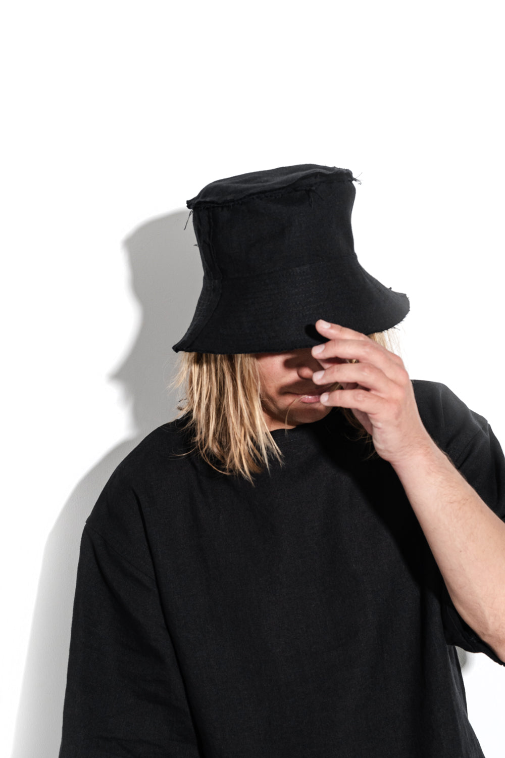 This hat is crafted from thick linen canvas and offers two wearing options: with a raw-edged crown or a neatly finished one. Choose your preferred side, and always stay in the shade.