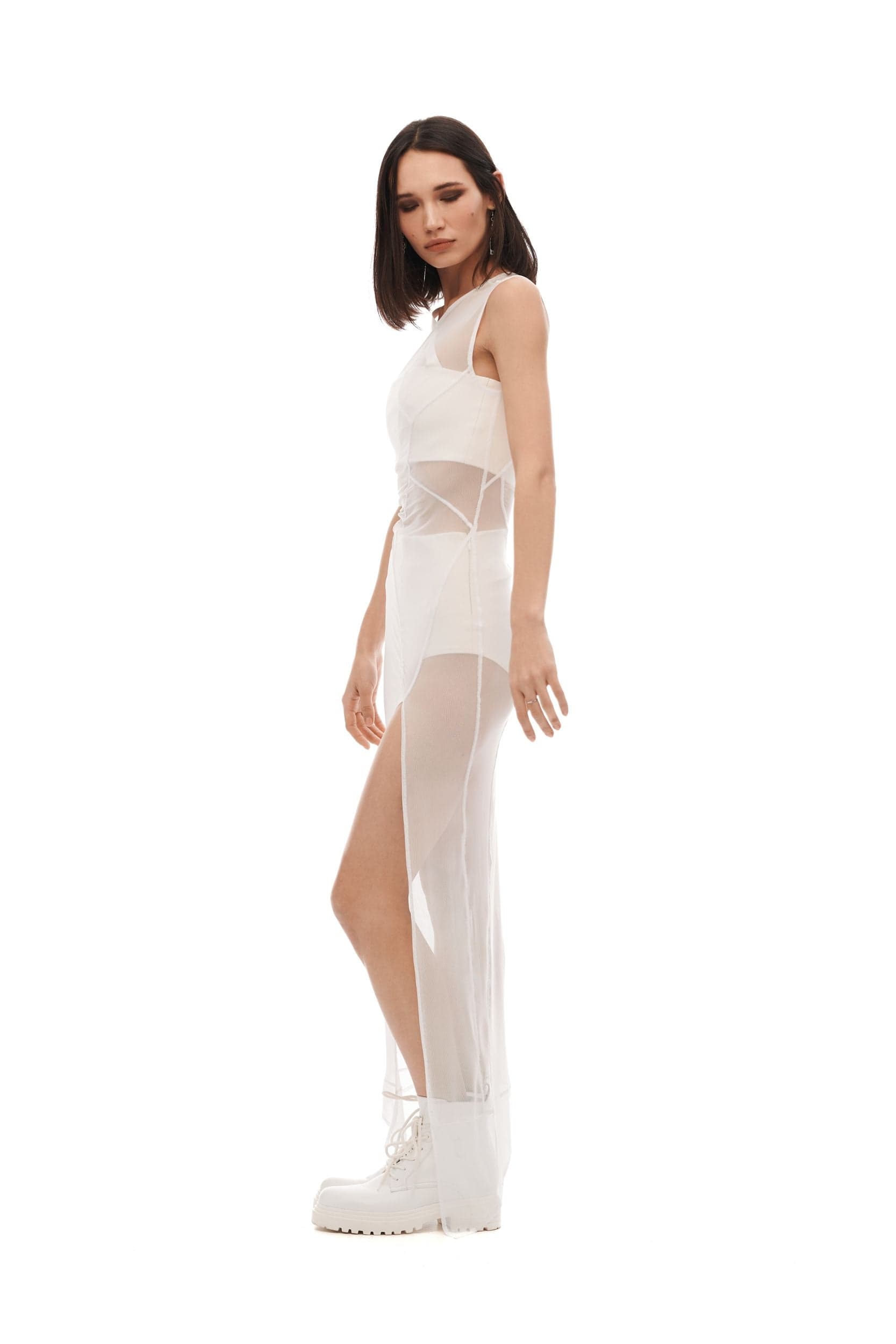 Wrapped in an aura of mystery, Skia is sheer proof that a transparent white dress can match the rebellious spirit of the wearer and be perfect for after-midnight encounters.