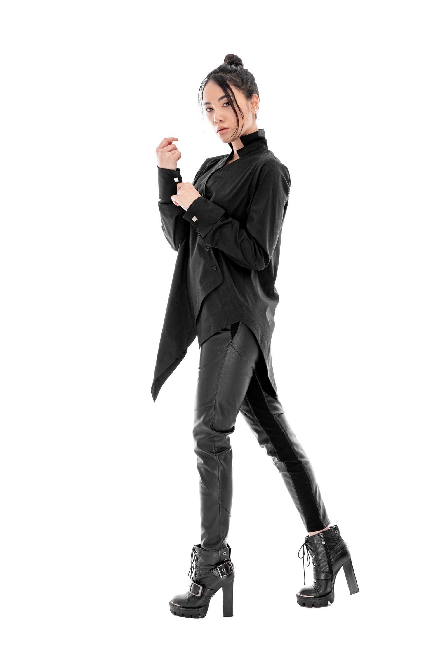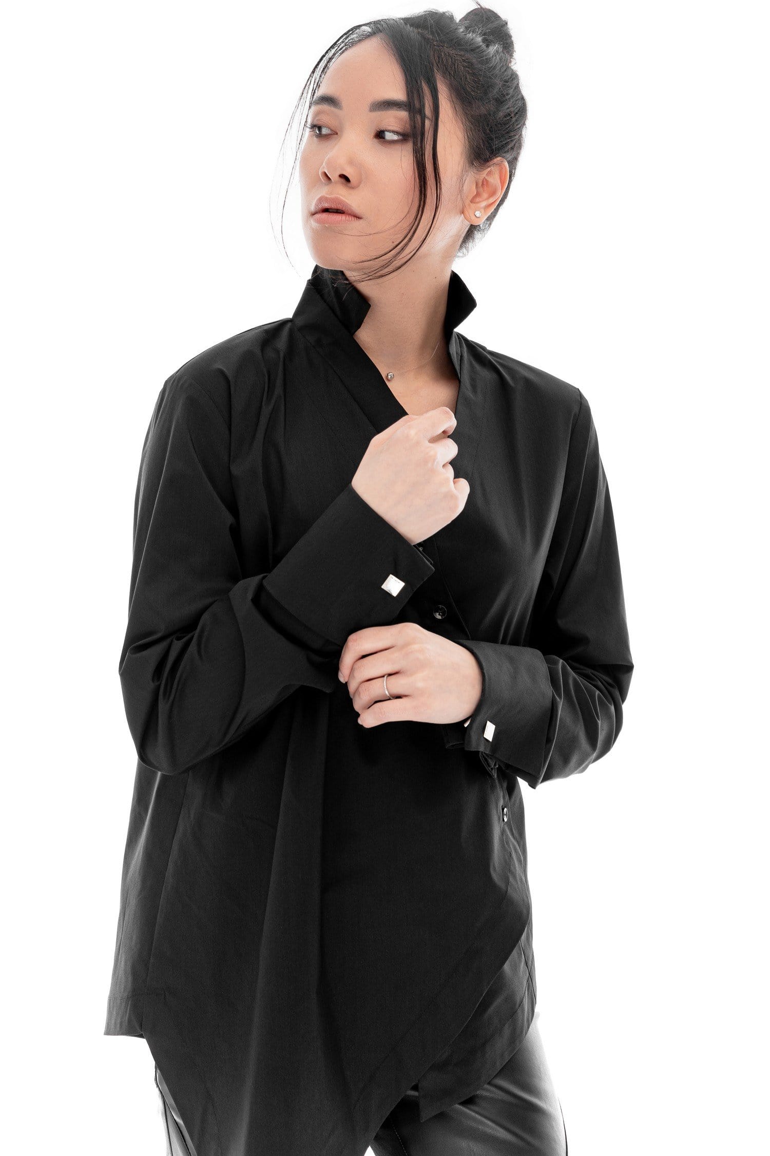 Eteru is one of the genuinely versatile pieces - it can be worn buttoned up as a classic shirt, tucked or untucked, or left open over an under top and pants - it is a compliment magnet however you style it. Leave cuffs all-open for a dramatic touch.