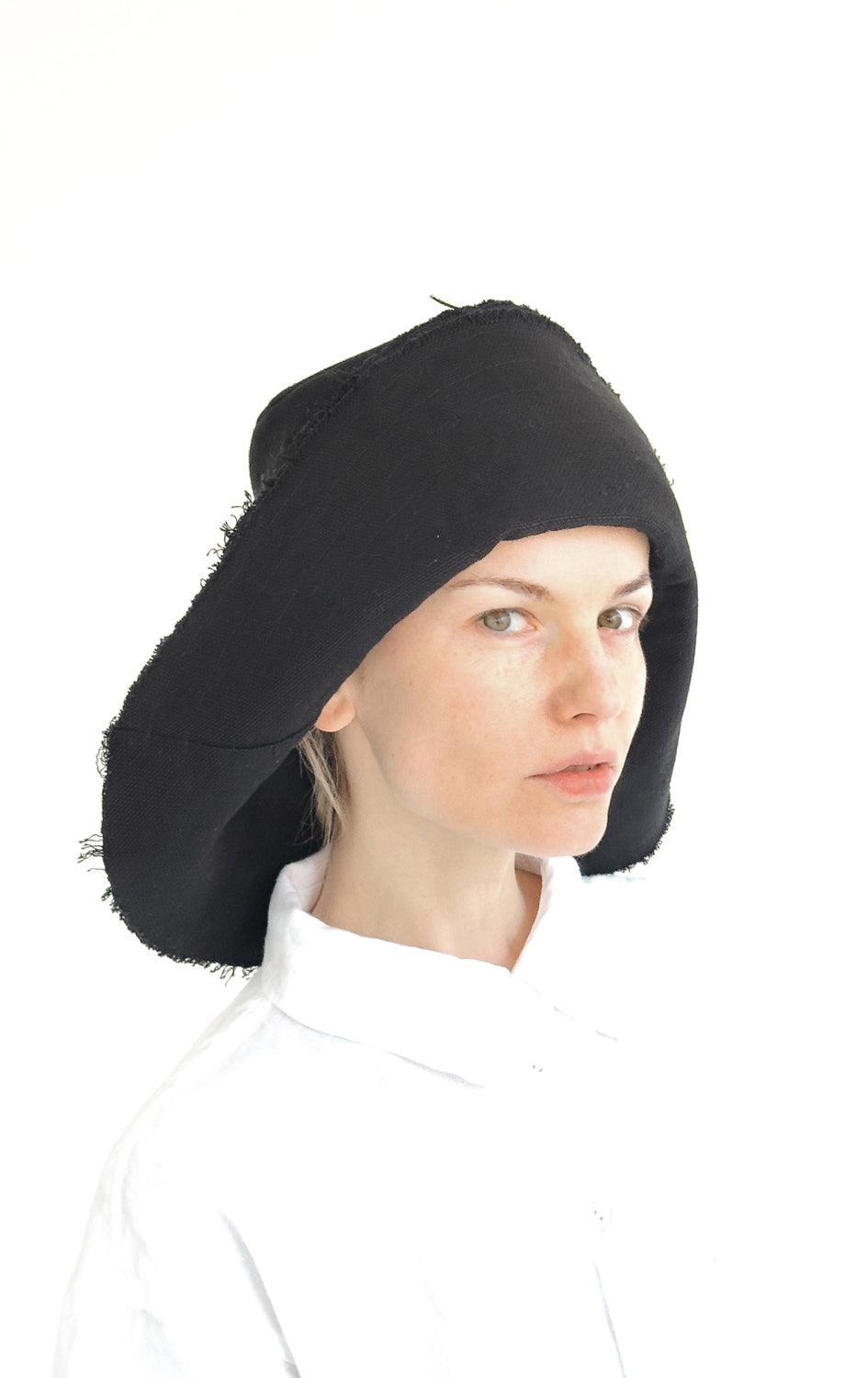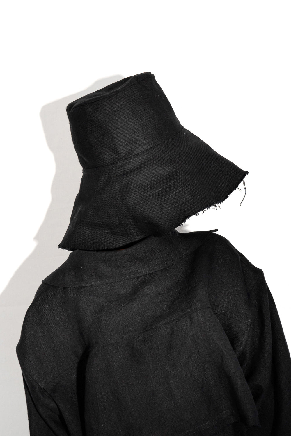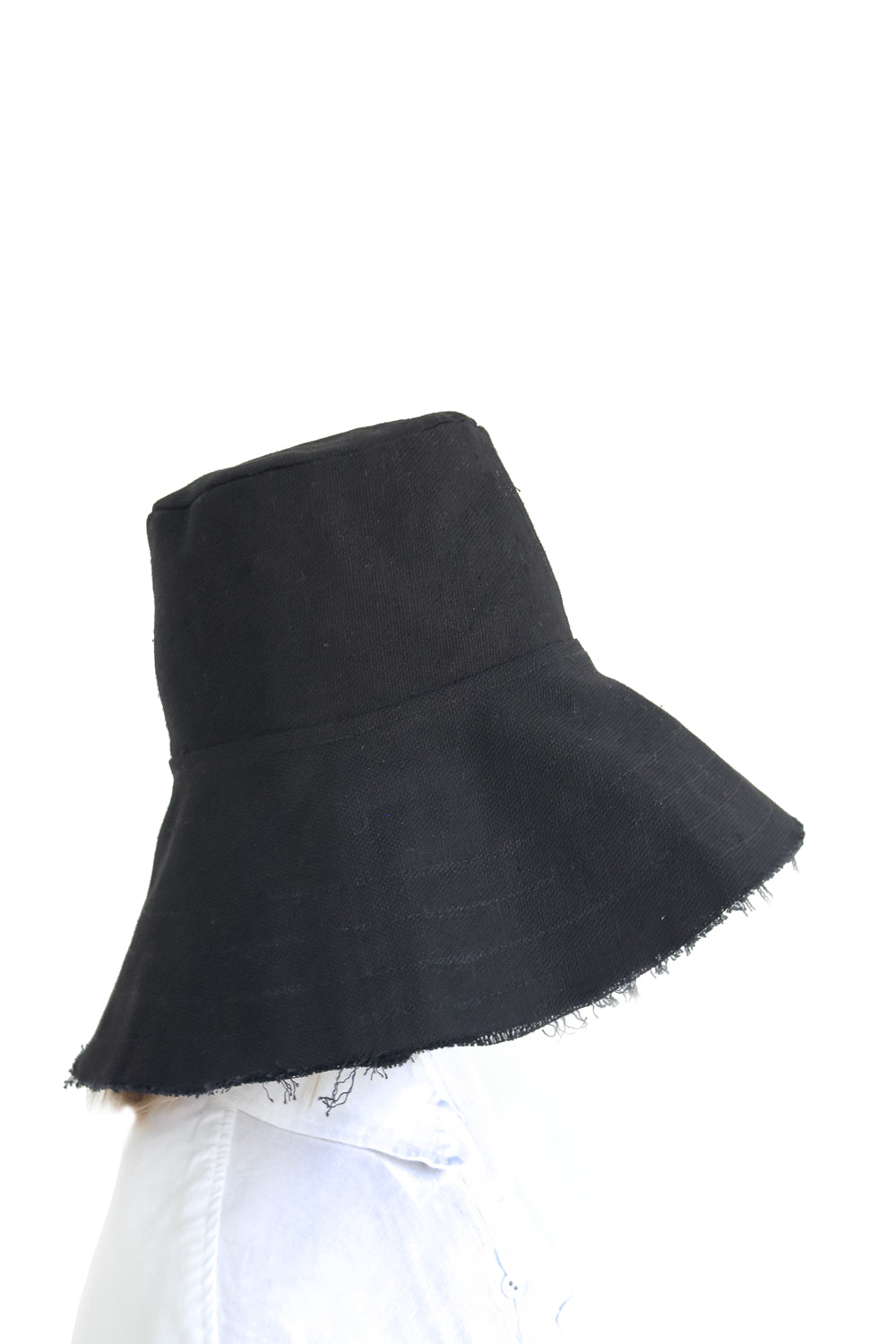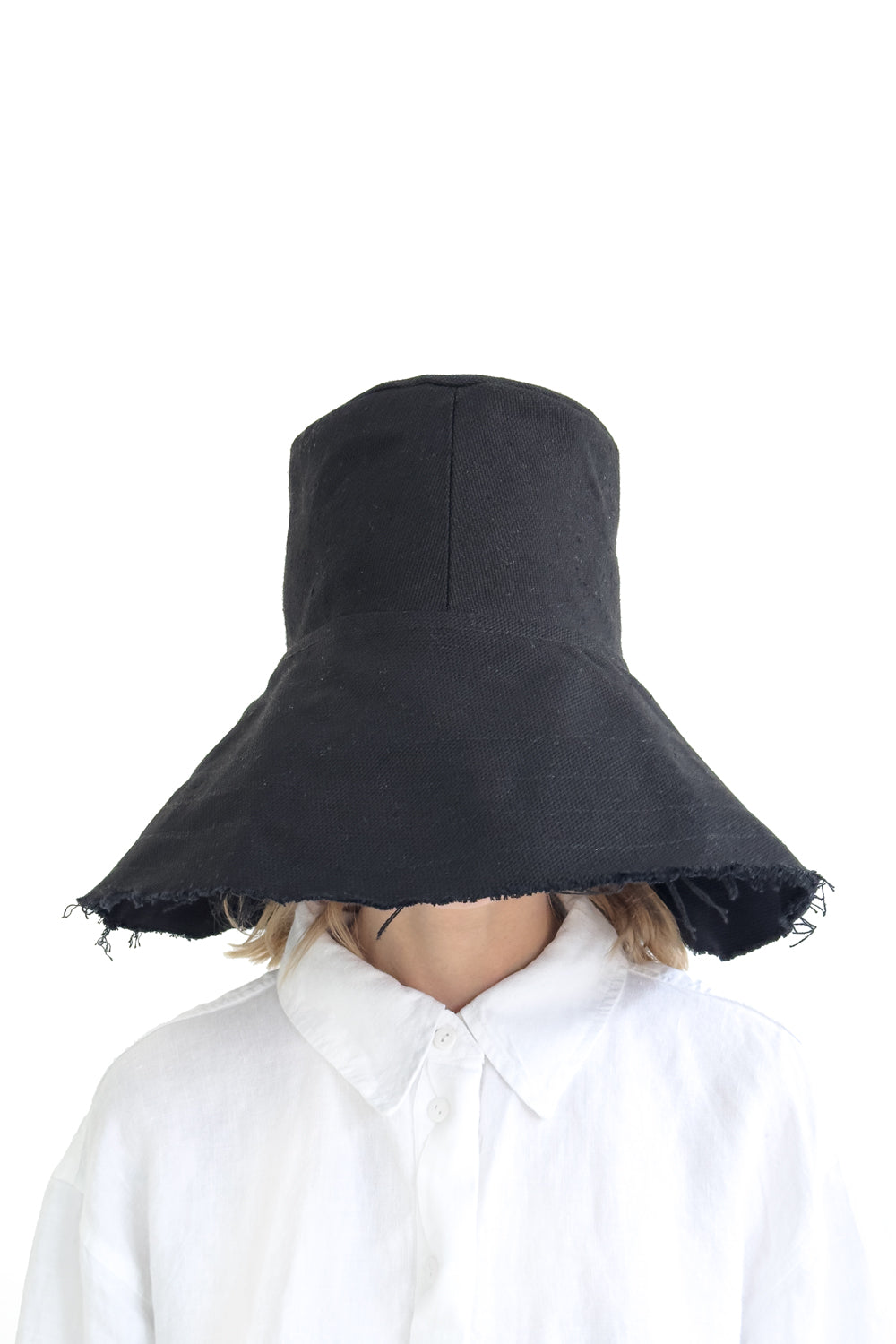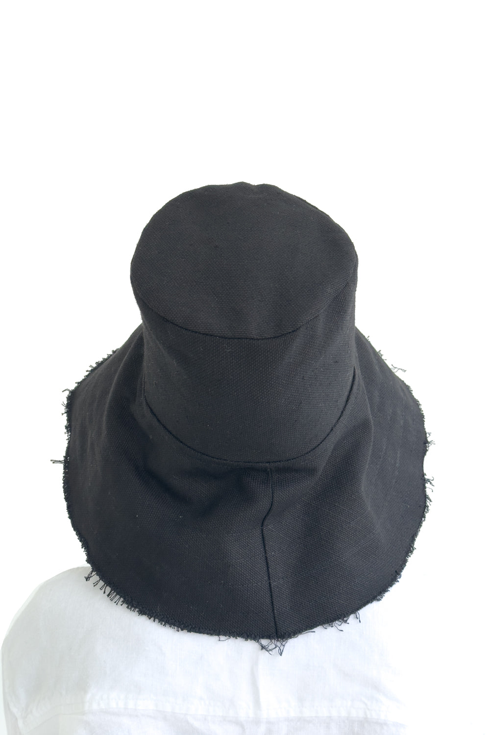 This linen hat features a foldable oversized brim that drops slightly to cover the face and neck.