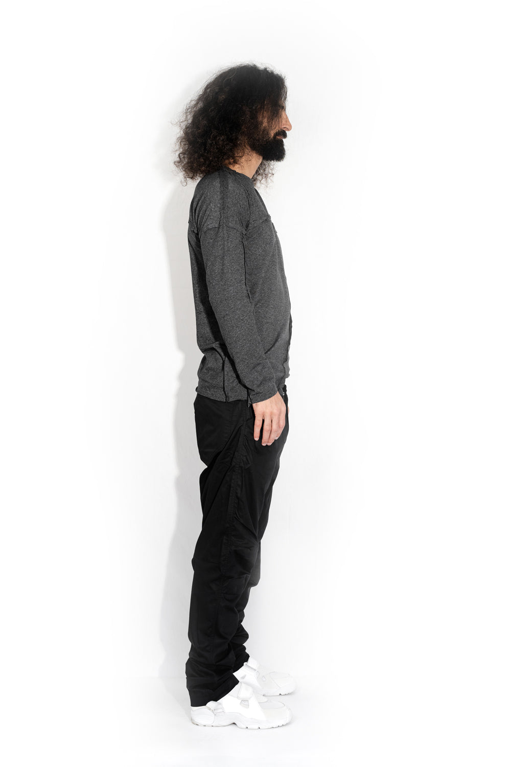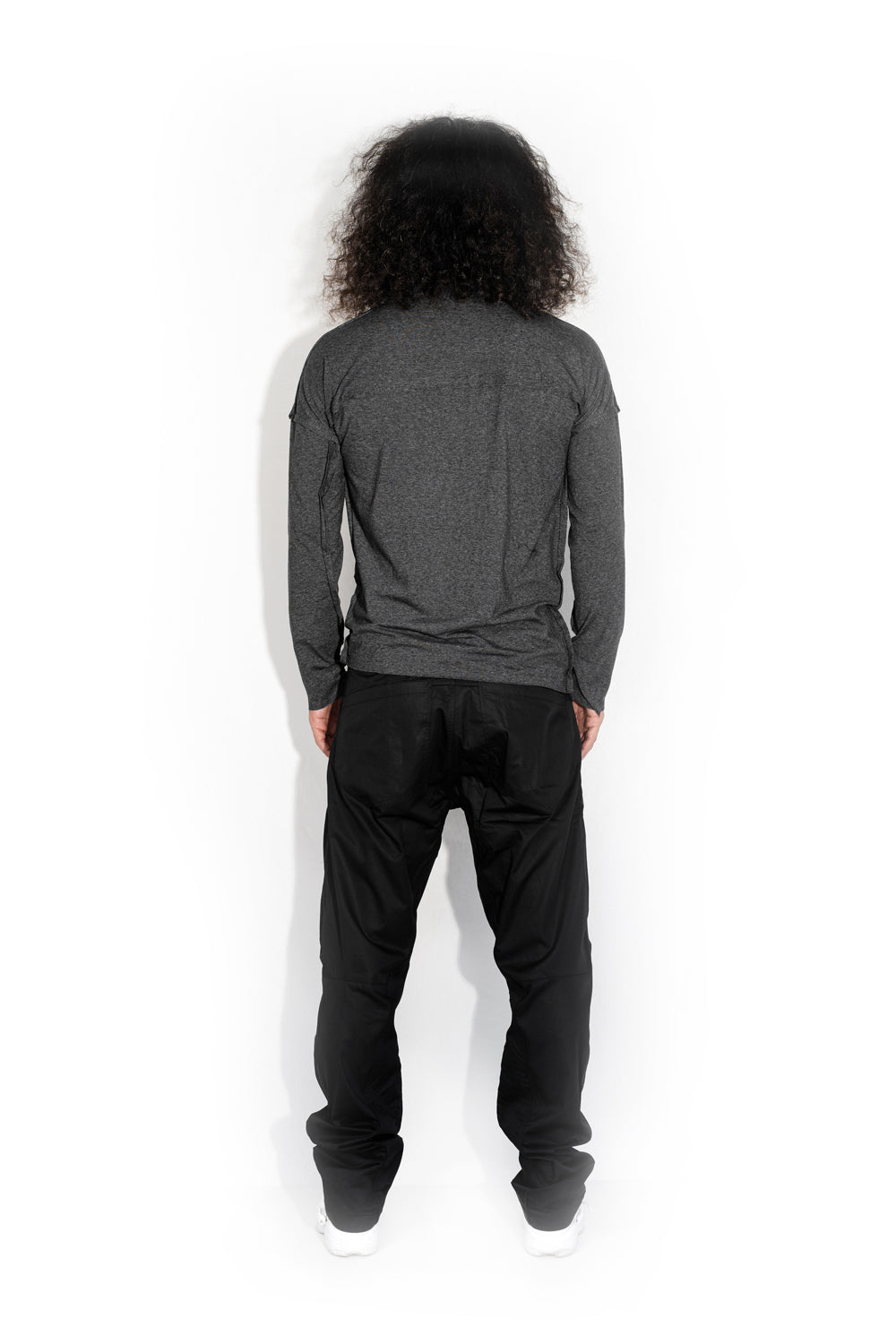 The running of time has accelerated so fast that the future has begun to penetrate into the present without waiting for its time. You can touch it and even wear it. This deconstructed asymmetrical shirt is a guest from the future that looks great on those whose eyes are on the horizon.