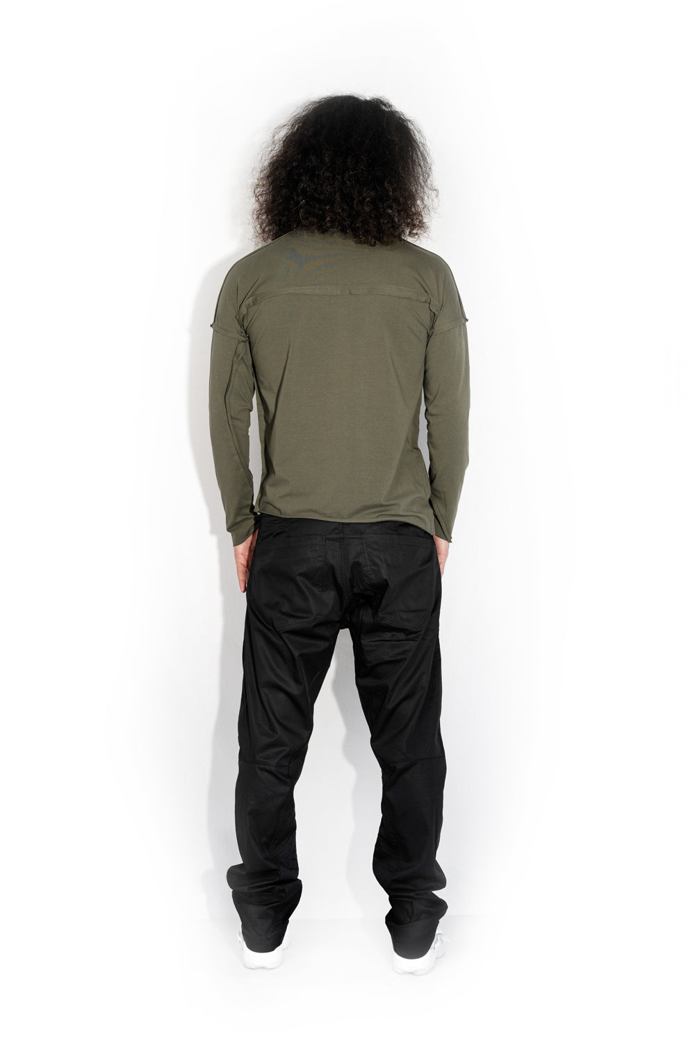 This deconstructed cotton jersey reglan looks great against crazy proportions of modern architecture and in the conditions of mad rhythm of city life. It seems as if it was disintegrated and gathered again with irreversible changes that reflect the essence of time.