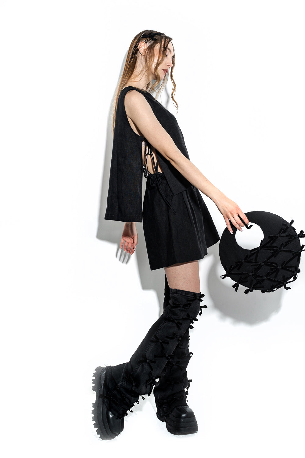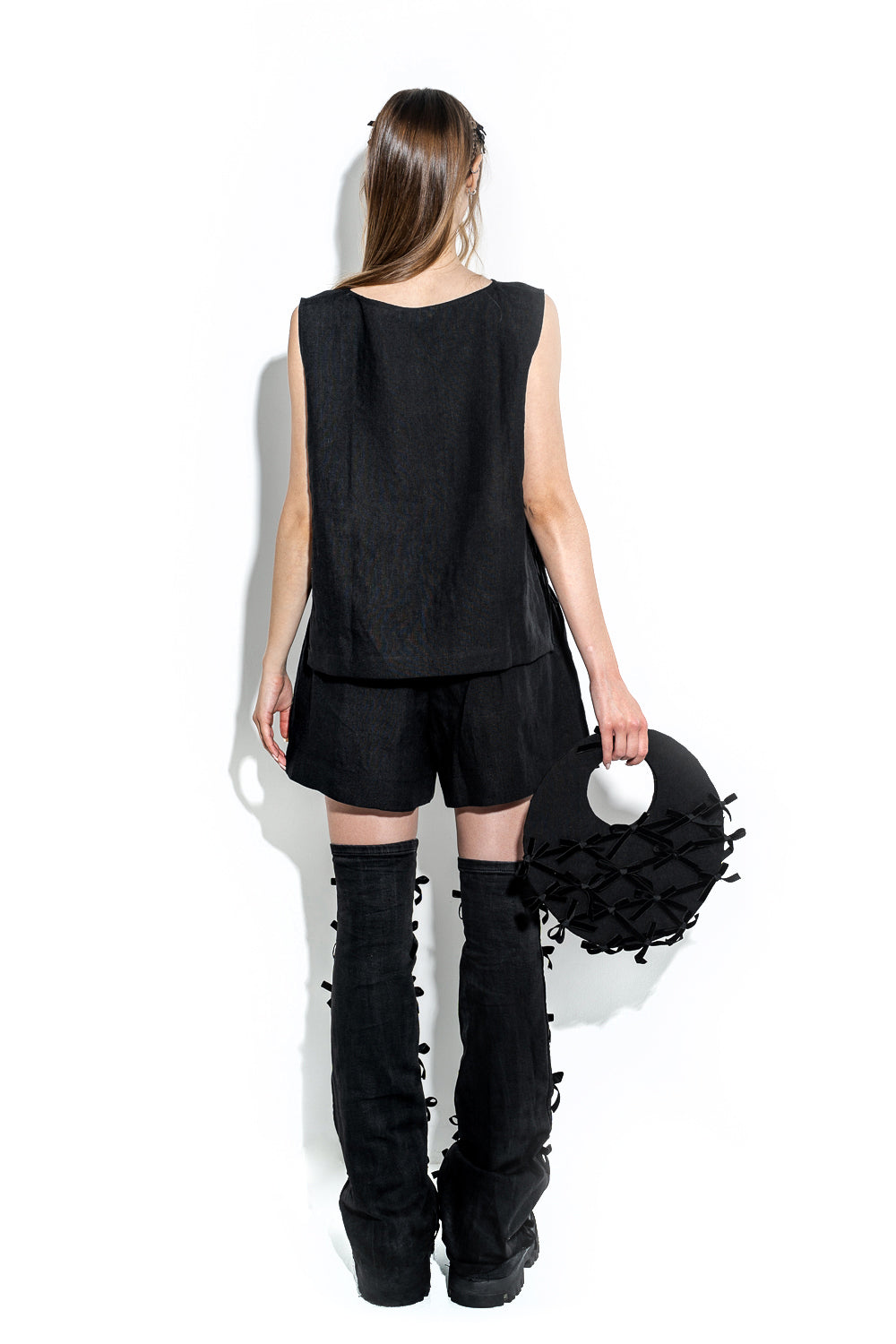 Relaxed boxy top features a plunging neckline and adjustable side ties for a personalized fit. Its hem is shorter in the front and longer in the back.