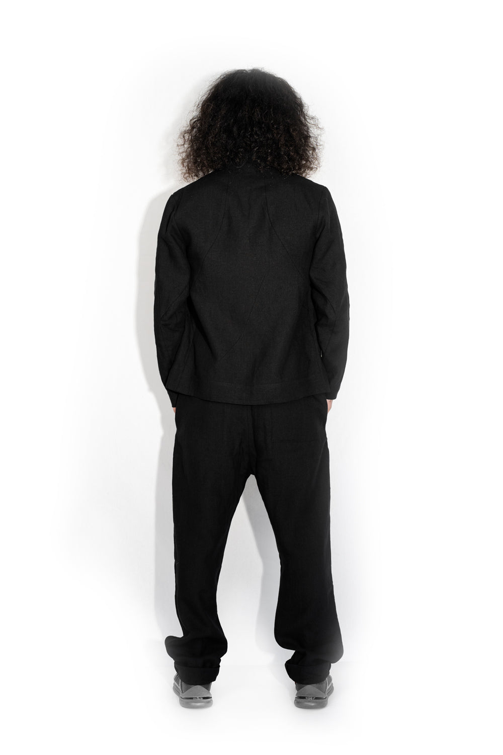 Casual, slim linen jacket with a beautifully designed collar that enhances the silhouette and trapezius muscles.