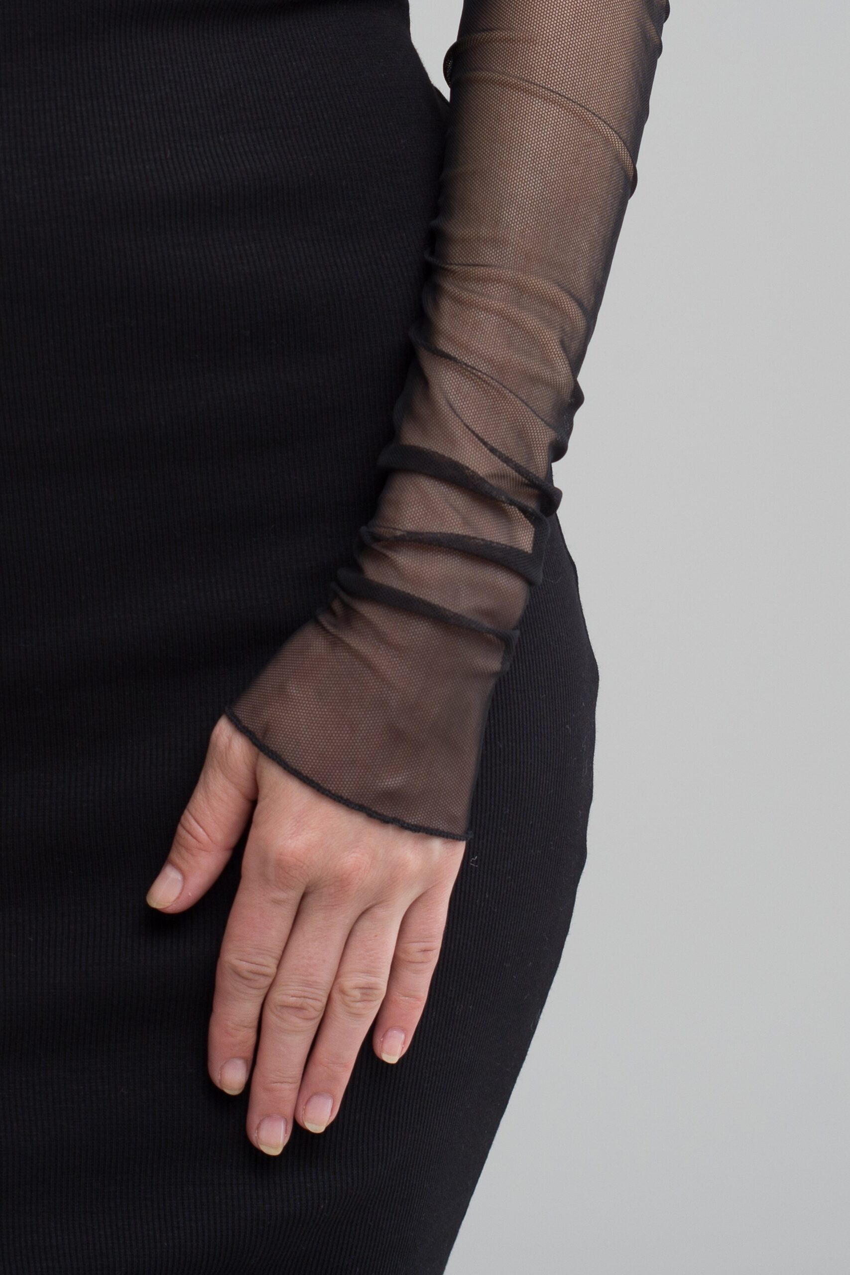 Elevate your fashion game by making distinct accessory choices. These gloves offer a sleek and clear option for those wanting to refresh their look with trendy and stylish armwear. With ample room for experimental creativity, these long fingerless gloves are incredibly versatile and suitable for more casual occasions. The fine mesh structure of the flexible, net-like fabric allows these arm sleeves to seamlessly complement your fashionable layering intentions. Easy to slip on and a swift outfit changer, you'll find yourself reaching for these lightweight black mesh gloves whenever you want to add a contrasting touch to your well-put-together outfits.