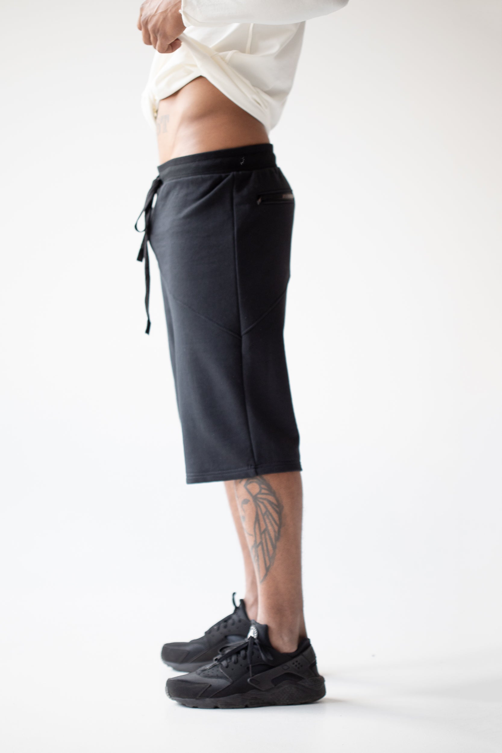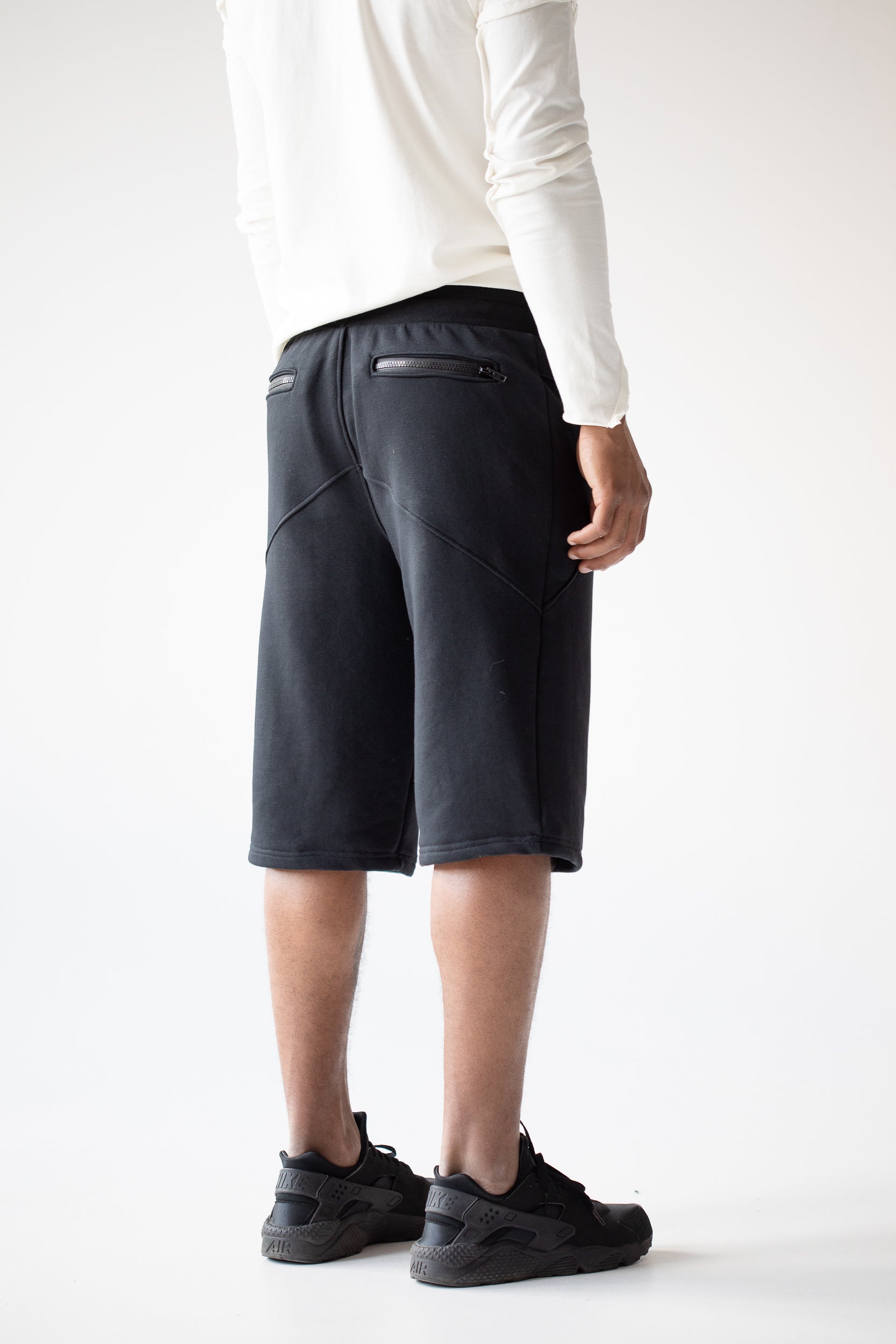 Men black summer shorts with zipped pockets