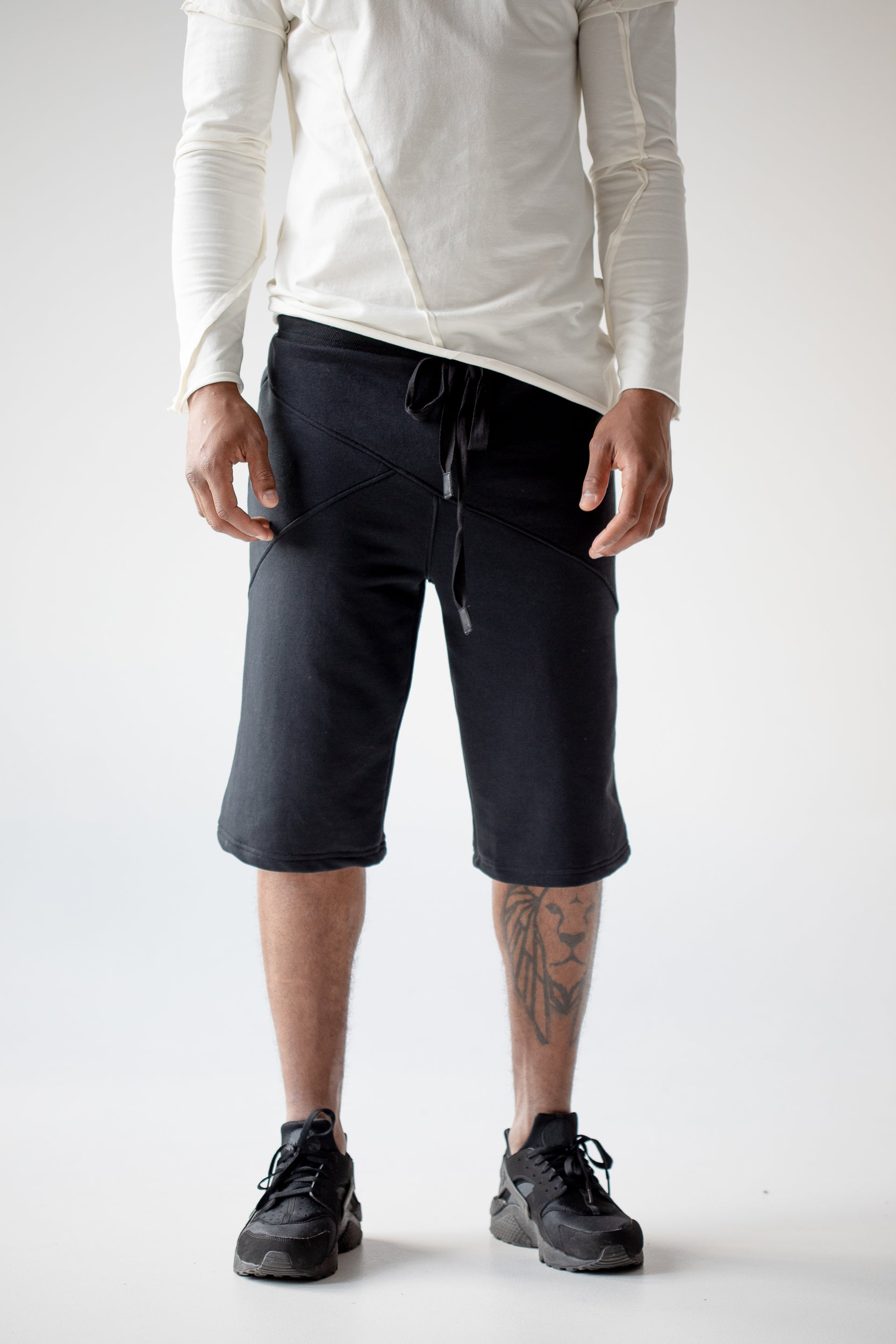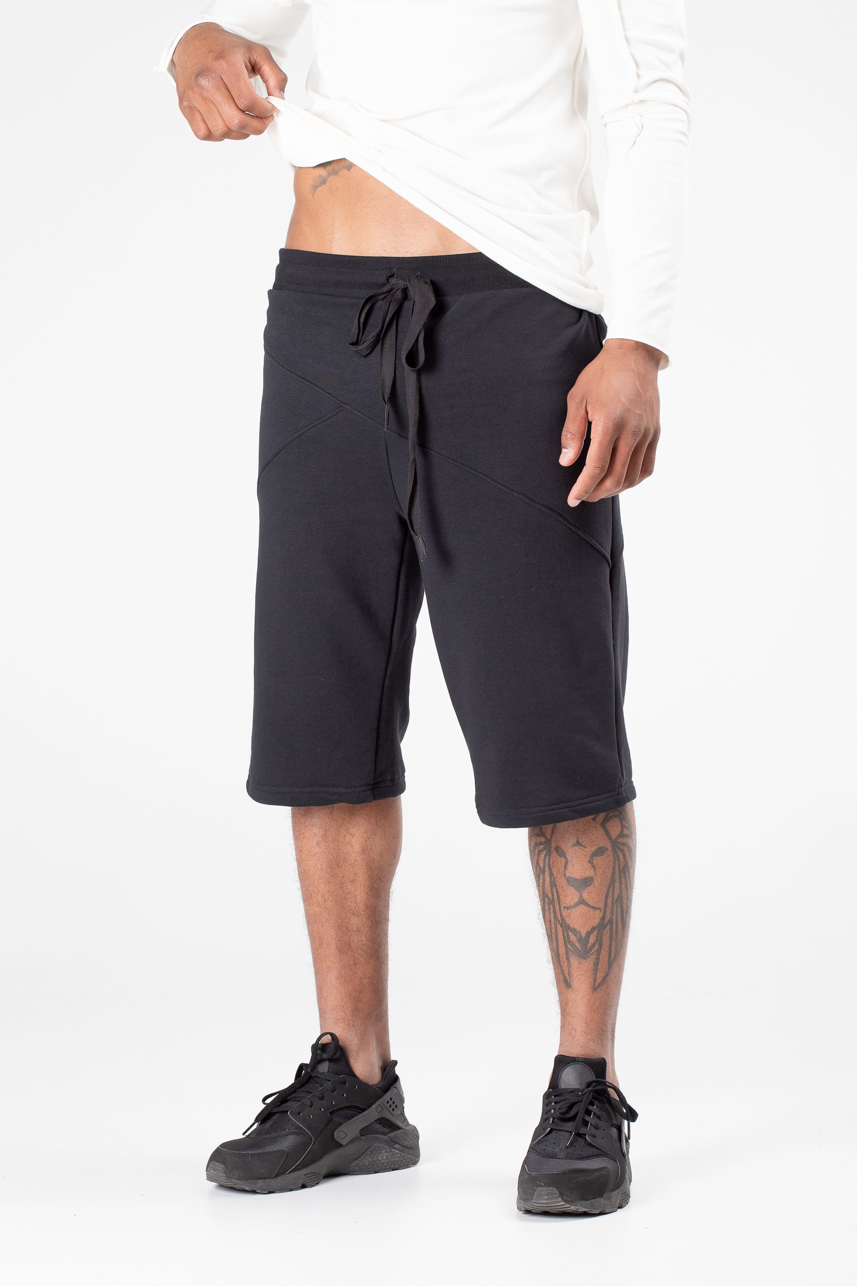 The men black summer shorts with zipped pockets - it's an excellent choice for those who engage in sports and lovers of an active lifestyle. These models of men's running shorts stand out with two practical pockets on the back. The steampunk shorts suit anyone, especially dynamic athletes and will be a great gift for your boyfriend. These urban shorts are cyberpunk goth style clothing and these models of men's activewear provide optimal freedom of movement. You may wear black shorts every day in combination with T-shirts, sports shoes or sneakers.