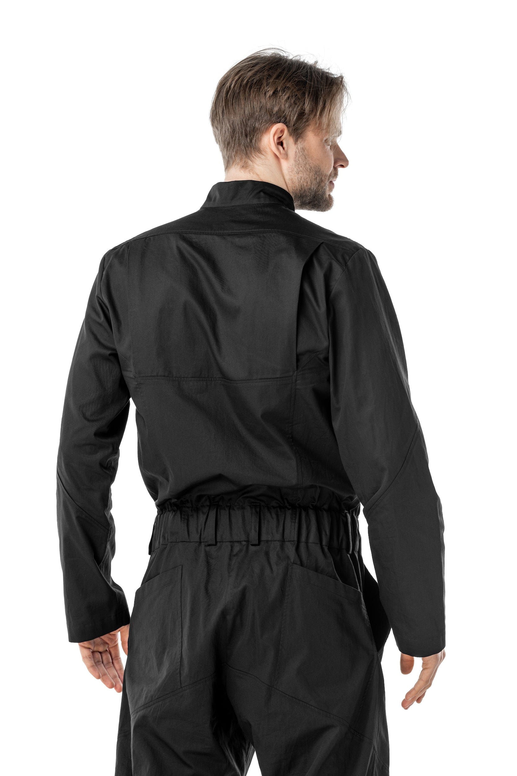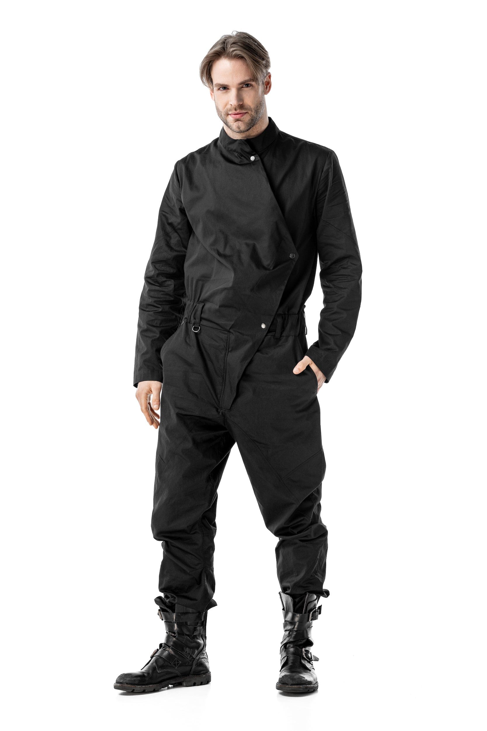 Abundant in decorative seams, this jumpsuit is crafted from cotton and boasts a stand collar and pleats on the back to support efforts in constructing a garment as equally comfortable as it is badass.