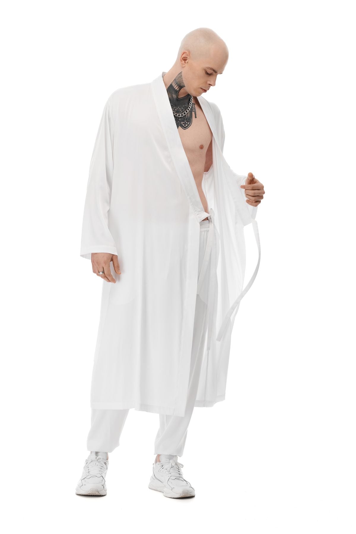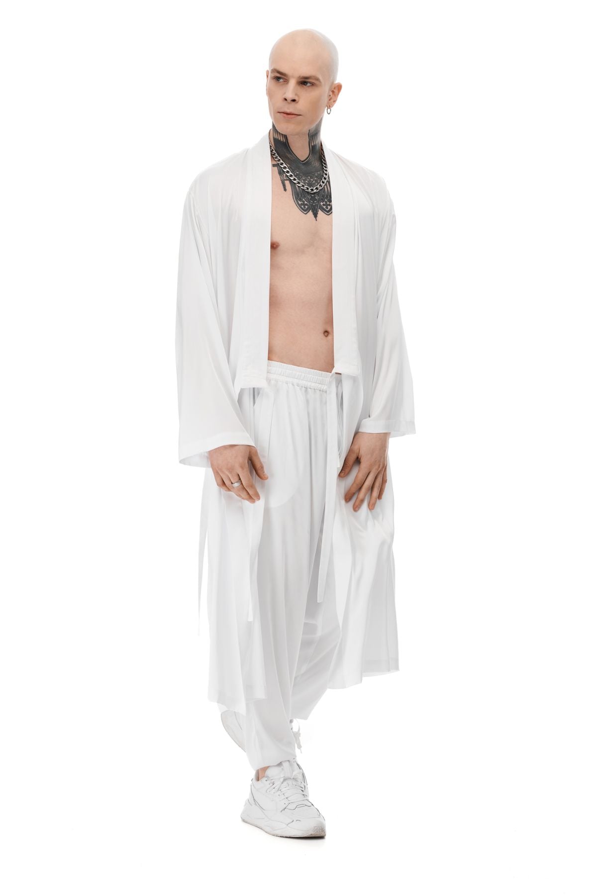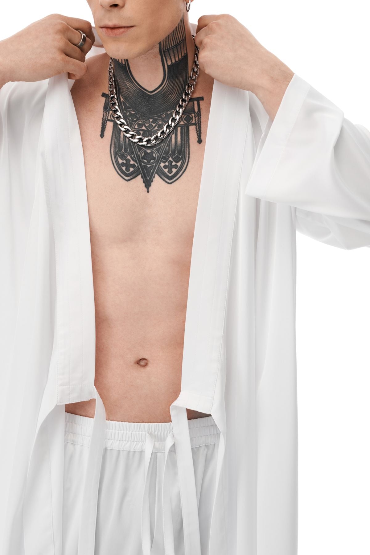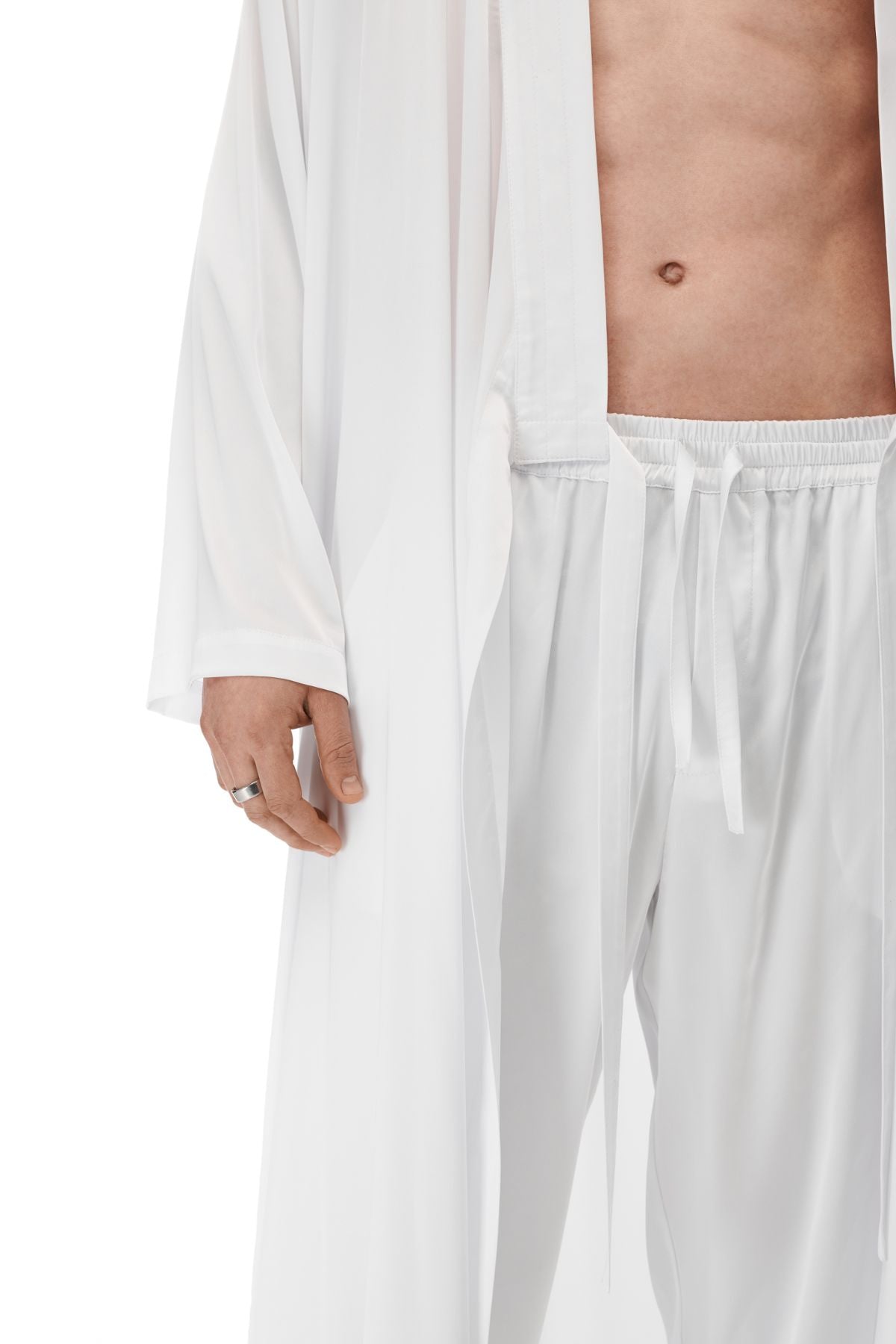 This chic kimono is the ultimate loungewear for the urbanite. Crafted from a luxurious silk-like fabric, it features a straight, elongated silhouette with loose sleeves and a double-stitched placket. With lacing on both sides, you can customize the fit. Wear it at home or out to bring a villa vibe anywhere life gets you.