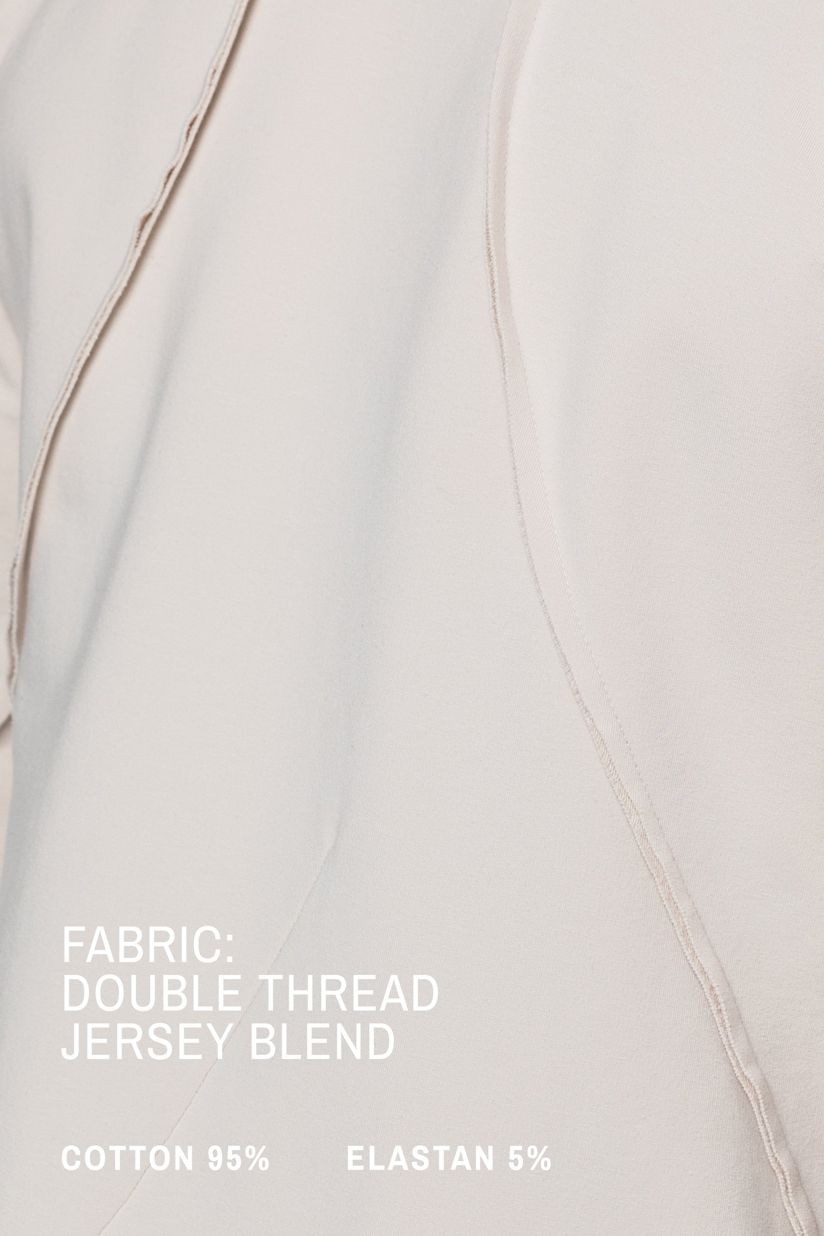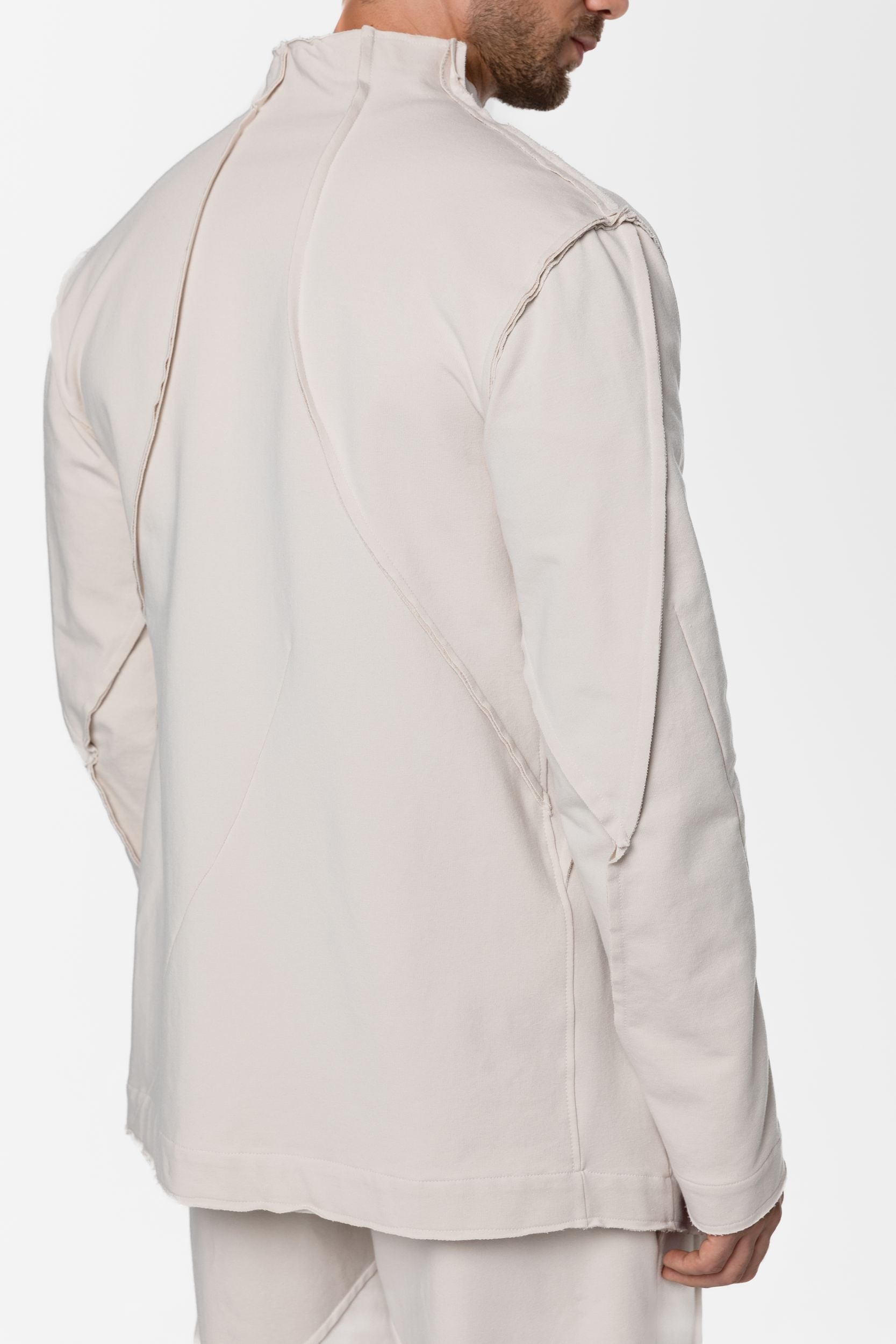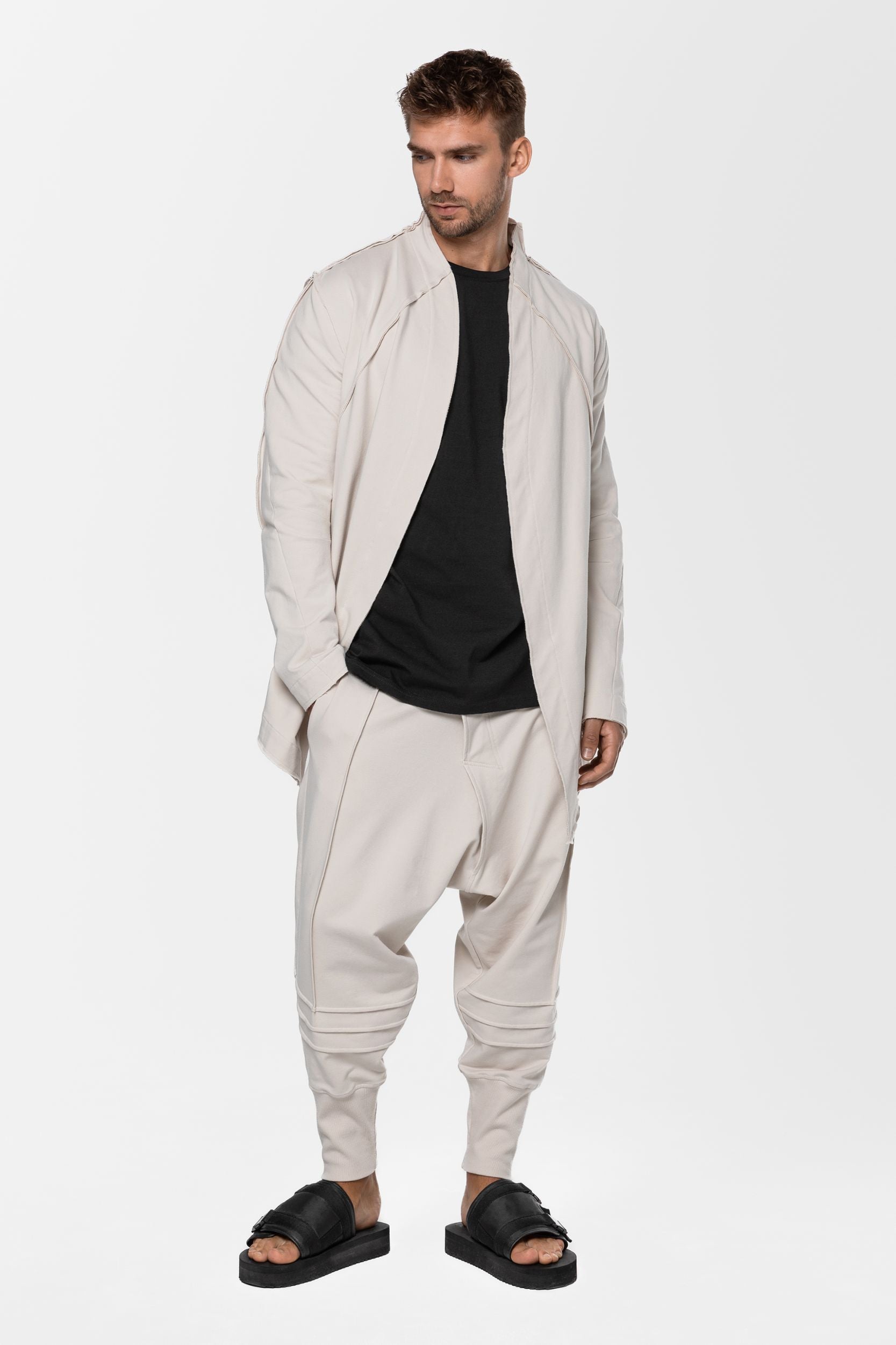 Introducing the new Reberu jersey jacket in a new dune beige shade — a fresh approach to our already classic linen jacket. This men's blazer blends a tailored cut with a relaxed fabric, giving it a summer cardigan vibe. Its intricate texture adds a touch of creativity, making it suitable as a festival coat for men. With slit pockets and a raw edge hem, this jacket for men is the ideal statement piece for a stylish yet casual outfit.