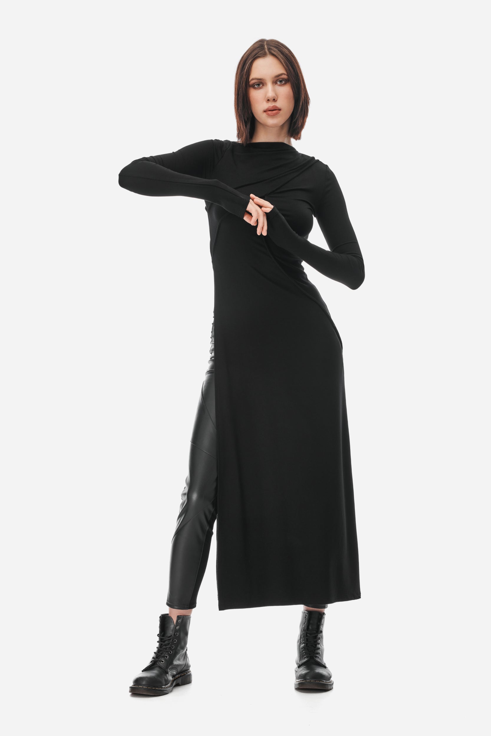 Introducing our stylish Tunic Dress with a trendy side slit! The intricate seams create a distinctive look that converges at the shoulder, while the subtly shifted neckline makes the Tadami an attractive choice for your evening adventures. Features: Trendy Side Slit Decorative Seams Asymmetric Neckline The Tadami tunic dress combines style with freedom of movement, making it a versatile addition to your going-out wardrobe. We think you'll love it!