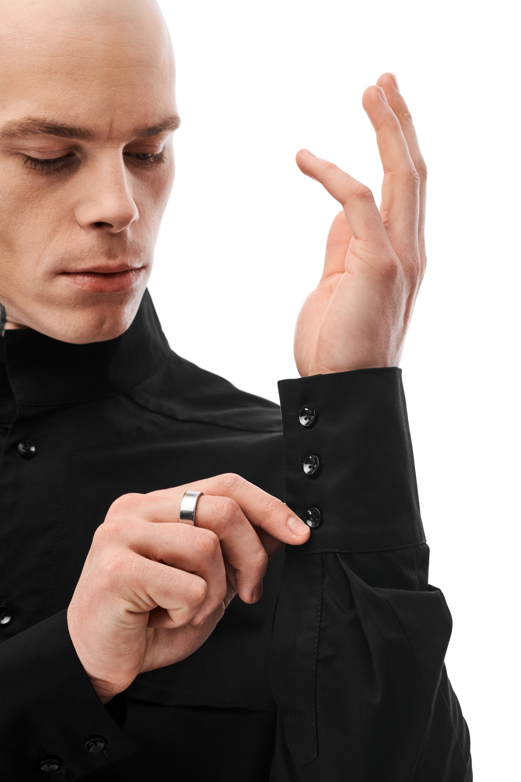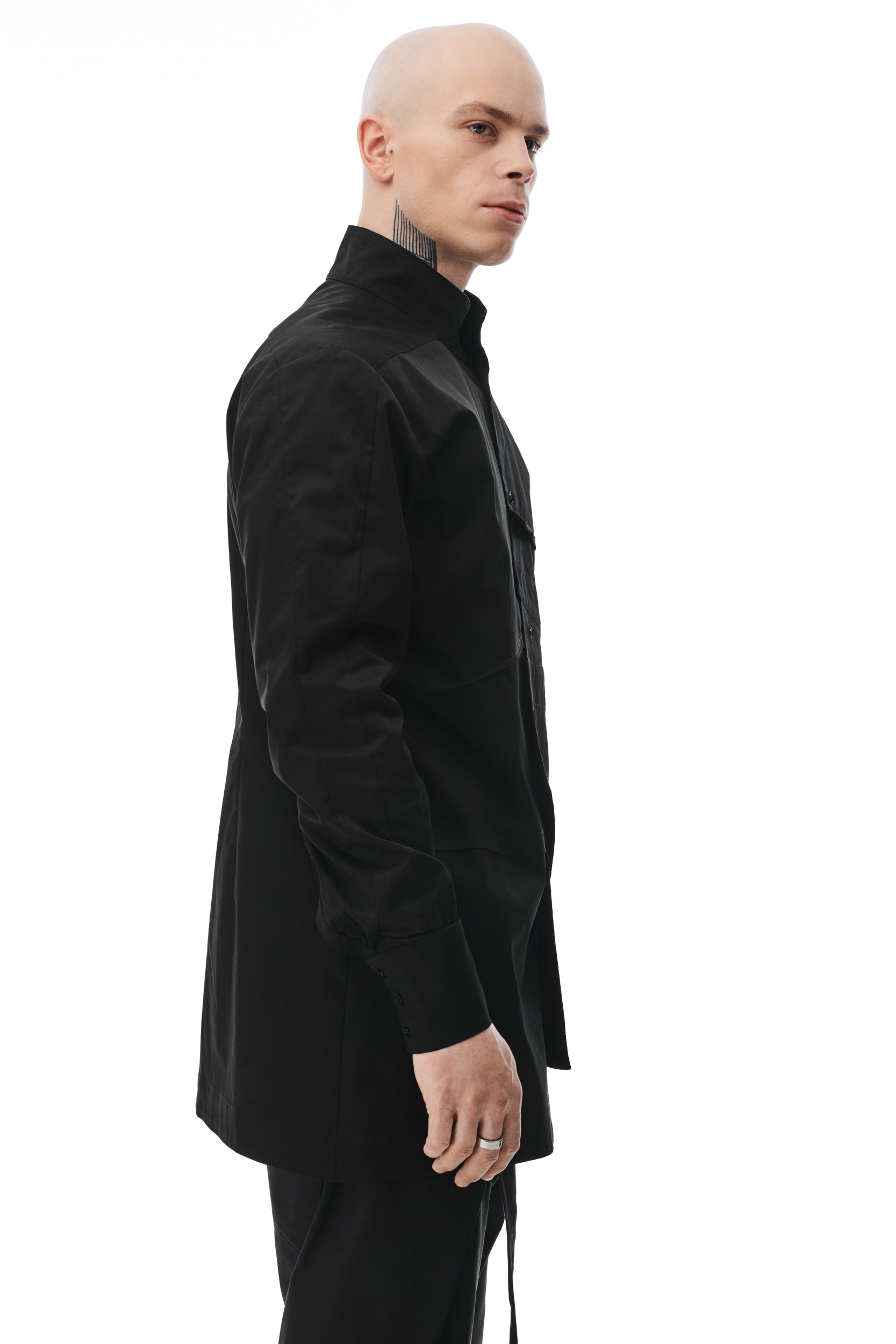 The Black Shirt pairs well with a variety of styles, offering a perfect blend of traditional nuances with an asymmetrical twist