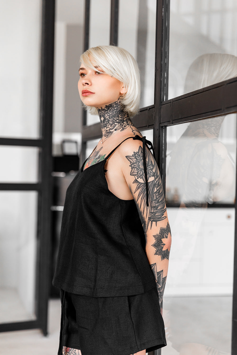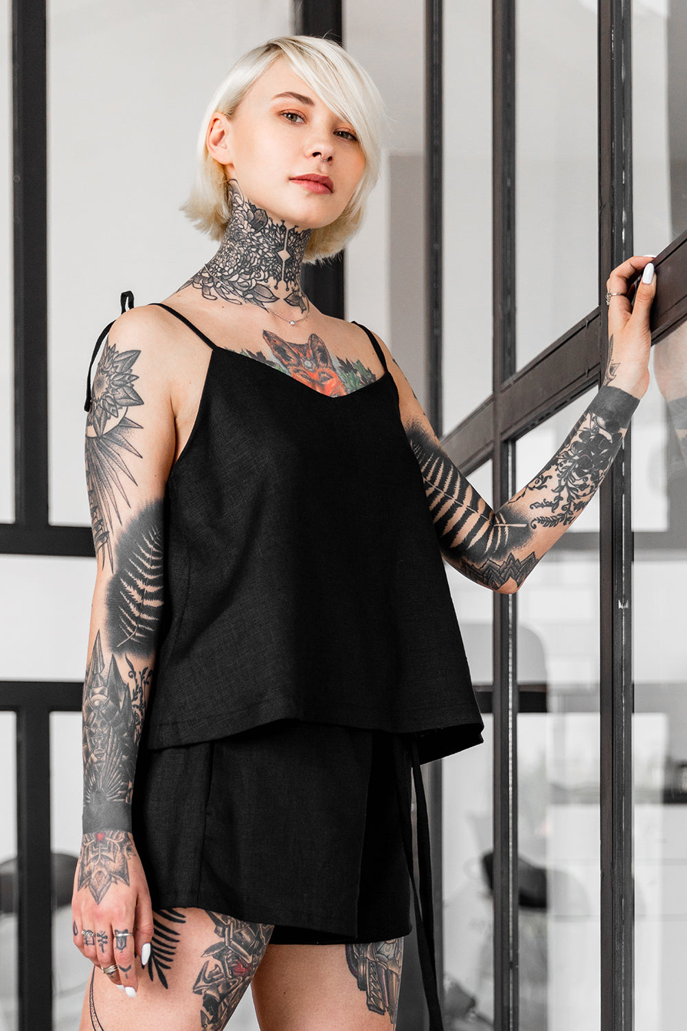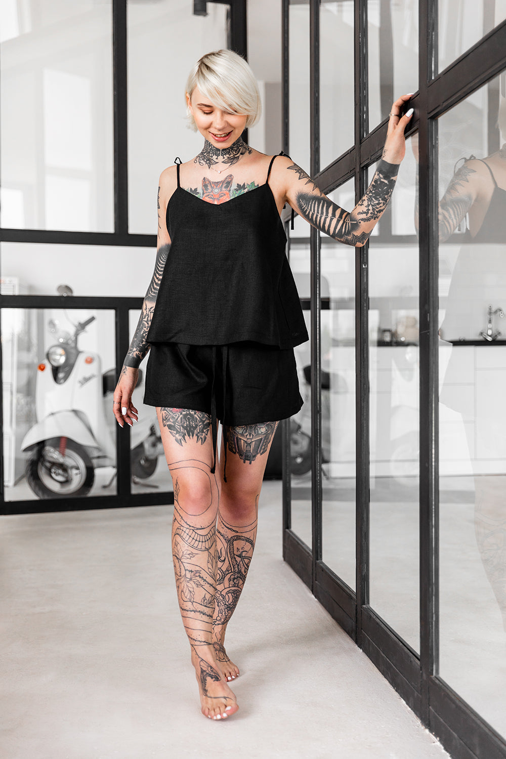 An excellent all-rounder for women when it comes to summer dressing, Haru camisole is assembled from airy linen, which makes it great for layering in the cooler weather or worn on its own when the temperature goes up. Designed to make you feel confident in your clothes when it's warm outside, this functional top is wonderfully constructed from natural material into a relaxed silhouette that gently widens at the bottom to enhance the carefree feel. The body of this exquisite lightweight fabric is held up by delicate shoulder straps for a tender touch and a great feel to sensitive skin. Displaying mild v-neck at the front and deep square back, you can adjust the stripes for the sufficient coverage to the chest area. Opt for a camisole top in white for a harmonious and elevated wearing experience.