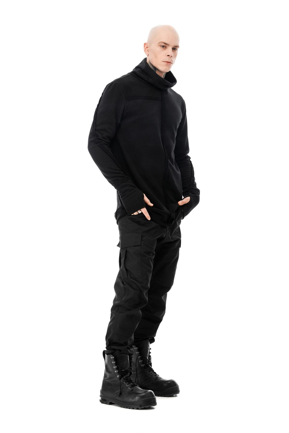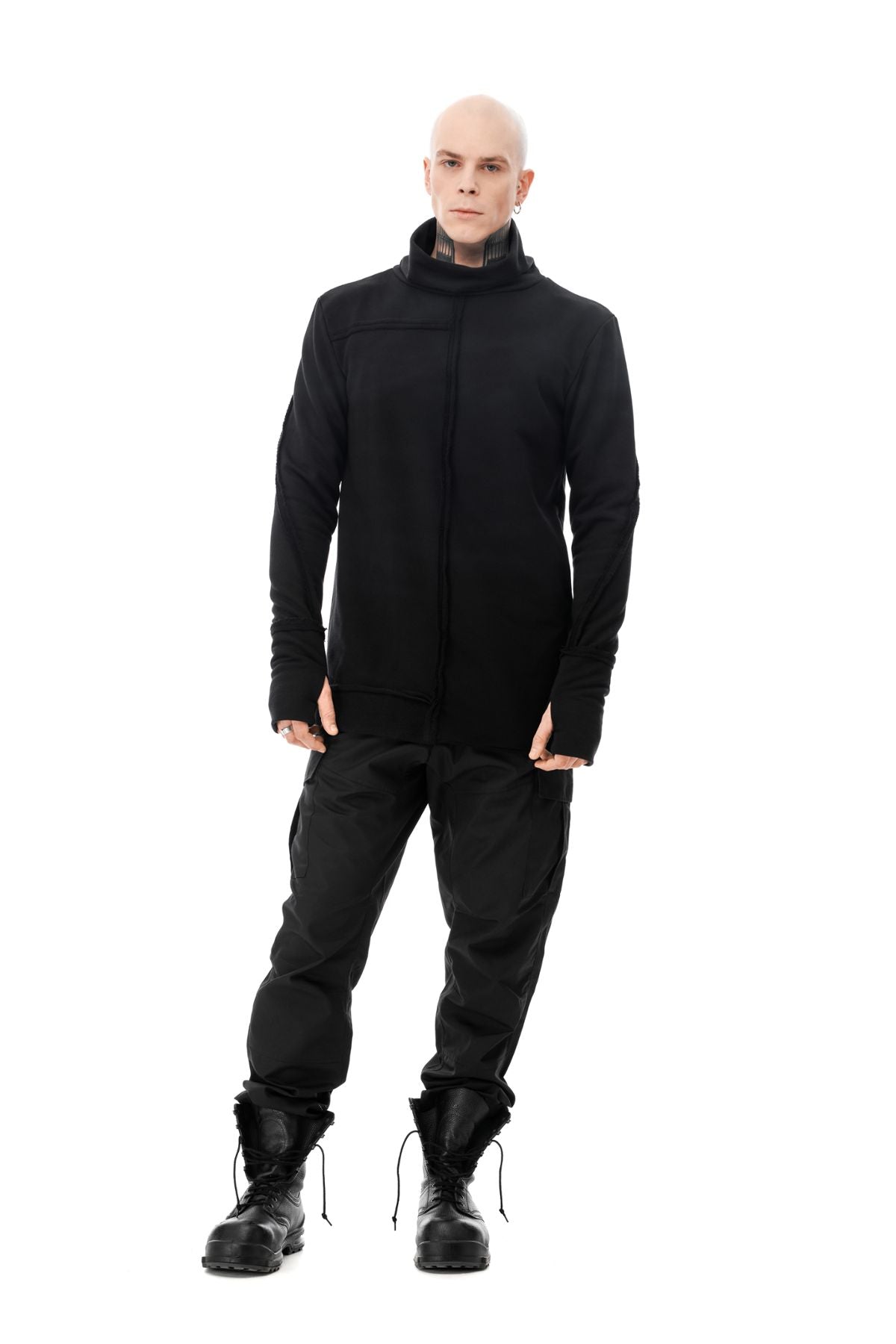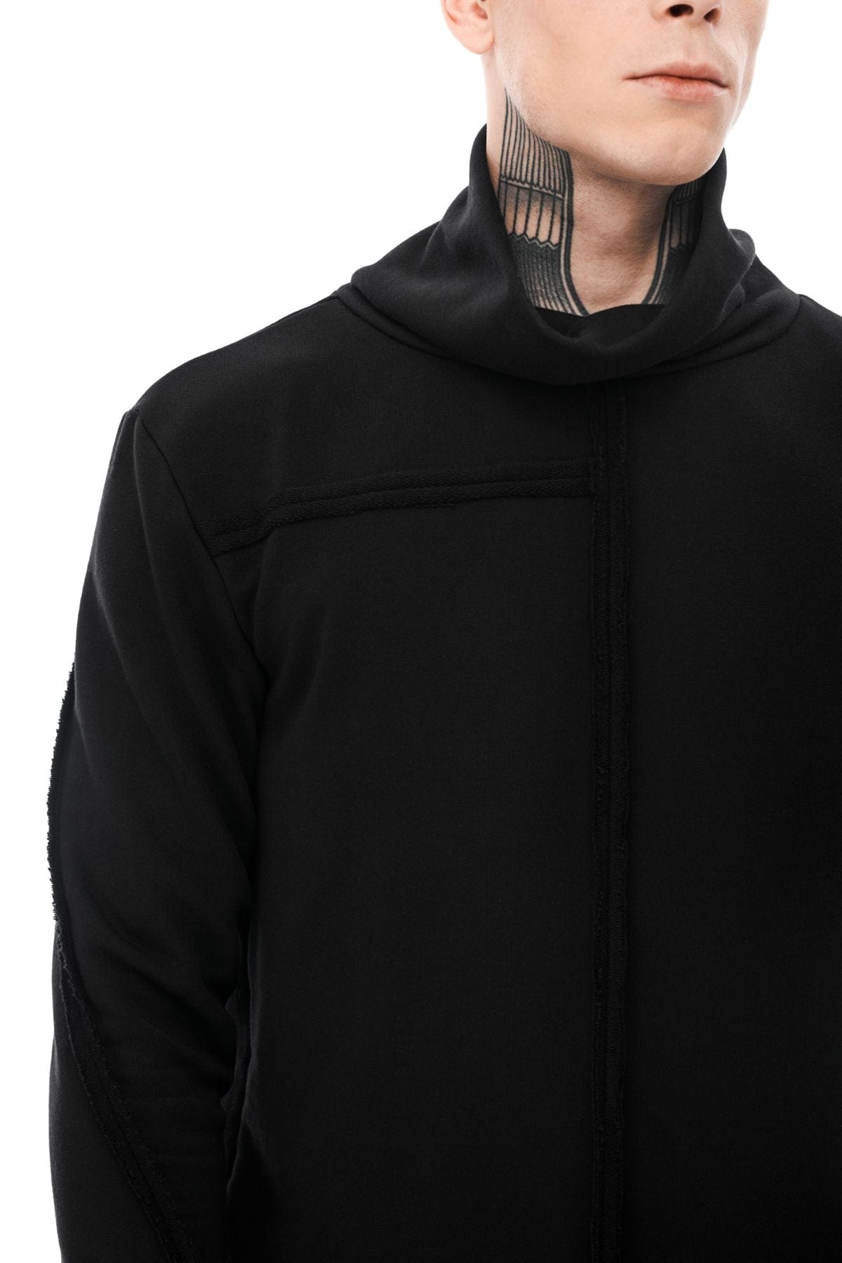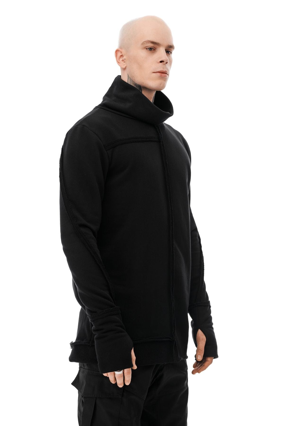 This men's turtleneck features an array of monochrome details, such as the high neck, textured fabric, and asymmetrical and symmetrical seams. With its varied front and back stitching, it is a work of art with a distinct aesthetic – interesting to look at and explore. This timeless piece has been designed to be a classic wardrobe essential that is far from boring.