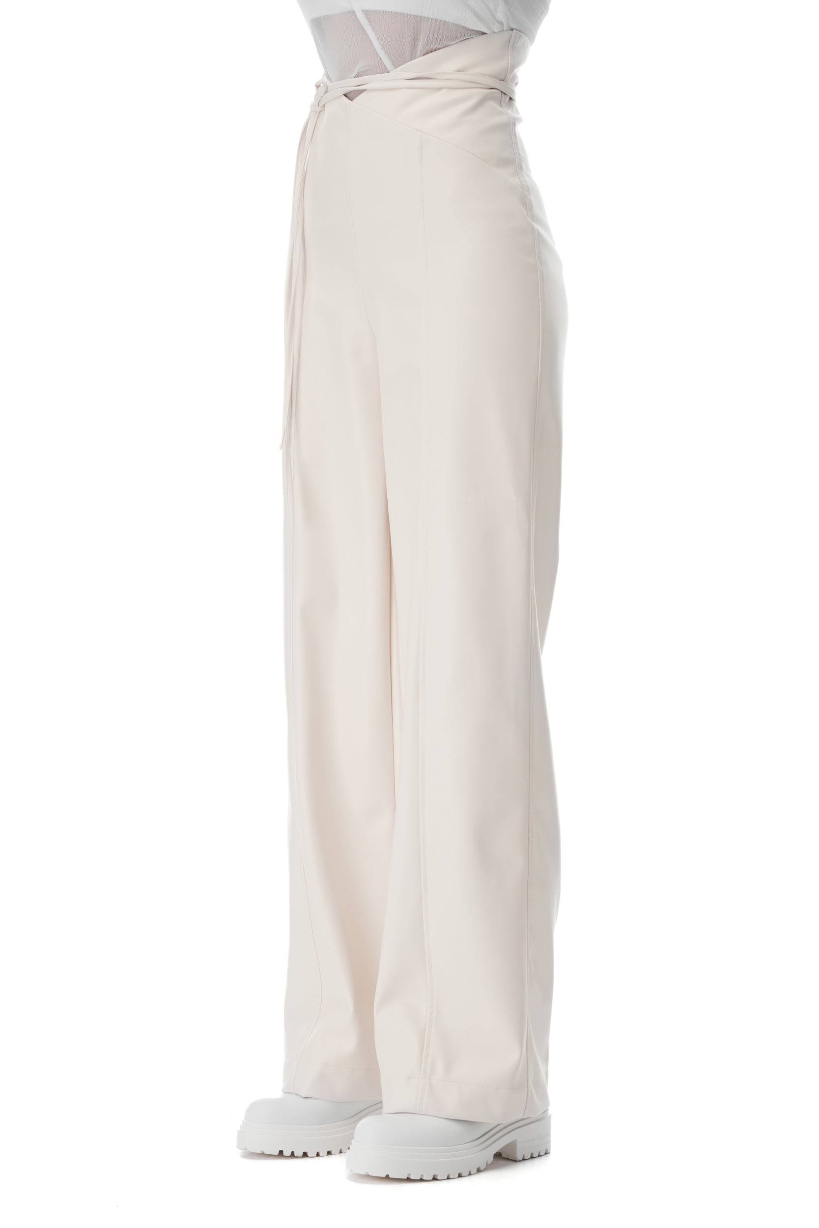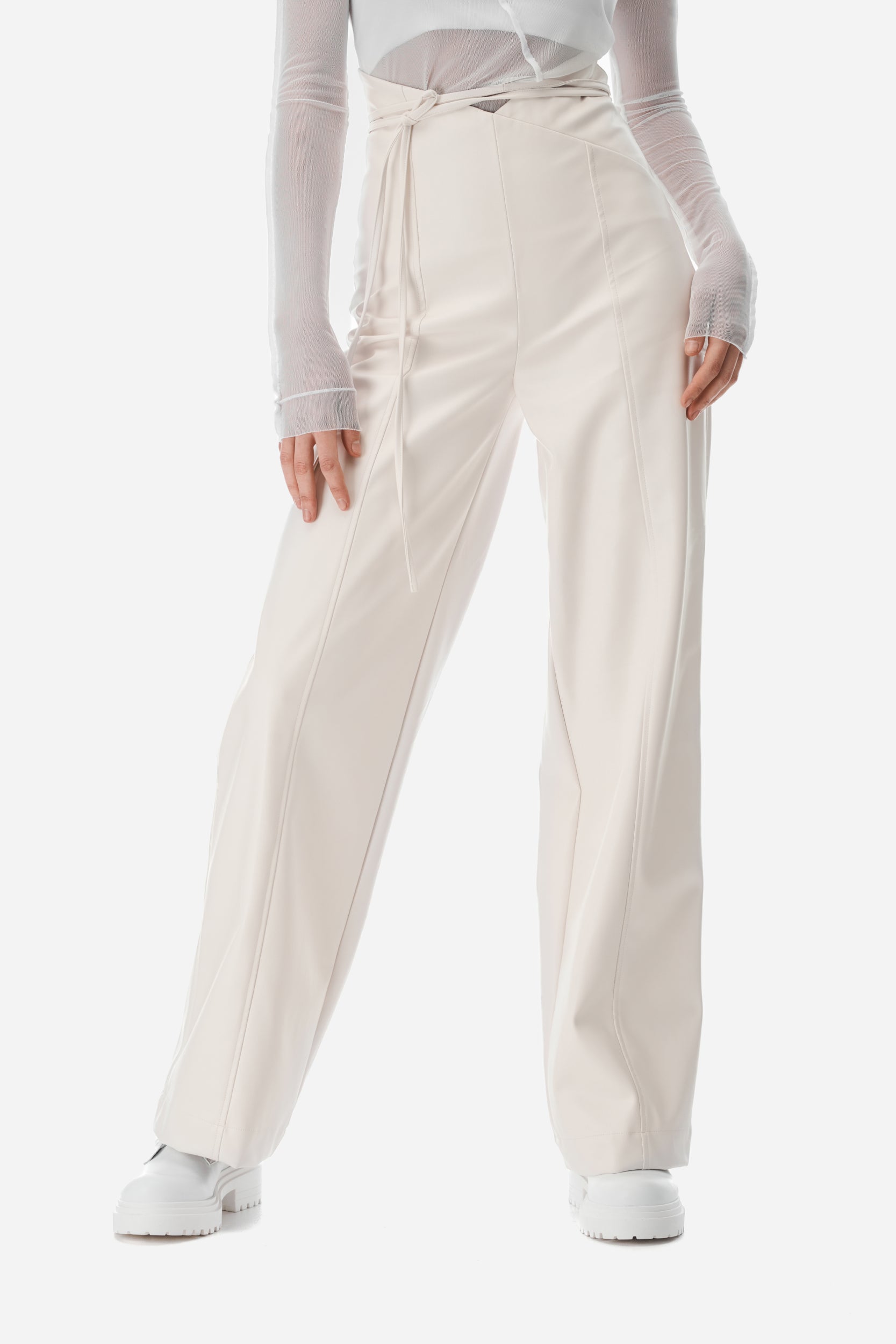 Made from faux leather, these pants have a straight fit. The high waistline gives a distinct look and the back features a corset-like design that subtly enhances its shape.