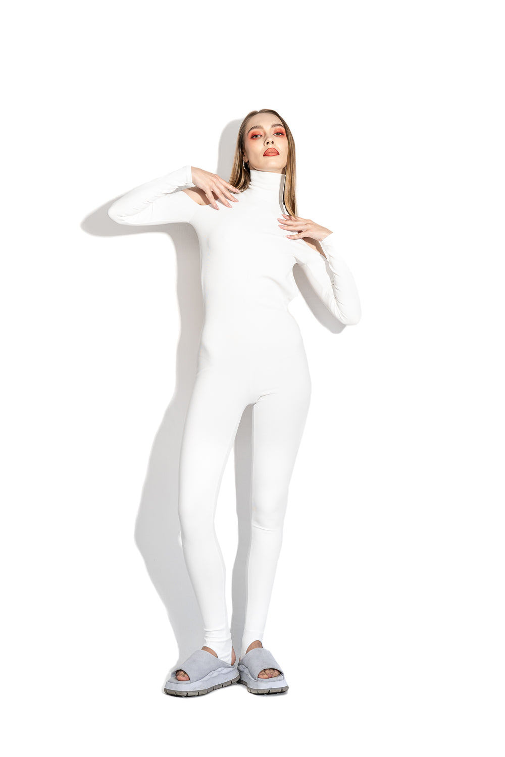 This bodysuit is designed with stretchy biflex viscose fabric that elegantly molds to your curves. It boasts chic shoulder cutouts and a daring open back. Complete the look with an oversized jacket, and take it off when you're ready to hit the dance floor.