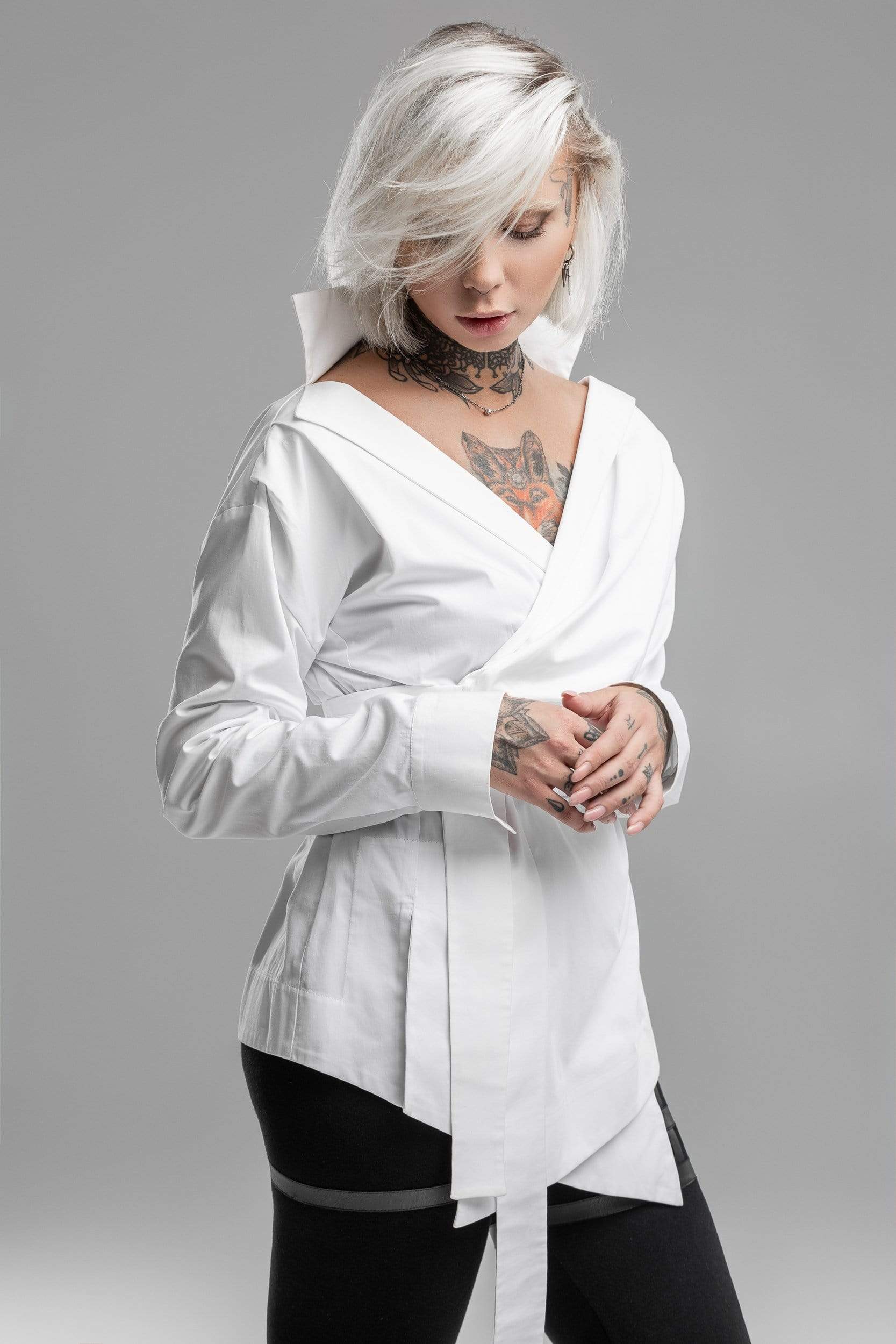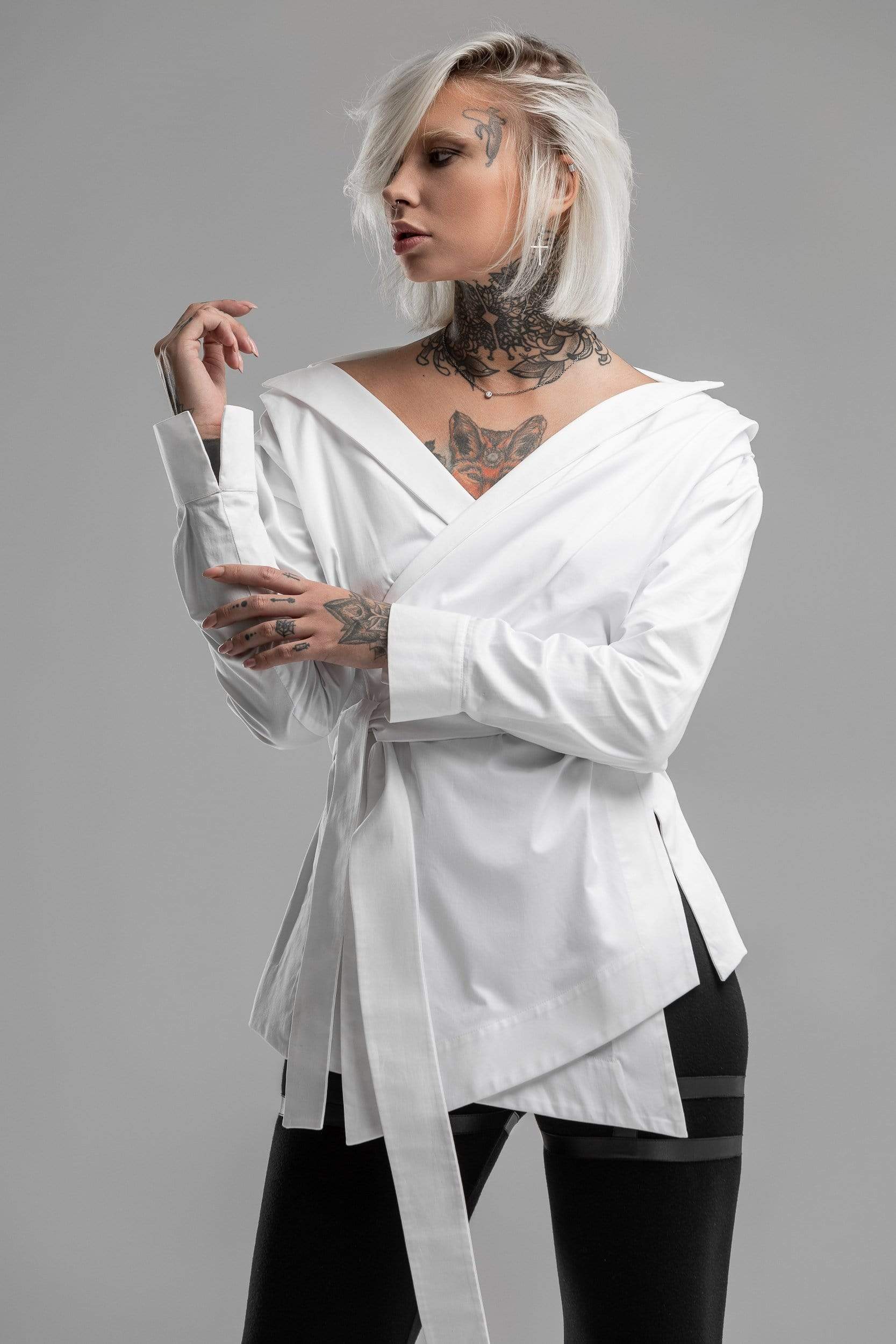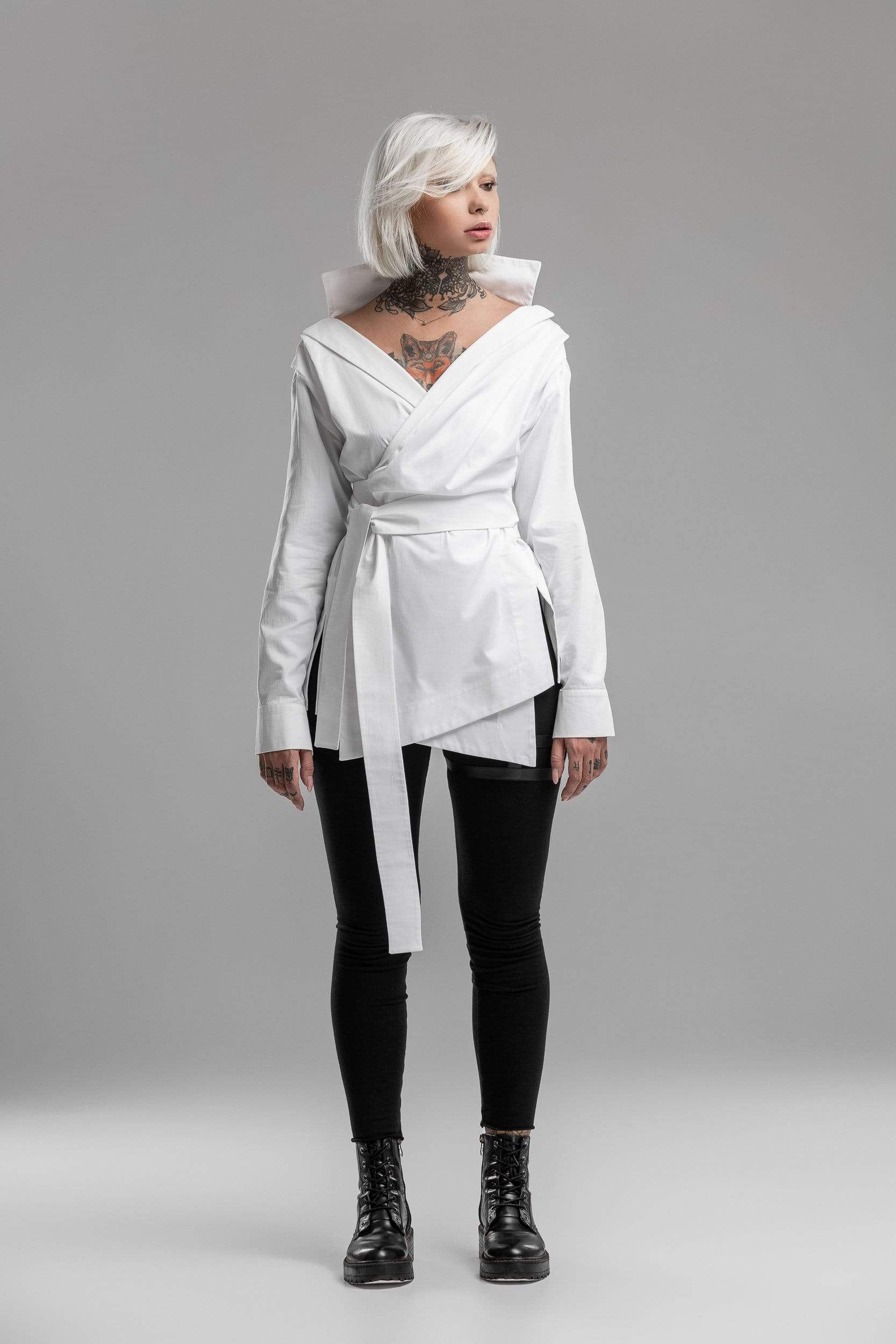 Featuring a deflated shoulder that gently opens and highlights the collarbone, this shirt proves that you don't need much to look cool and elegant.