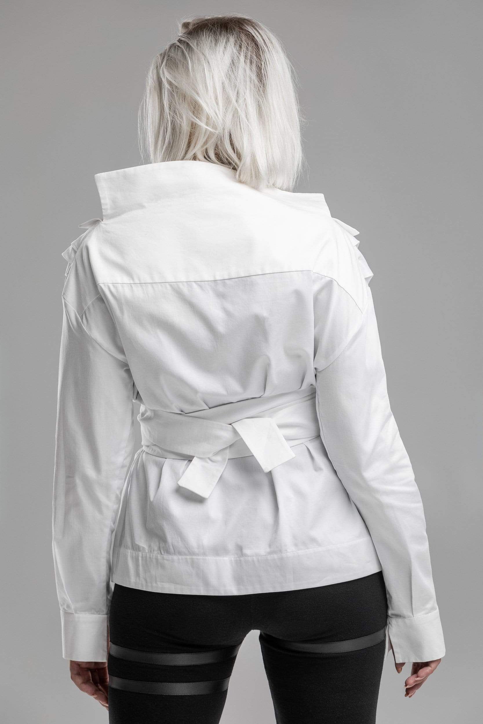 The combination of geometric lines and a fitted feminine waist ties this unique cut into a garment that will make you the center of attention anywhere and anytime.
