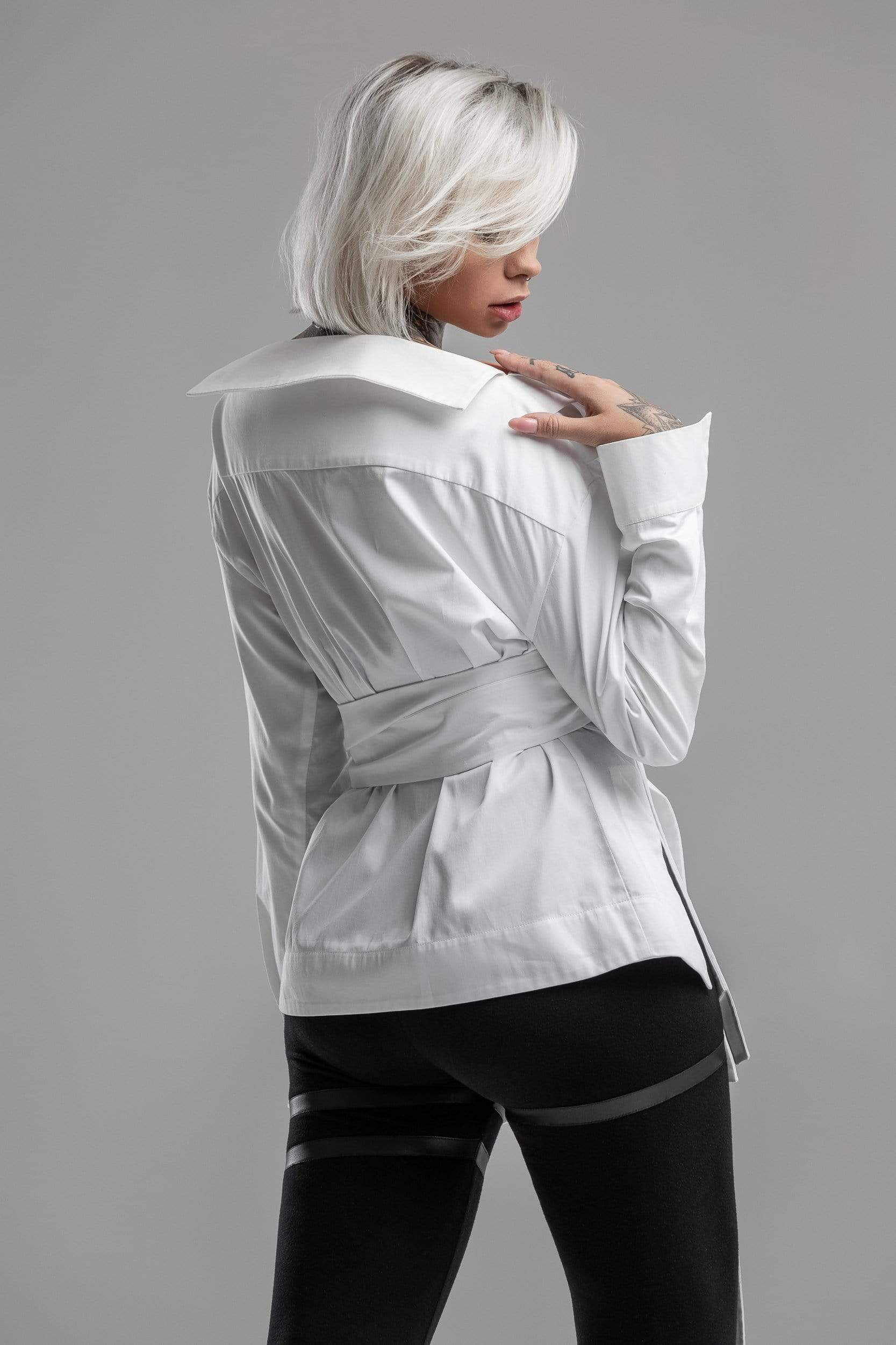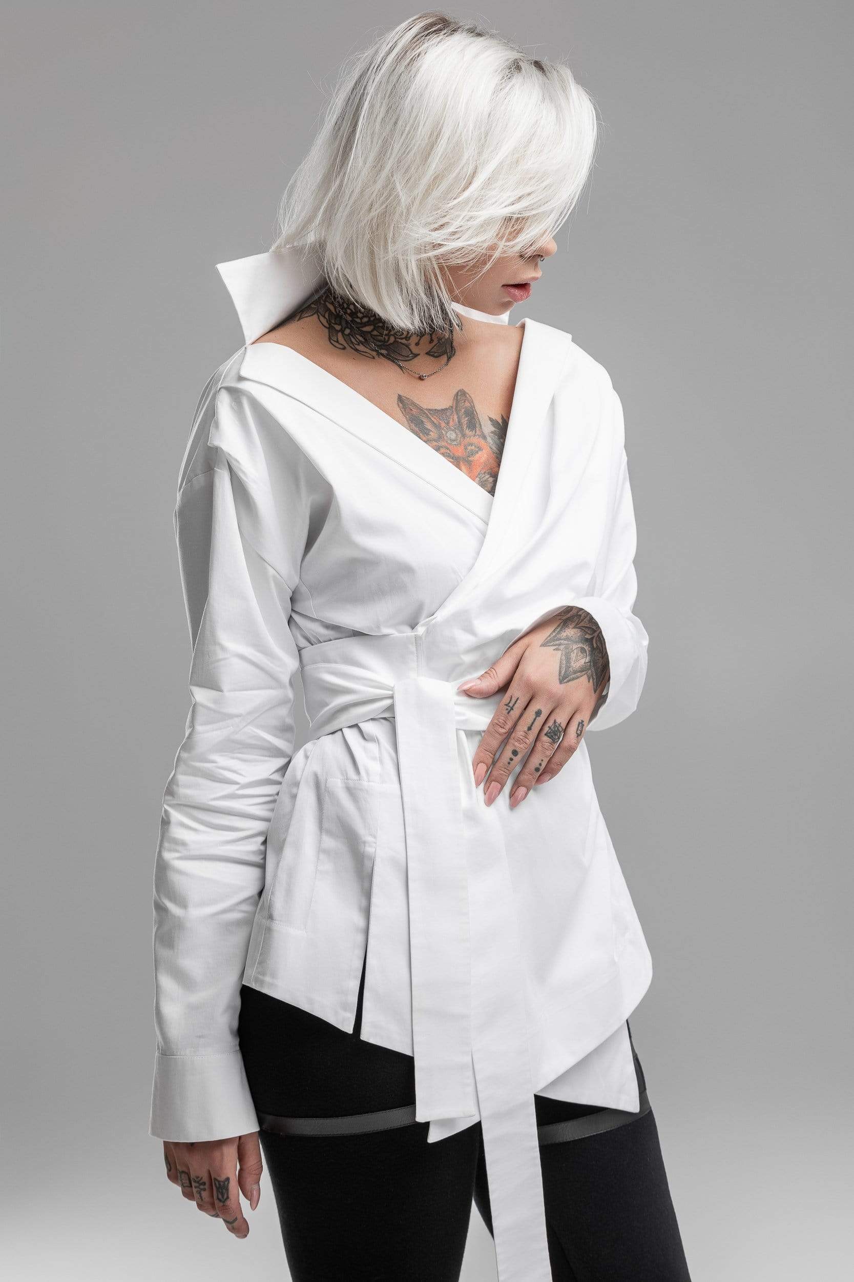 With the exceptional wide waistband that is fully settled to emphasize the hourglass shape, the 100% natural fabric shirt reveals Japanese motifs that take the forefront in this modern classic.