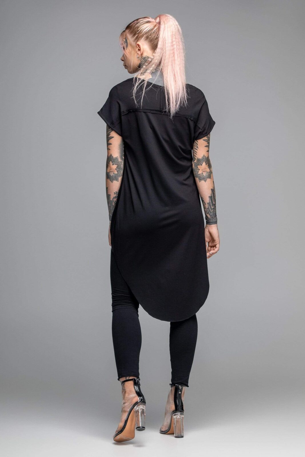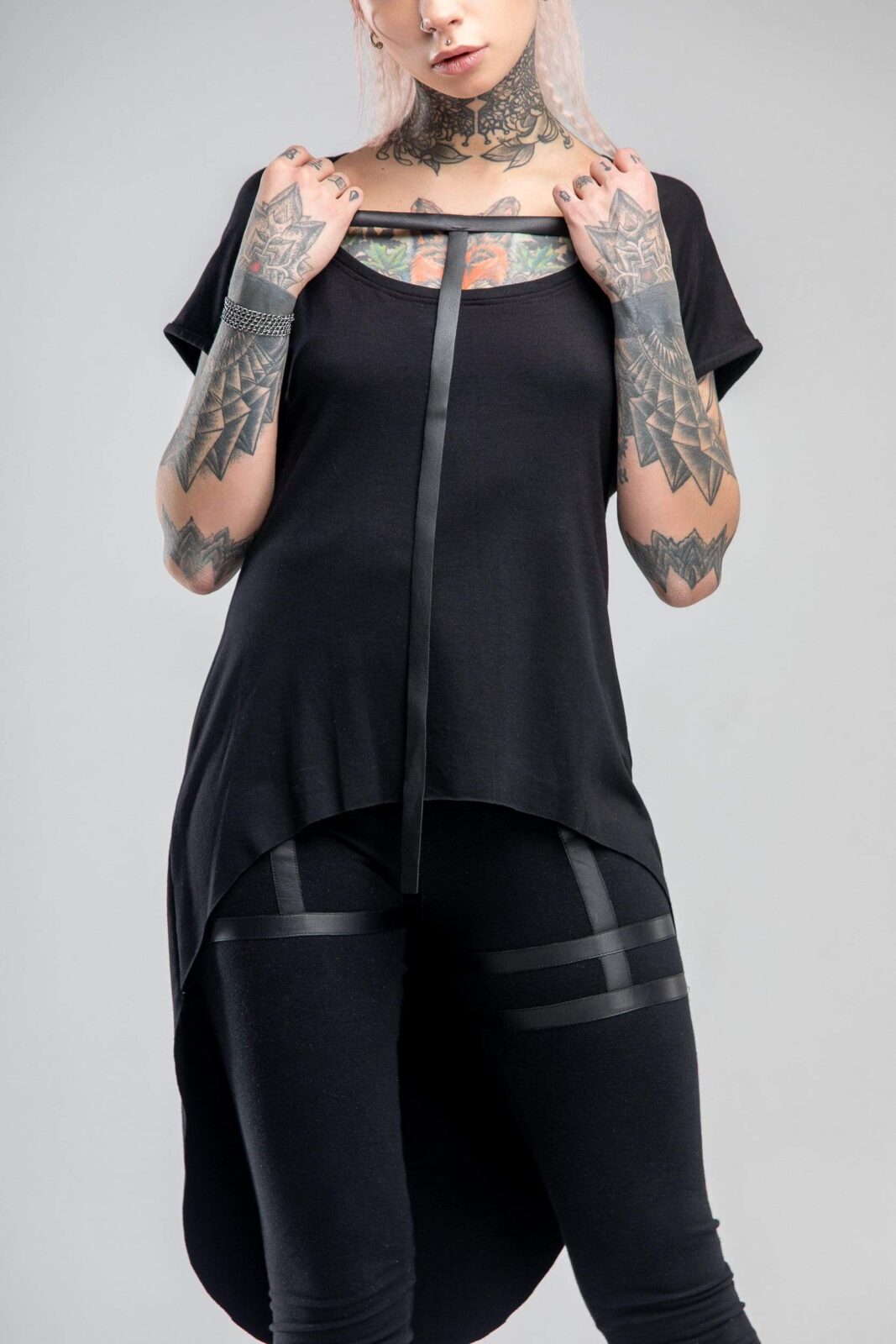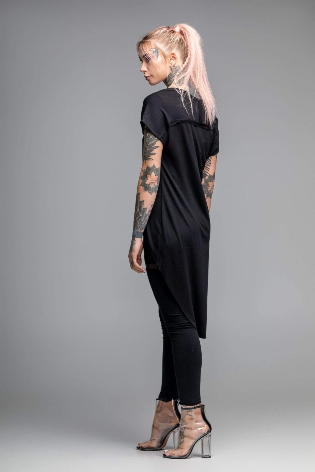Every person is unique, no question. But not everyone actually expresses their individuality. Most of the people are locked up within common trends, while others seek for something more. If you are one of those who don’t want to be average, then this is a place for you! This female tunic is just one garment from a wide choice of unusual and stylish clothes we make. It will certainly give you some attention and compliments, making you stand out! And that’s what MDNT:45 is trying to achieve. We believe in true style and uniqueness, not in general-purpose looks. So if you were just looking for a standard cotton tunics for leggings, maybe consider something more uncasual.