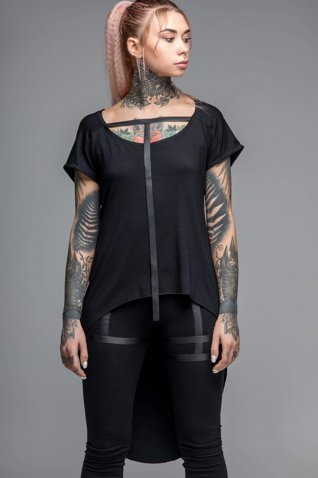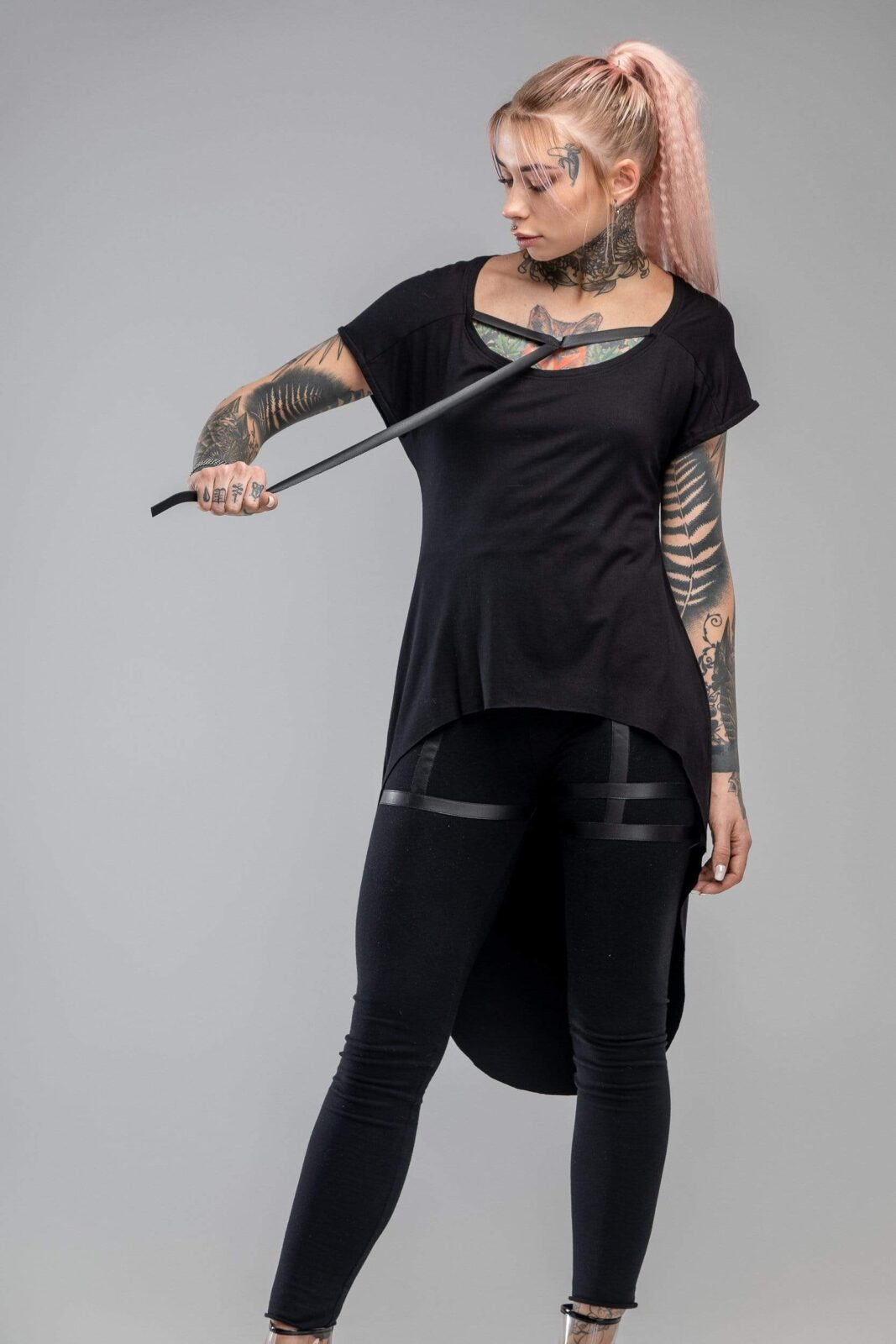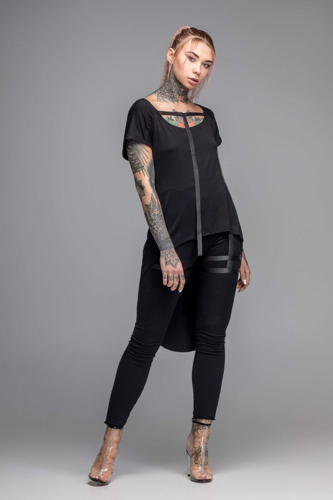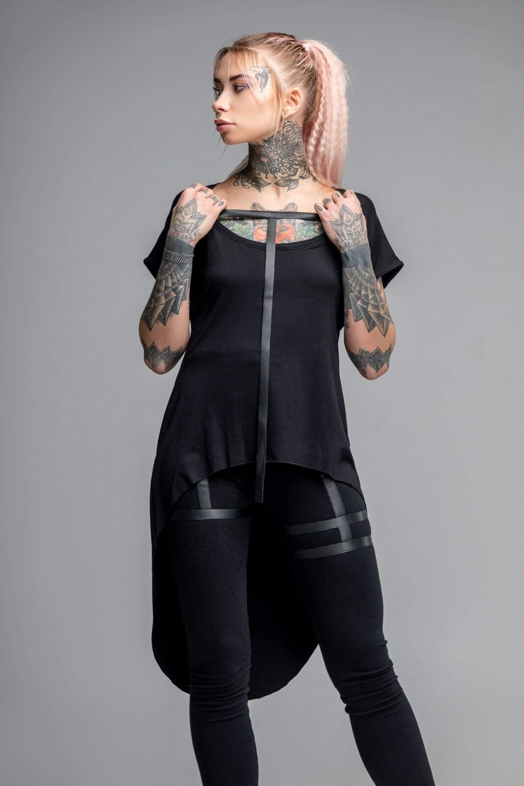 Every person is unique, no question. But not everyone actually expresses their individuality. Most of the people are locked up within common trends, while others seek for something more. If you are one of those who don’t want to be average, then this is a place for you! This female tunic is just one garment from a wide choice of unusual and stylish clothes we make. It will certainly give you some attention and compliments, making you stand out! And that’s what MDNT:45 is trying to achieve. We believe in true style and uniqueness, not in general-purpose looks. So if you were just looking for a standard cotton tunics for leggings, maybe consider something more uncasual.