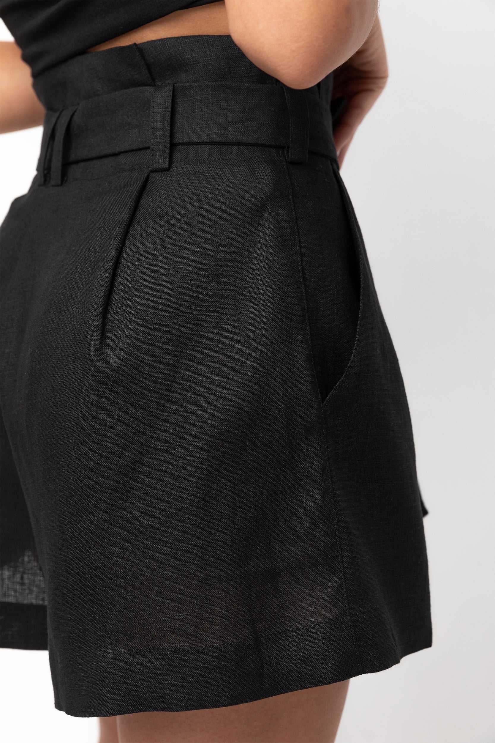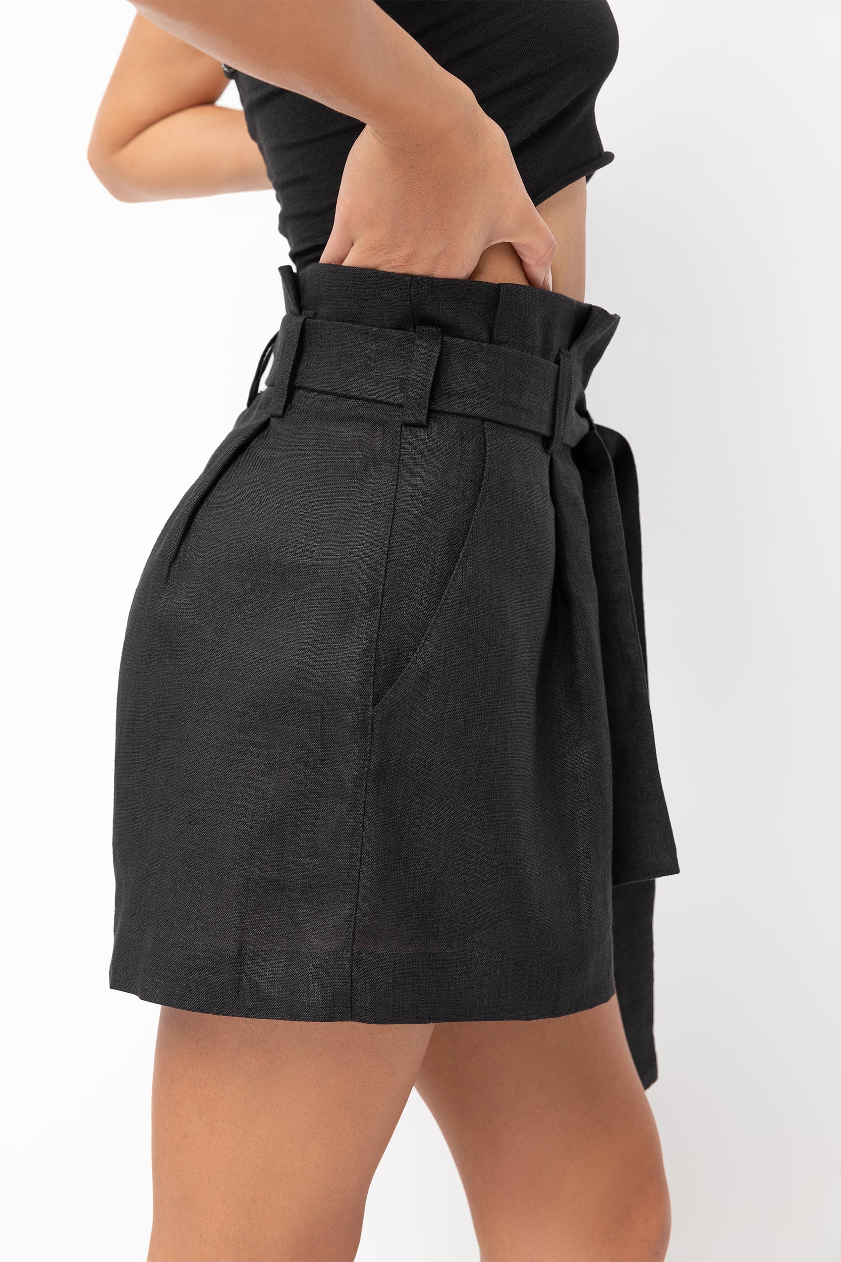 Prepare yourself to unlock the door to pleasant sensations when your skin meets Drib shorts. A reliable choice for those always on the go, these loose and comfy shorts are made from linen, making them an irresistible option for hot days and steamy nights. Outspoken and slightly naughty, Drib features a high-waisted, thigh-length wide form that captivates with its thrilling allure. The shorts are gathered at the top, creating a skirt-like appearance that enhances their joyful spirit while flattering your silhouette. With discreet pockets and a separate waist belt that can be beautifully tied to complement the look, these shorts are both stylish and functional.