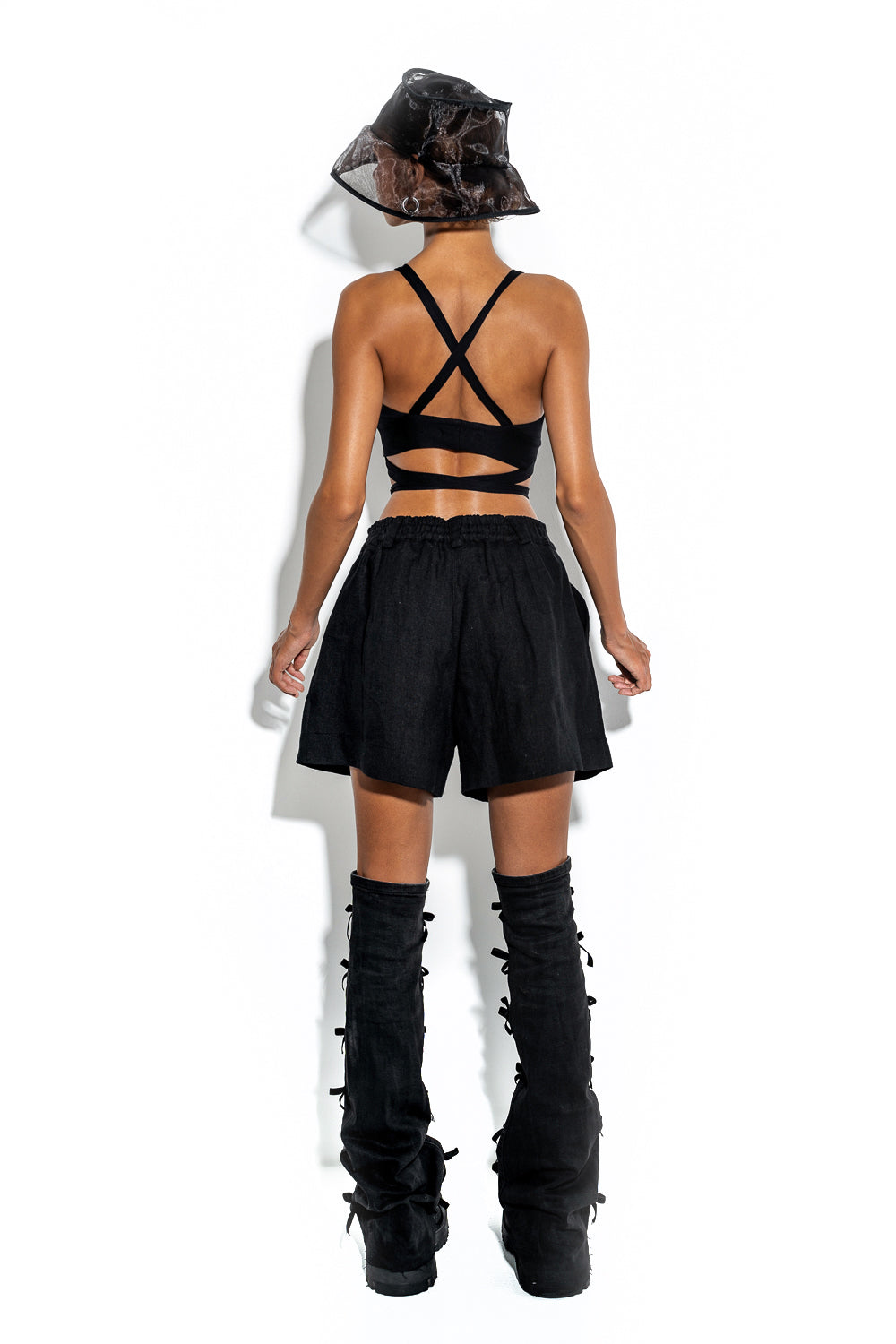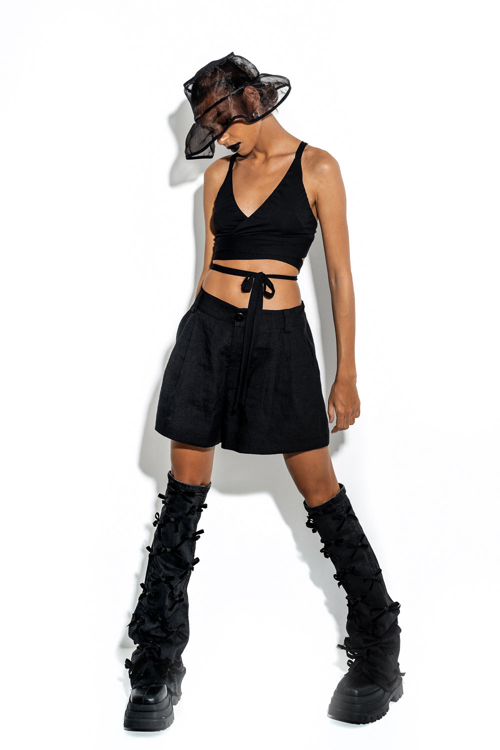 The delicate wrap top in soft viscose fabric features long ties and a stylish criss-cross back detail.